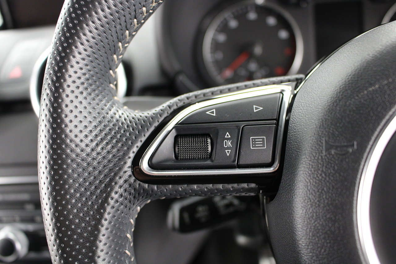 The interior comes trimmed in S-line partial leather with sports seats and comes with a large display pop up display screen incorporated into that is the satellite navigation, DAB Radio, Bluetooth pairing ability, drive select driving modes, air conditioning, electric door mirrors with heated function, steering wheel mounted controls, cruise control, rear parking sensors and ISOFIX child seat bases. This particular Audi being an S Line, gives it a few sportier touches than other models of the A1 range and with all Audis you still get that excellent refinement and build quality through the brand.