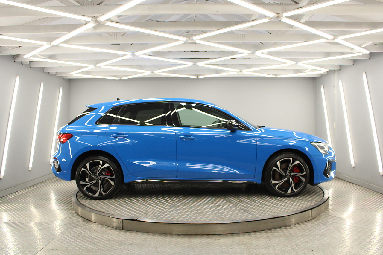 This is our gorgeous 2022 Audi A3 S-Line Competition Sportback, This A3 really does drive like an Audi should, even for a car of this size, the unmistakable build quality is there to see. This particular model is very sought after with it being the economical plug in hybrid1.4 TFSIe, producing a nippy 242 BHP and achieves a great MPG average, you can cruise around town using the electric motor.