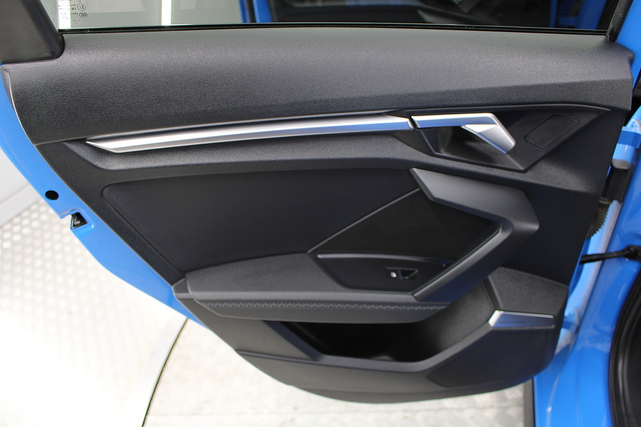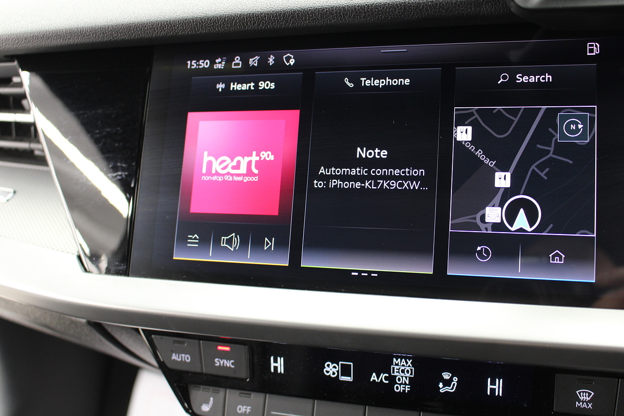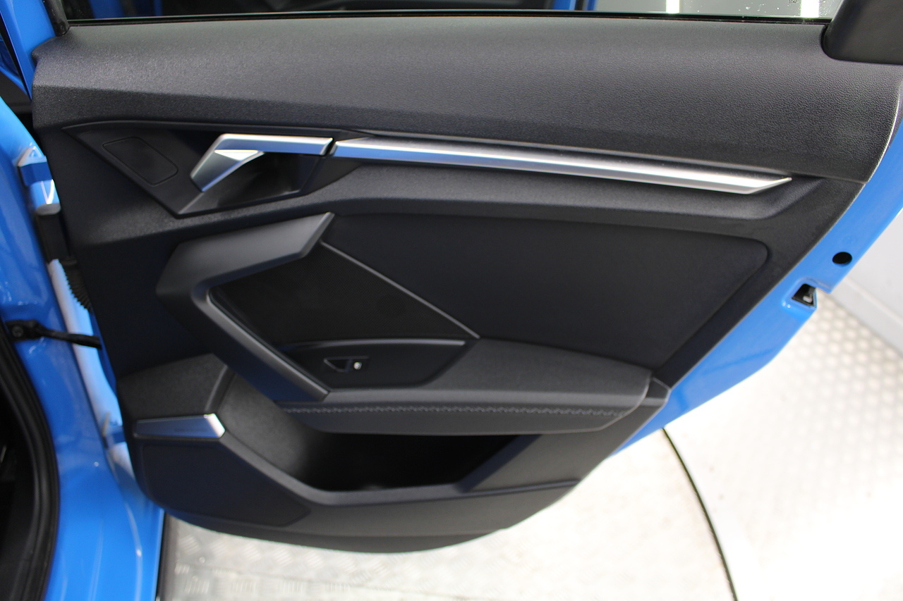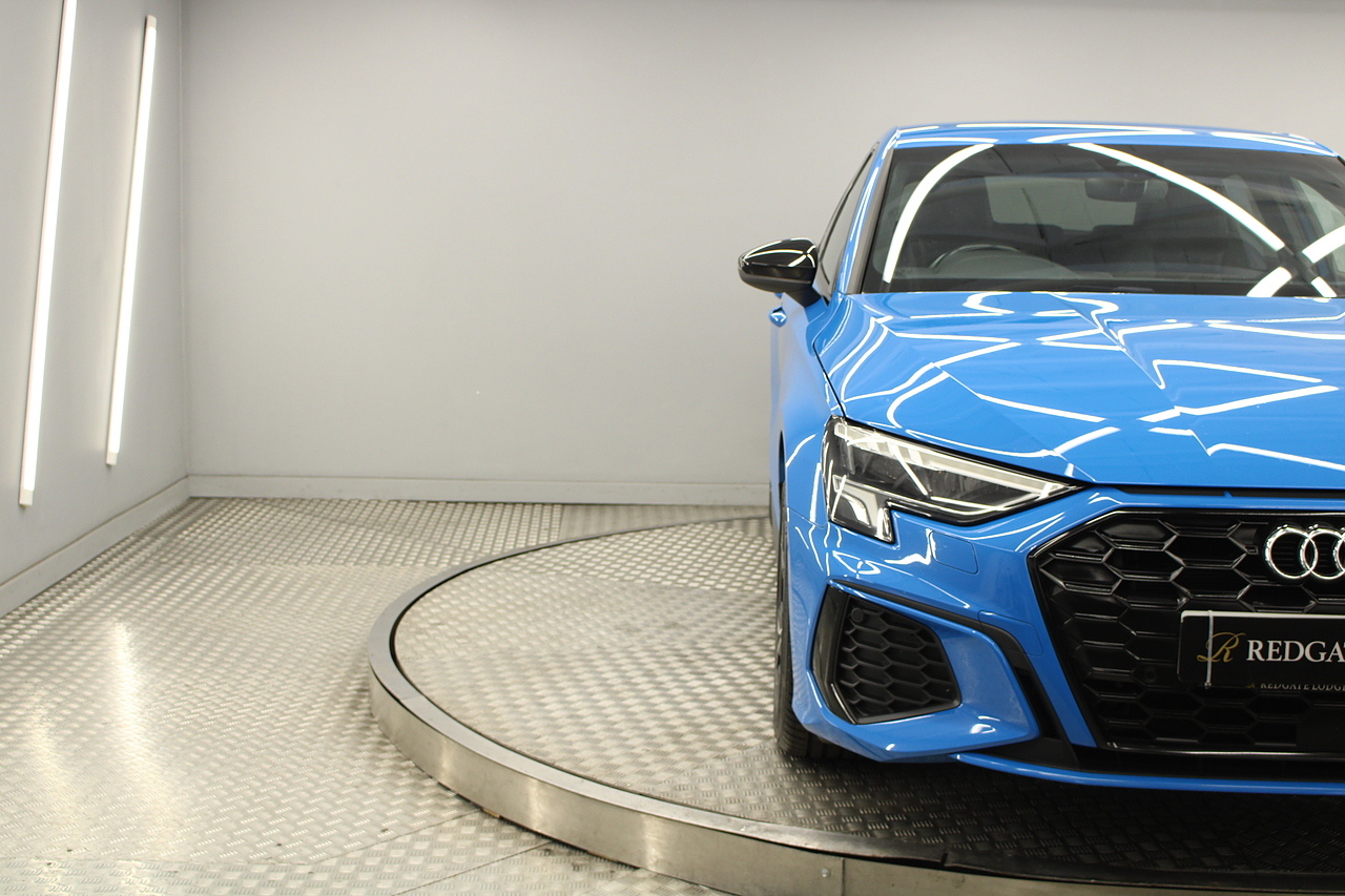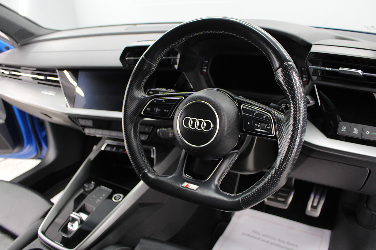 The specifications of this A3 are, black leather interior trim, pop up media screen, satellite navigation, DAB radio, apple car play, android auto, parking sensors with rear camera, electric door mirrors, steering wheel mounted controls, Bluetooth pairing ability, sports steering wheel, cruise control, front sports seats and ISOFIX child seat bases.