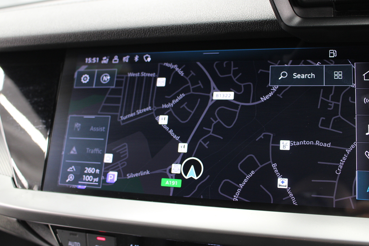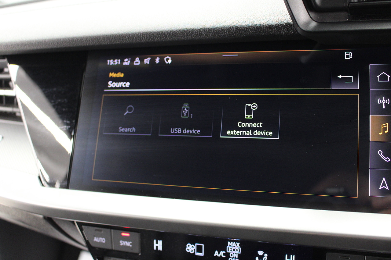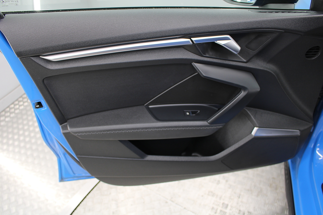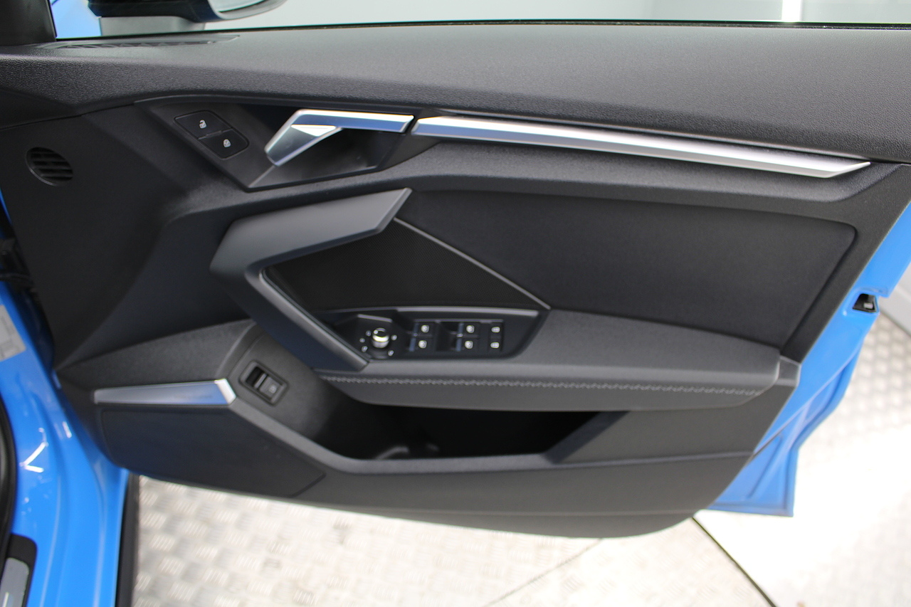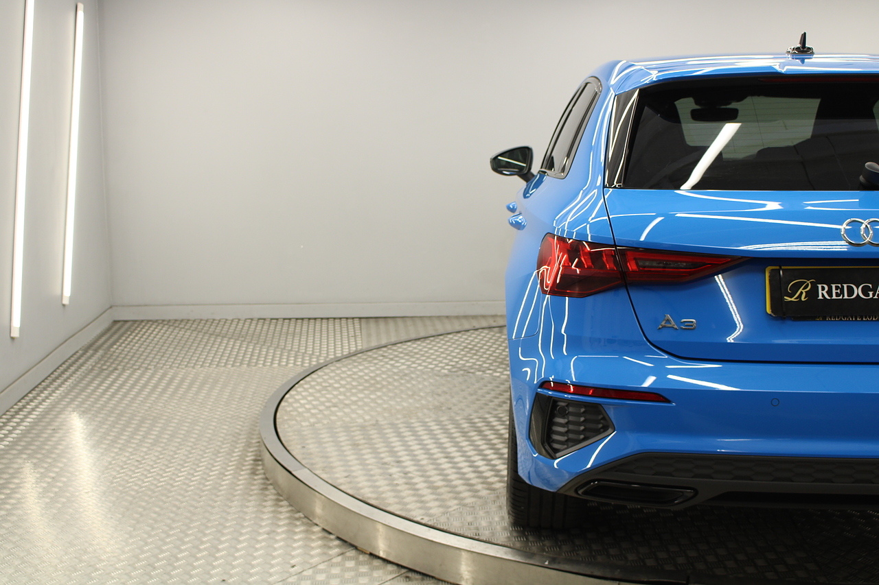 The specifications of this A3 are, black leather interior trim, pop up media screen, satellite navigation, DAB radio, apple car play, android auto, parking sensors with rear camera, electric door mirrors, steering wheel mounted controls, Bluetooth pairing ability, sports steering wheel, cruise control, front sports seats and ISOFIX child seat bases.