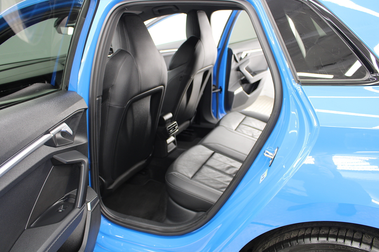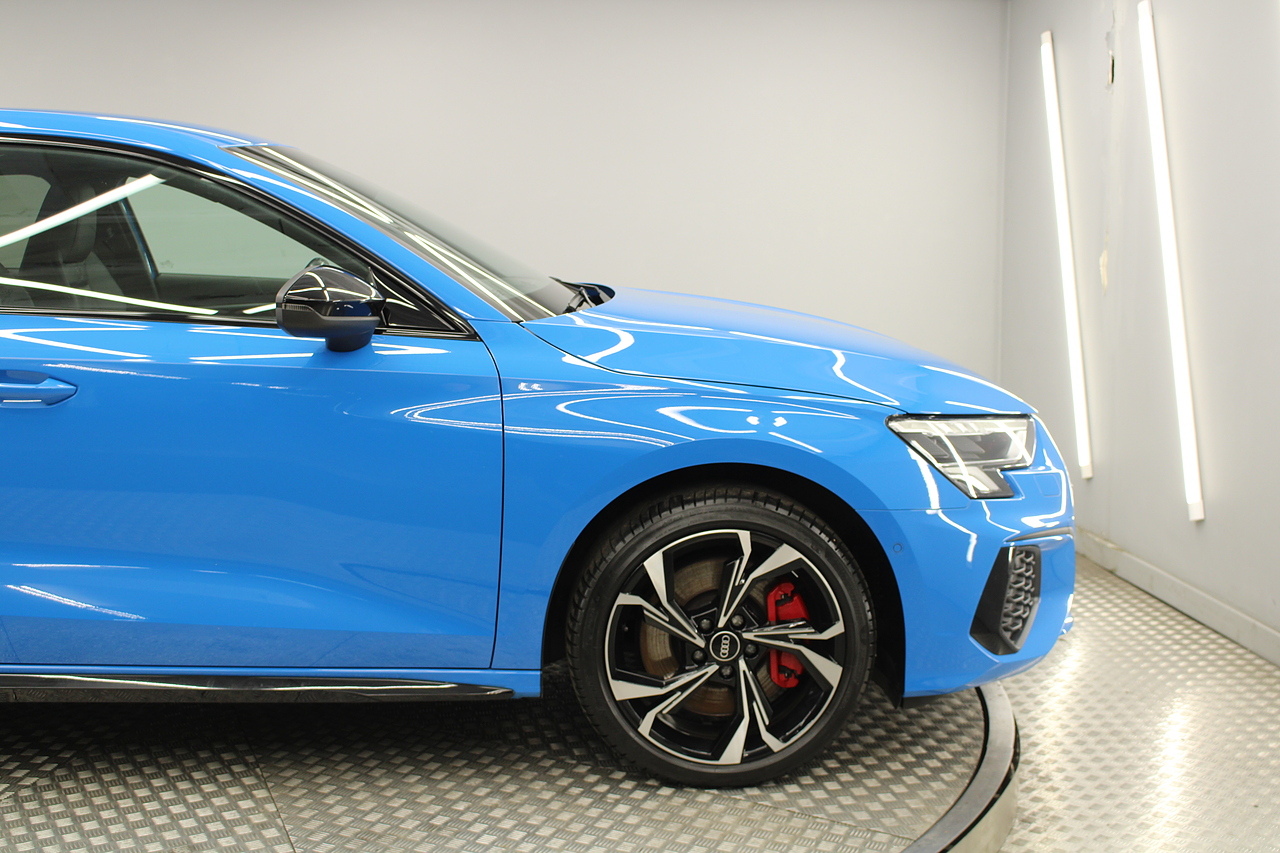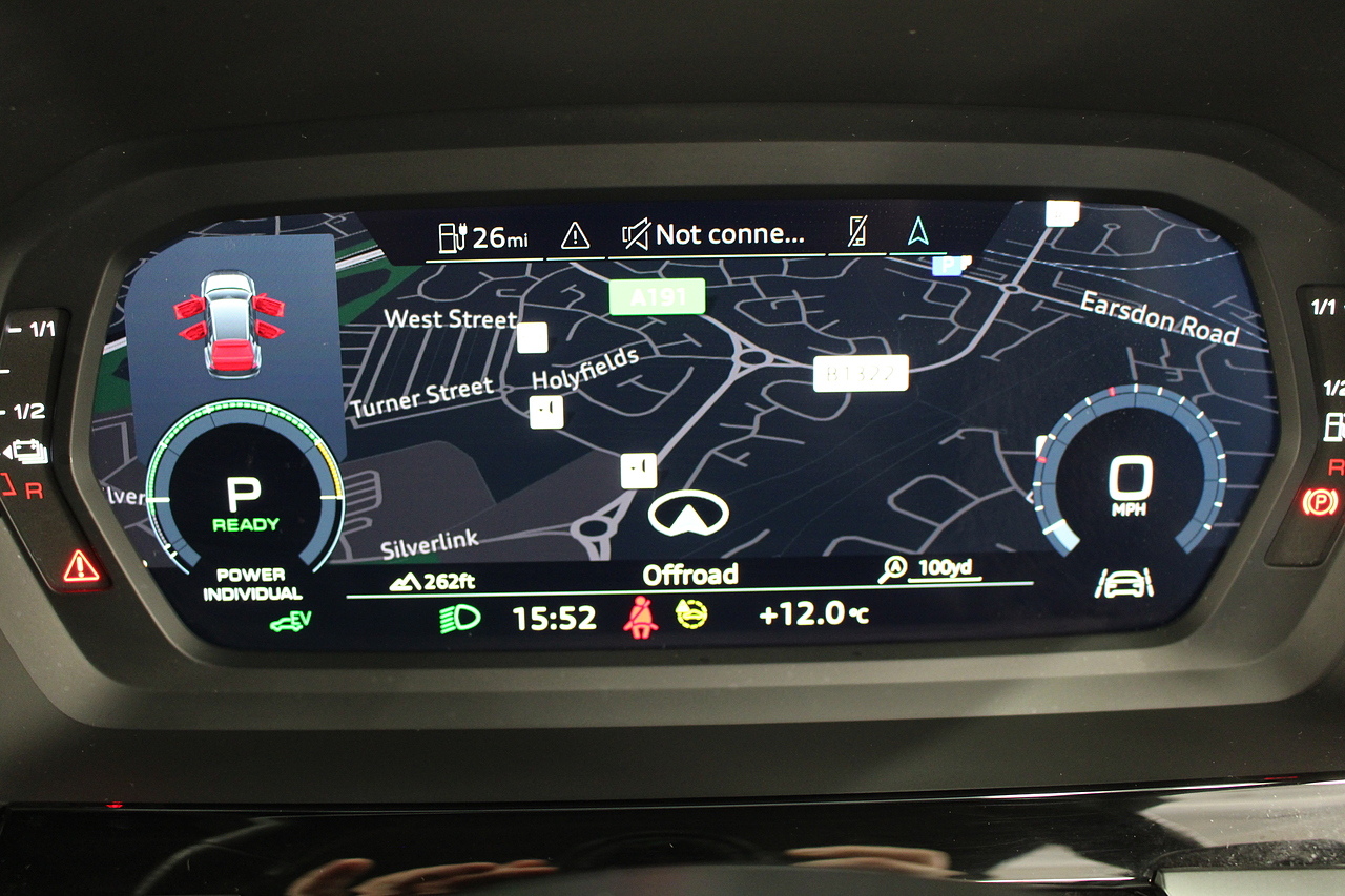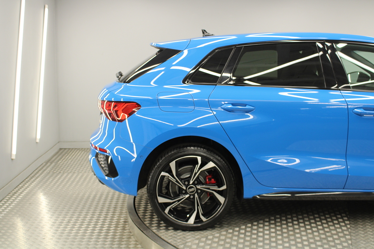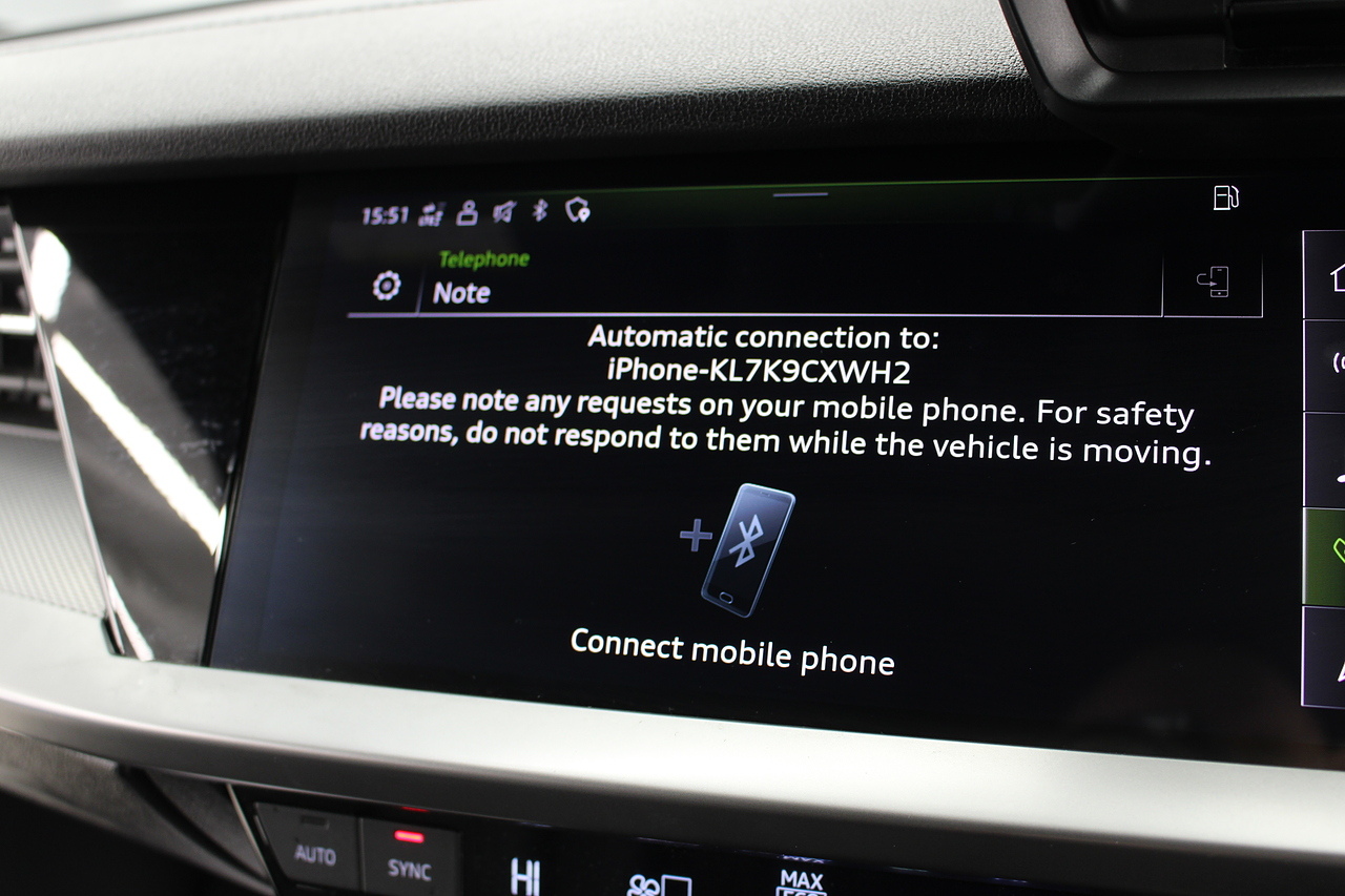 The specifications of this A3 are, black leather interior trim, pop up media screen, satellite navigation, DAB radio, apple car play, android auto, parking sensors with rear camera, electric door mirrors, steering wheel mounted controls, Bluetooth pairing ability, sports steering wheel, cruise control, front sports seats and ISOFIX child seat bases.