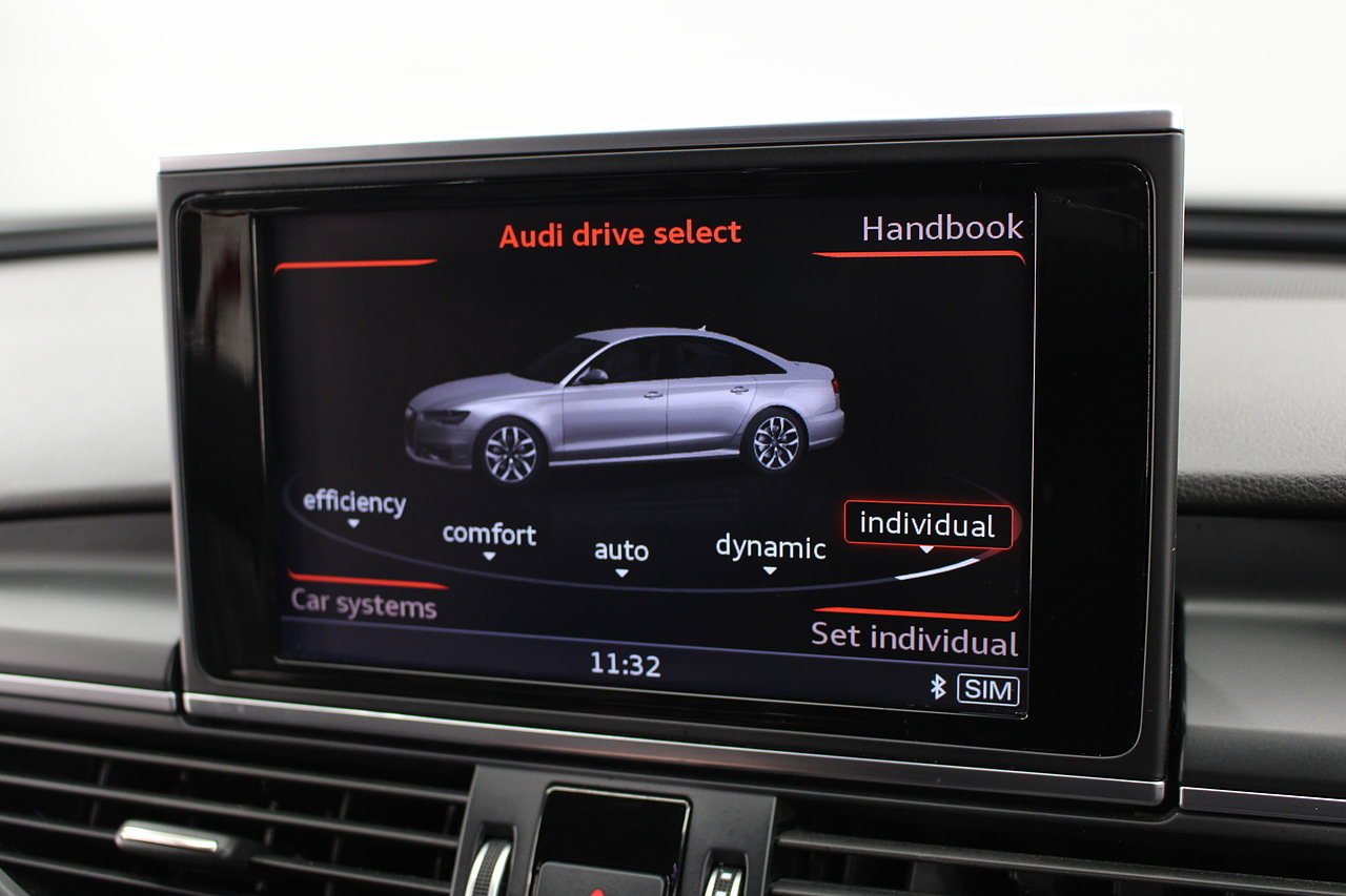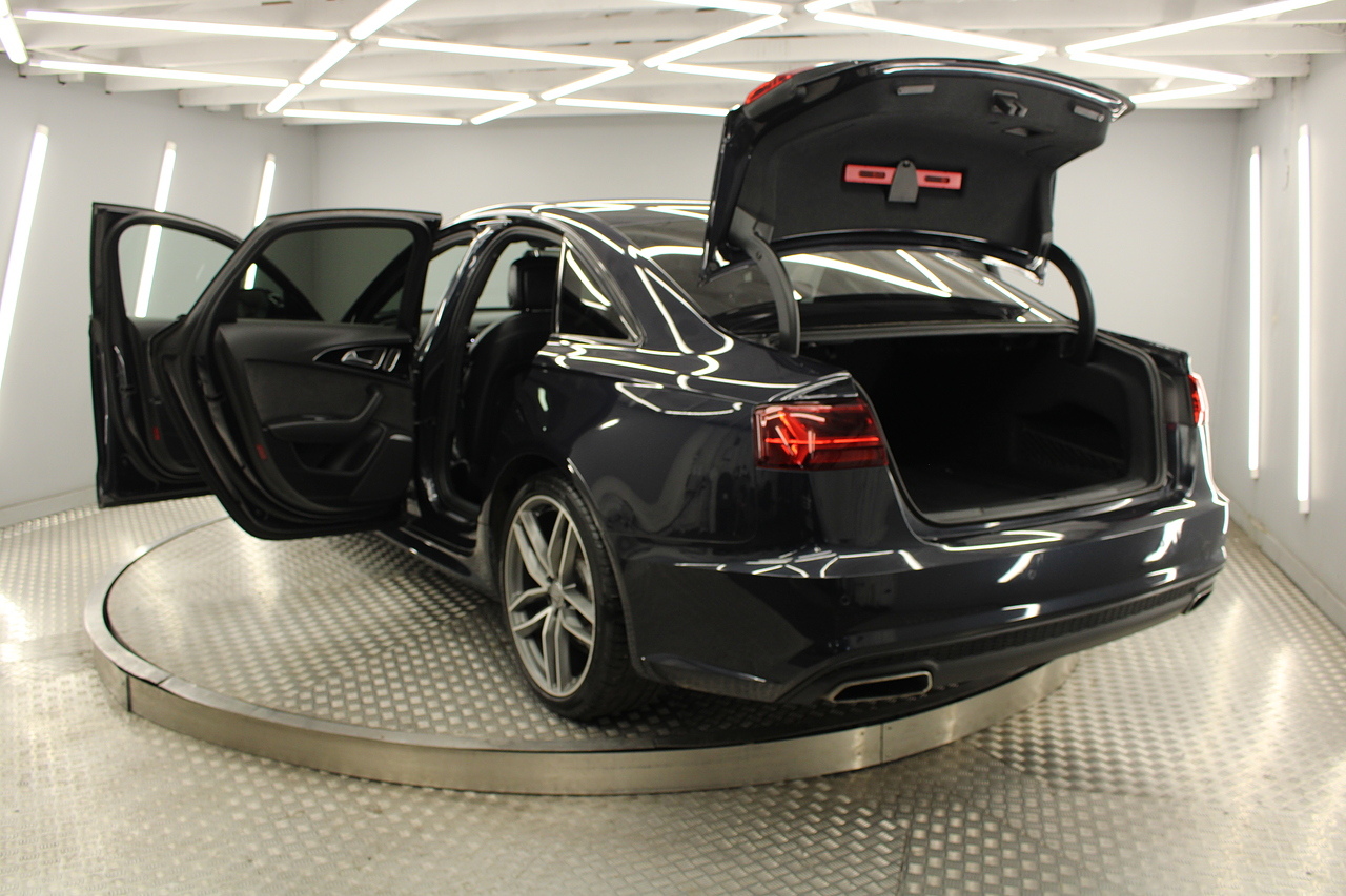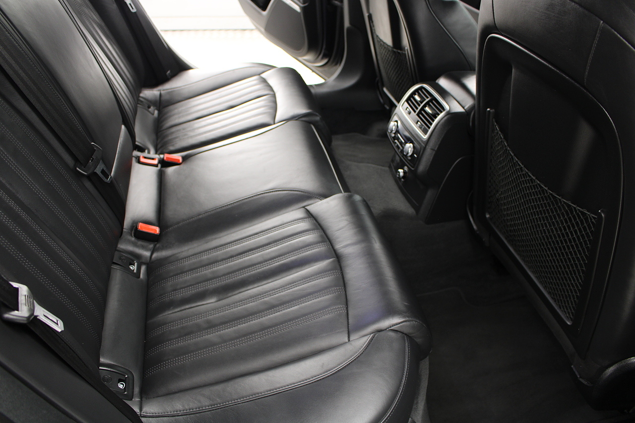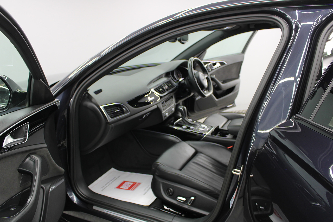 This A6 does come with, black leather interior, 3 zone climate control, cruise control, DAB radio with MP3 functionality, Bluetooth connectivity, steering wheel with mounted controls, premium BOSE sound system, headlight and rain sensors, rear and forward parking aid, 12v power adapter and ISOFIX anchorage points. With sharp styling, a comfortable cabin and one of the best handling in its class, the Audi A6 is a superb all round luxury car. It is considerably bigger than the A4, but still very easy to drive and park, and still offers huge interior space and a large boot too.