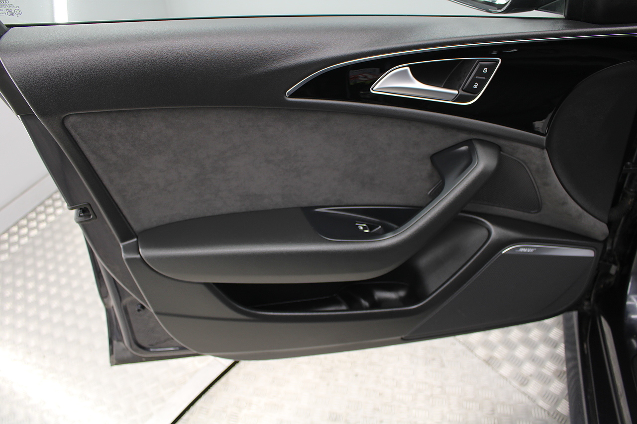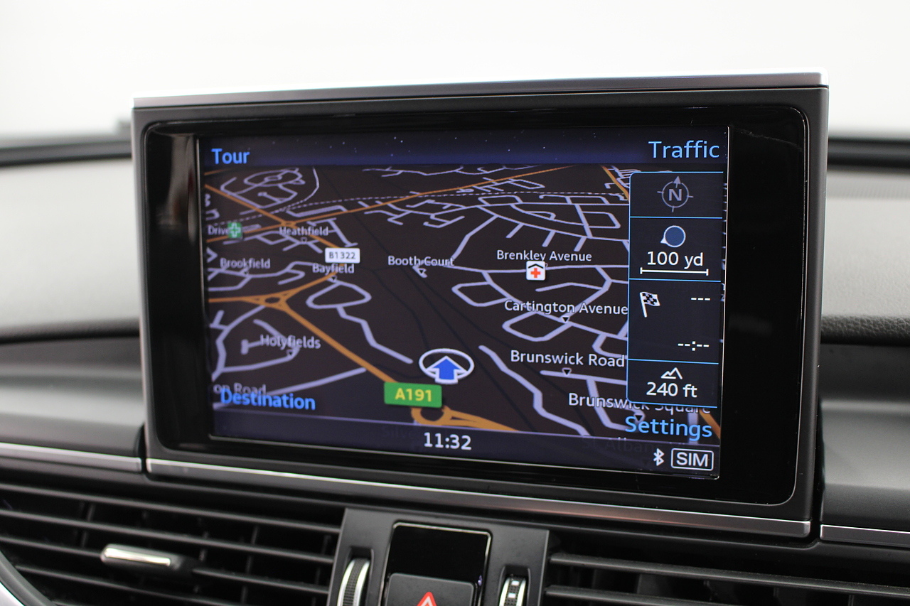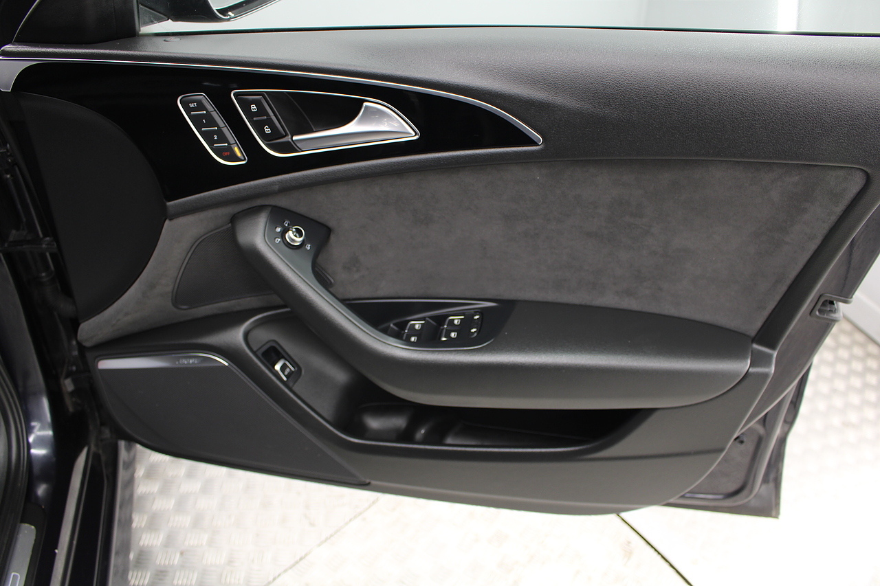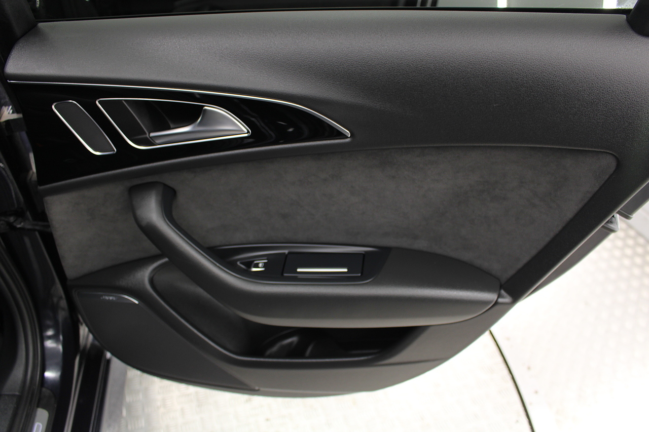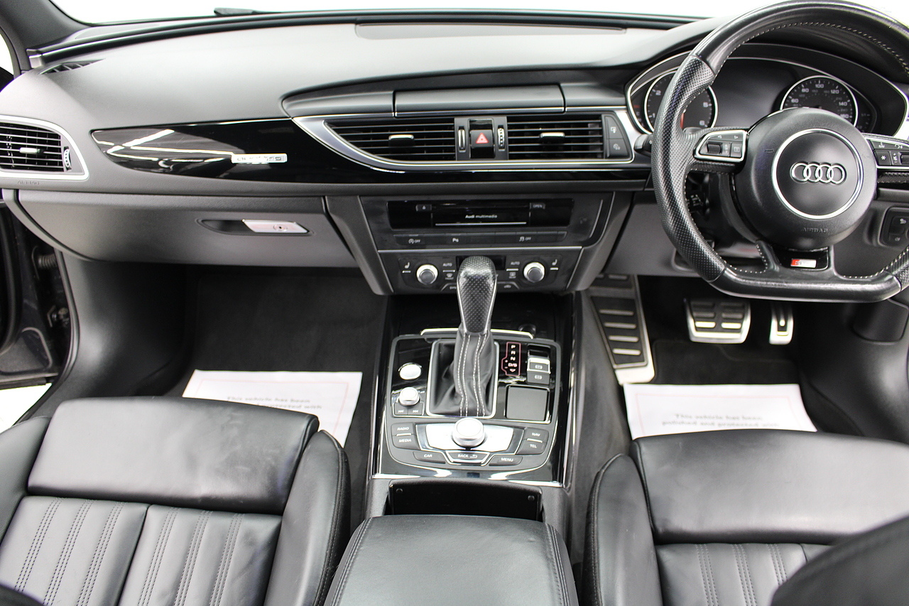 This A6 does come with, black leather interior, 3 zone climate control, cruise control, DAB radio with MP3 functionality, Bluetooth connectivity, steering wheel with mounted controls, premium BOSE sound system, headlight and rain sensors, rear and forward parking aid, 12v power adapter and ISOFIX anchorage points. With sharp styling, a comfortable cabin and one of the best handling in its class, the Audi A6 is a superb all round luxury car. It is considerably bigger than the A4, but still very easy to drive and park, and still offers huge interior space and a large boot too.