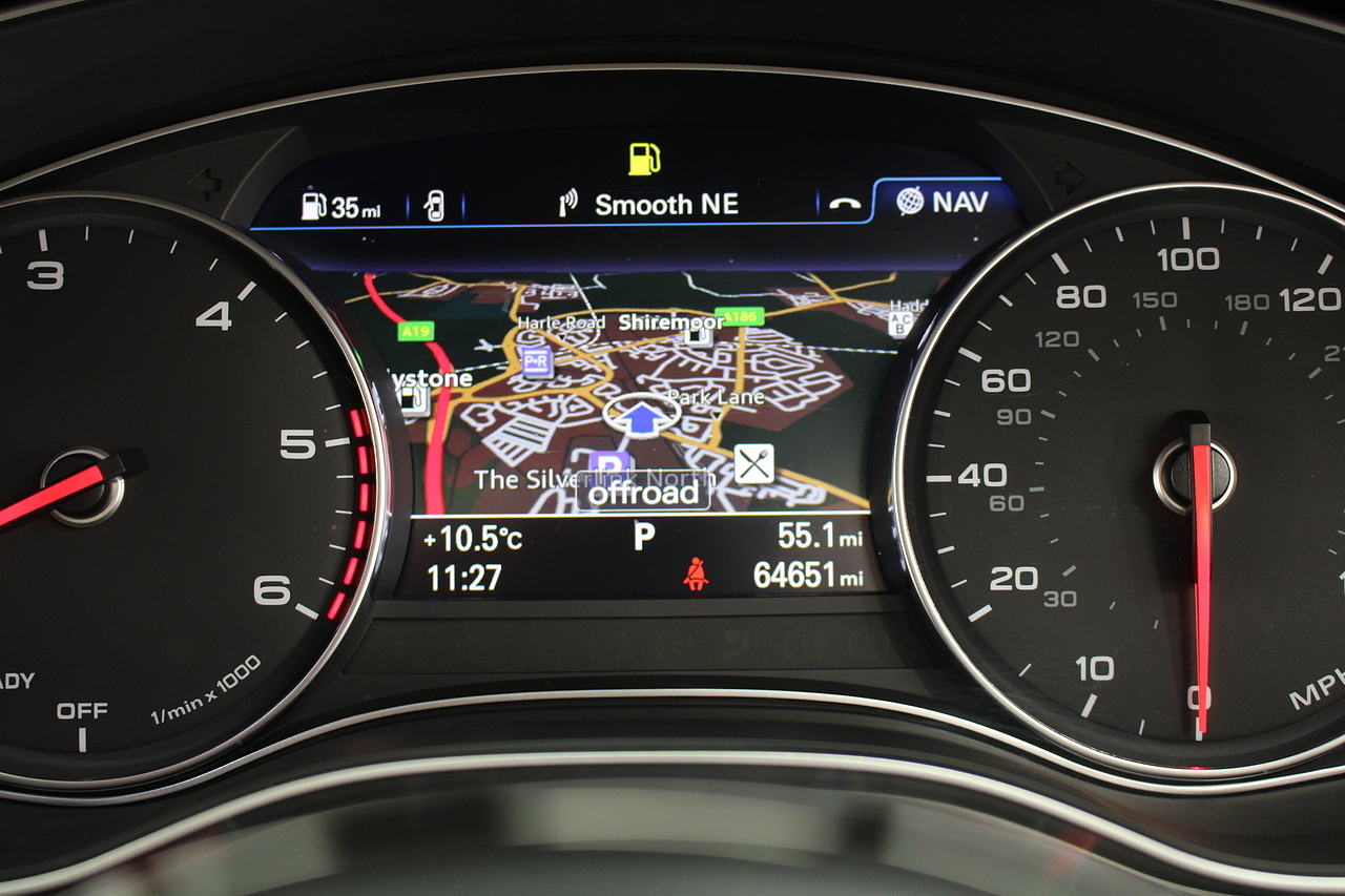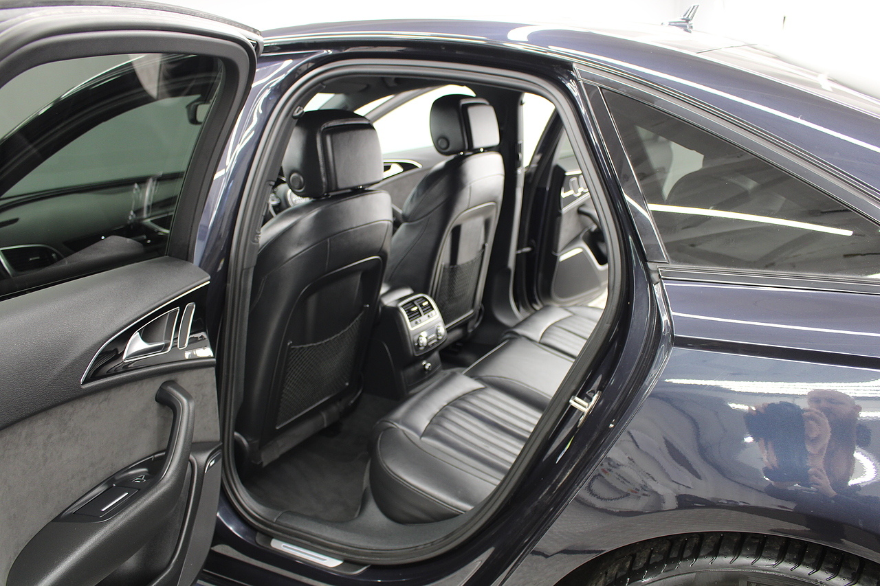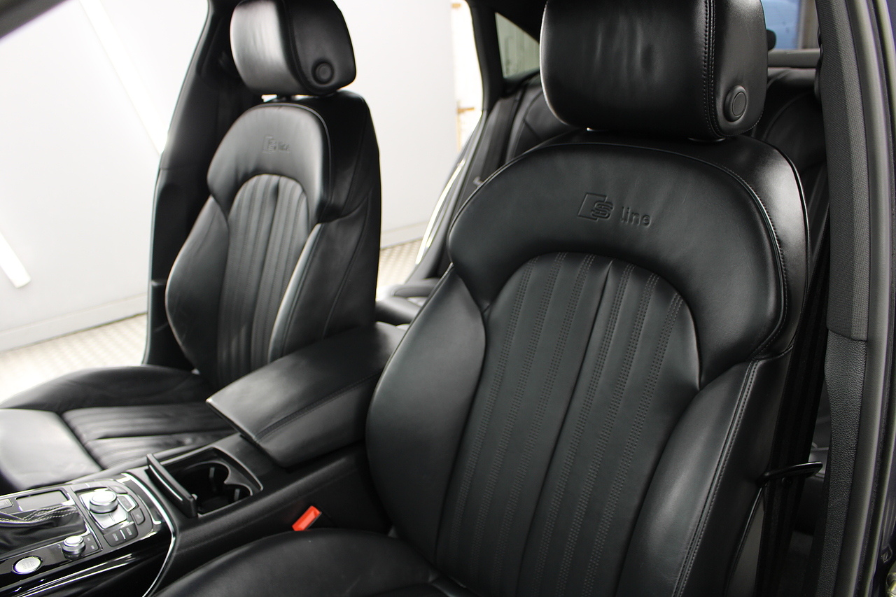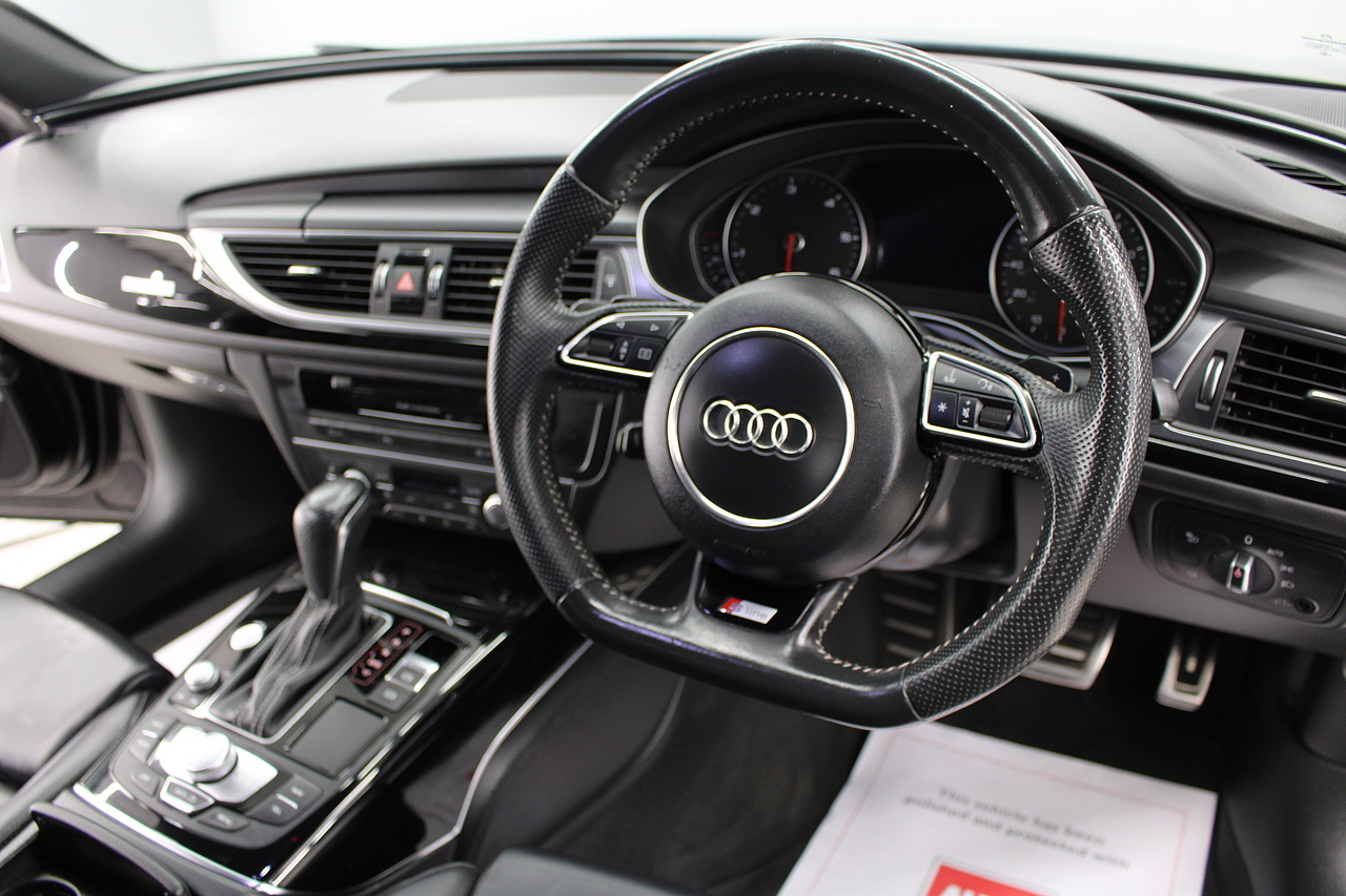 This A6 does come with, black leather interior, 3 zone climate control, cruise control, DAB radio with MP3 functionality, Bluetooth connectivity, steering wheel with mounted controls, premium BOSE sound system, headlight and rain sensors, rear and forward parking aid, 12v power adapter and ISOFIX anchorage points. With sharp styling, a comfortable cabin and one of the best handling in its class, the Audi A6 is a superb all round luxury car. It is considerably bigger than the A4, but still very easy to drive and park, and still offers huge interior space and a large boot too.