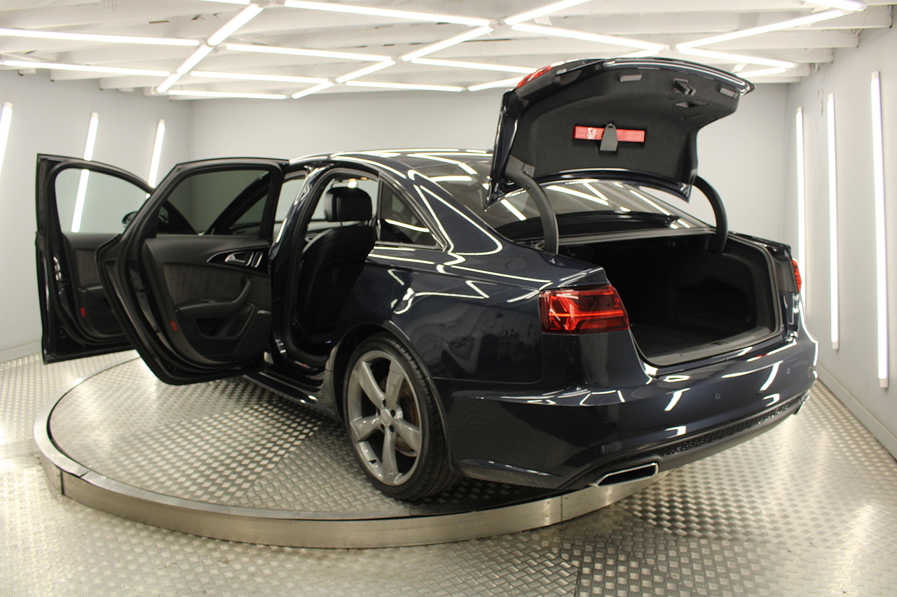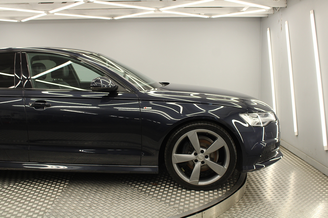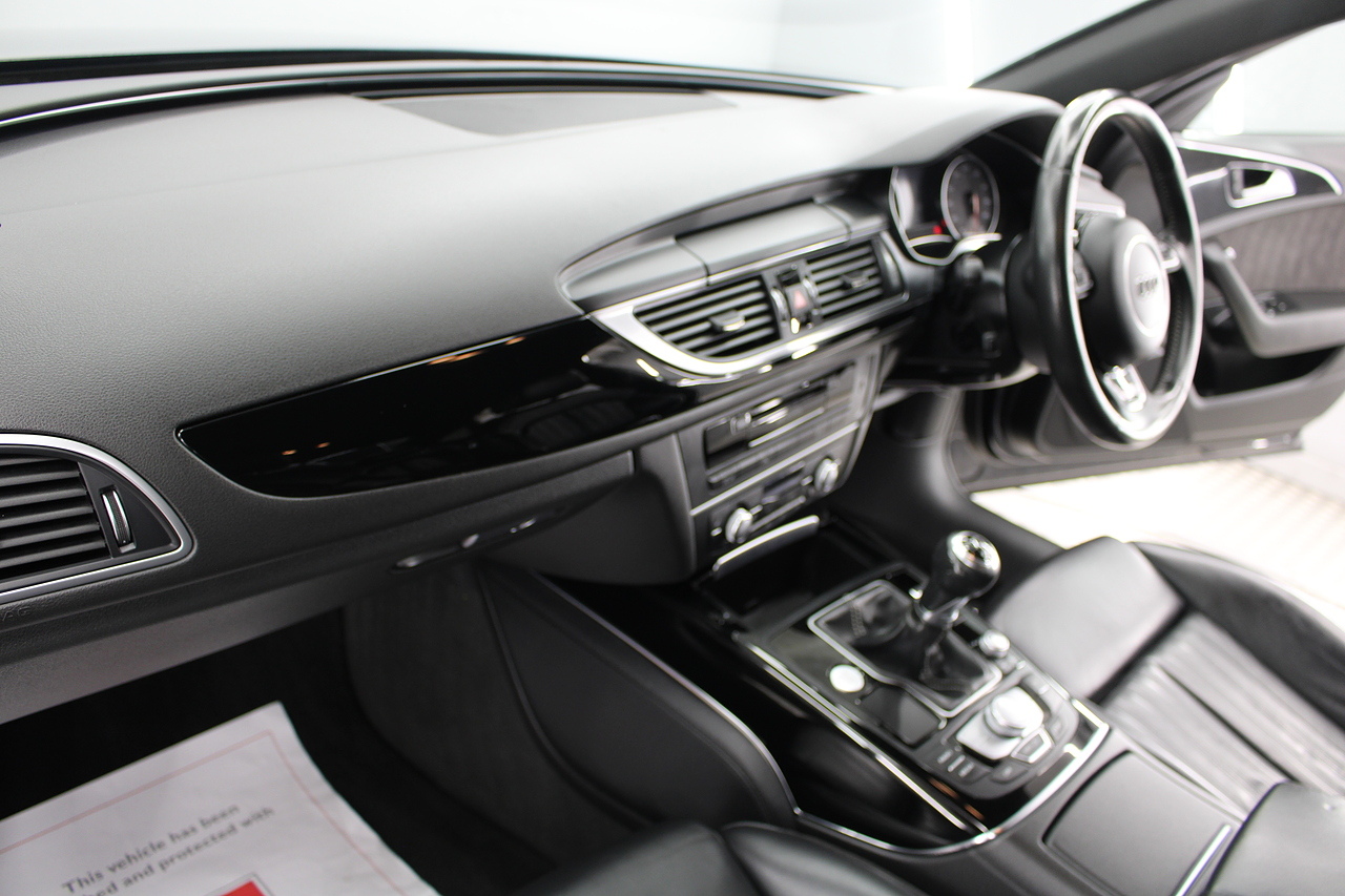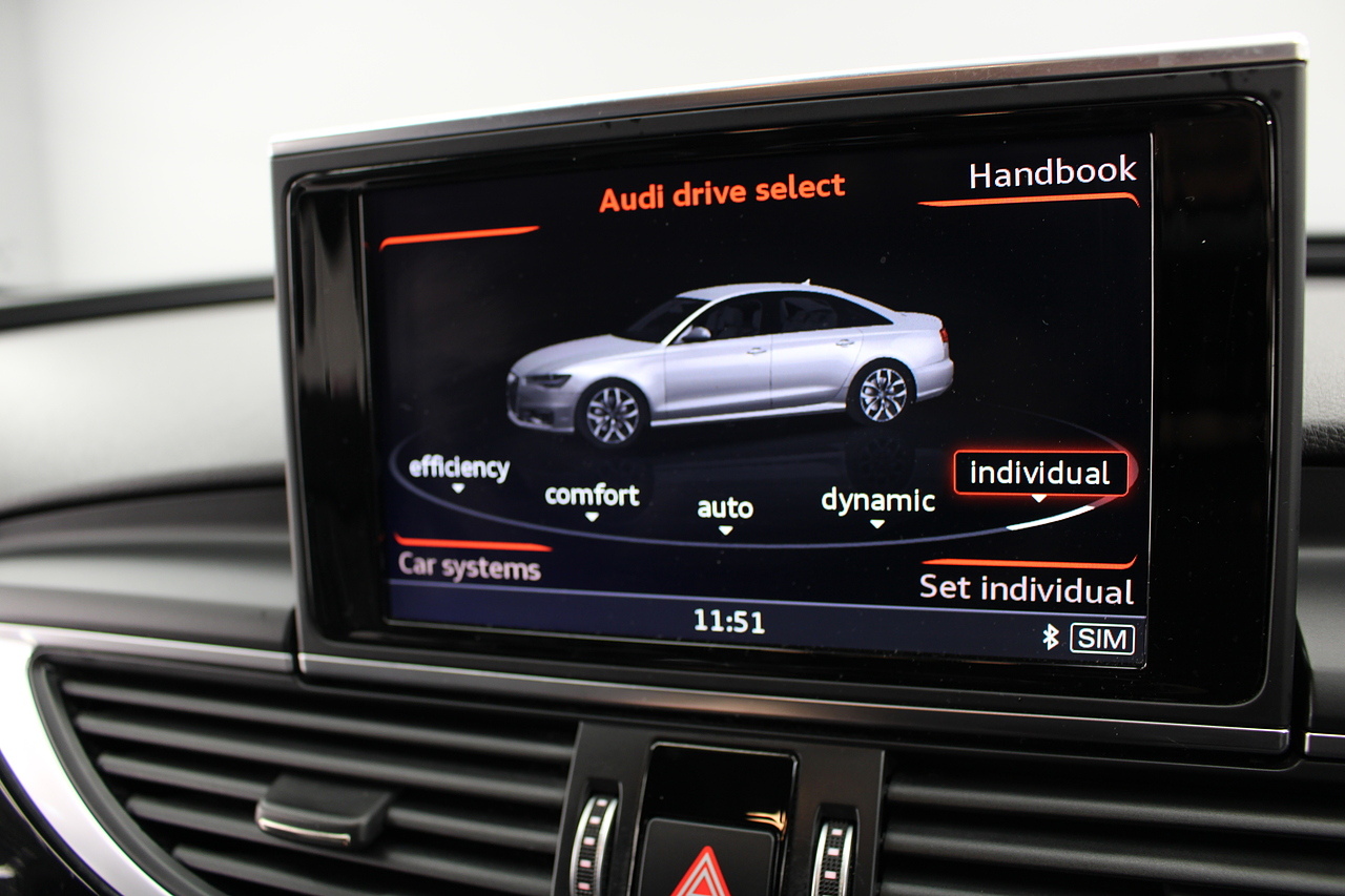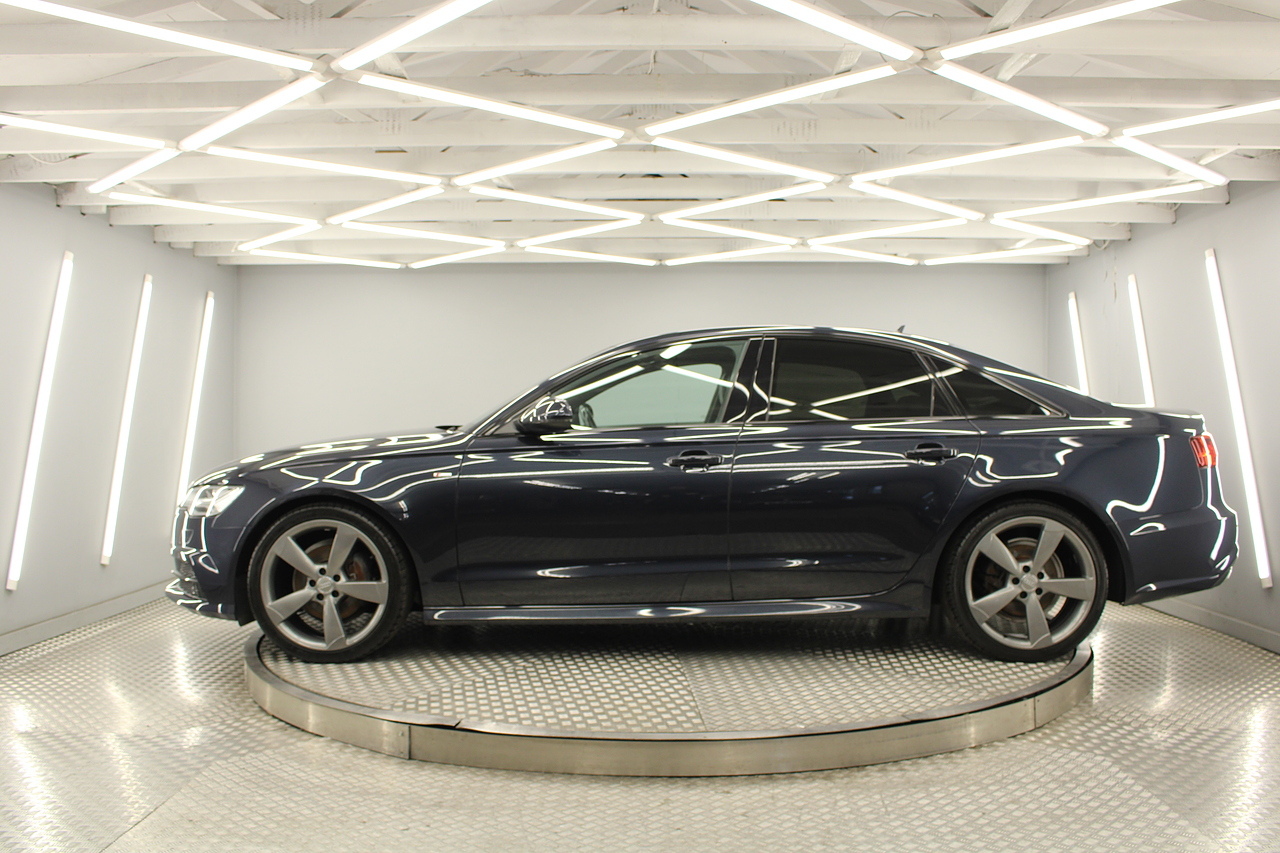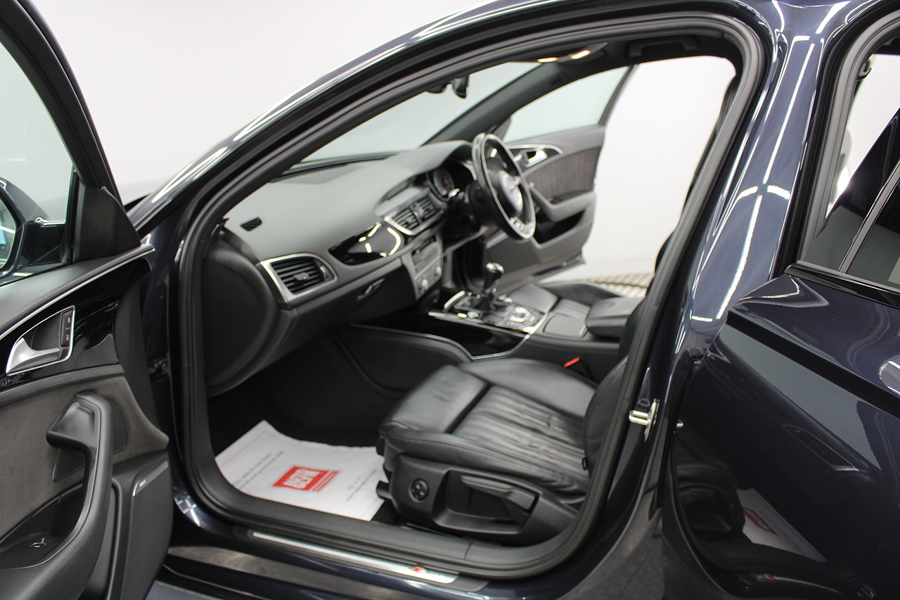This A6 does come with, black leather interior, 3 zone climate control, cruise control, DAB radio with MP3 functionality, Bluetooth connectivity, steering wheel with mounted controls, premium BOSE sound system, headlight and rain sensors, rear and forward parking aid, 12v power adapter and ISOFIX anchorage points. With sharp styling, a comfortable cabin and one of the best handling in its class, the Audi A6 is a superb all round luxury car. It is considerably bigger than the A4, but still very easy to drive and park, and still offers huge interior space and a large boot too.