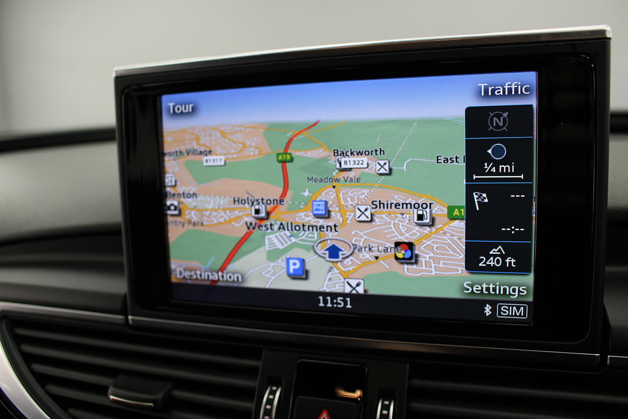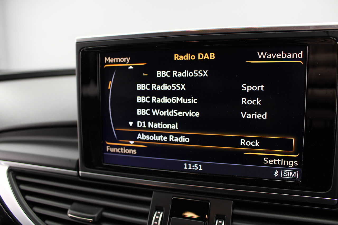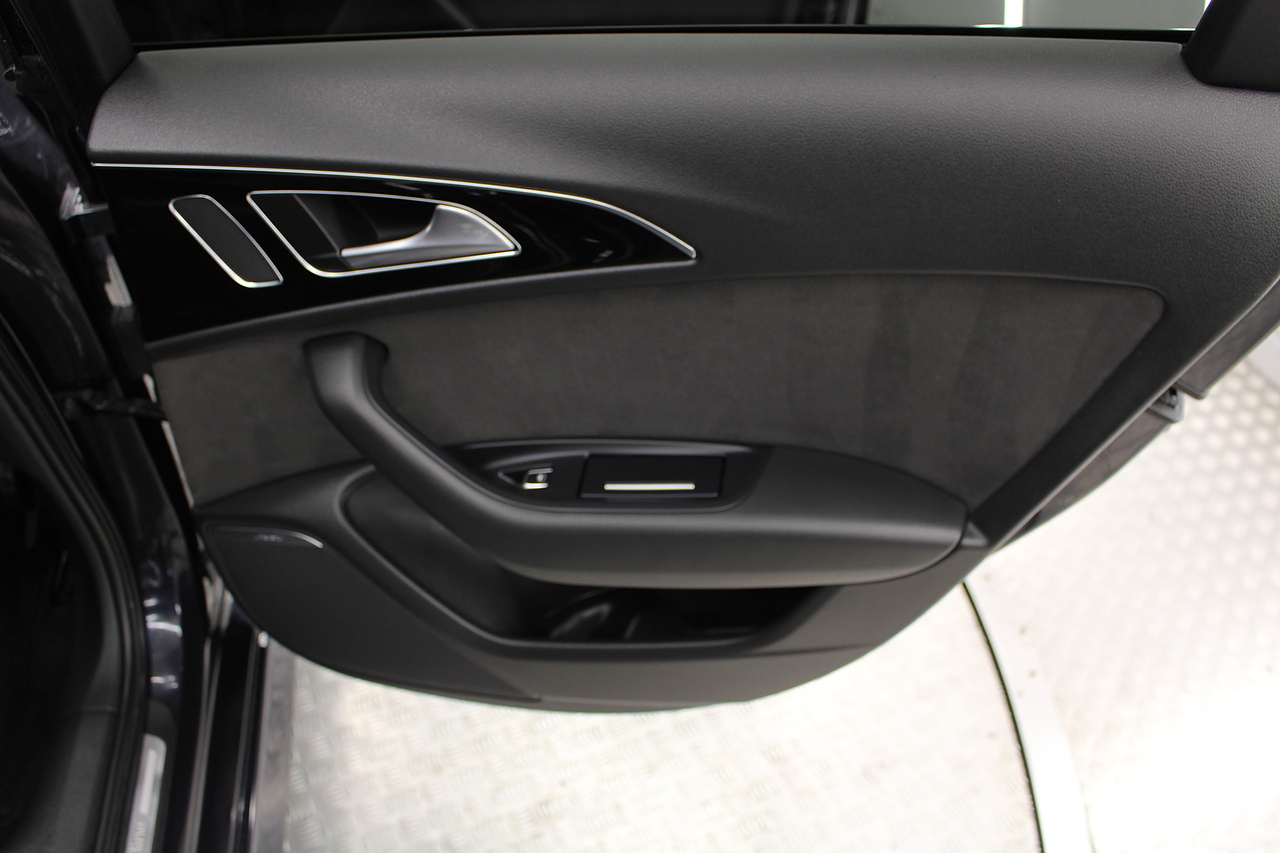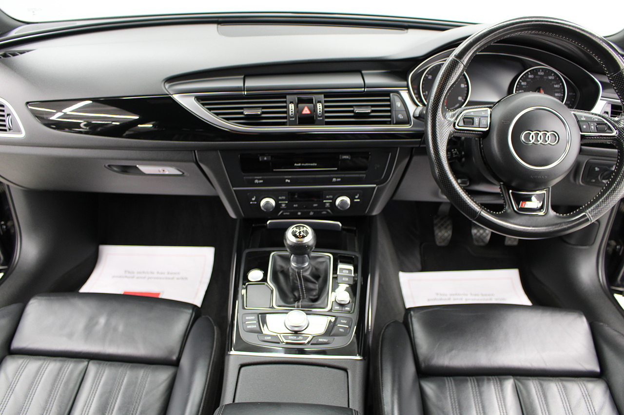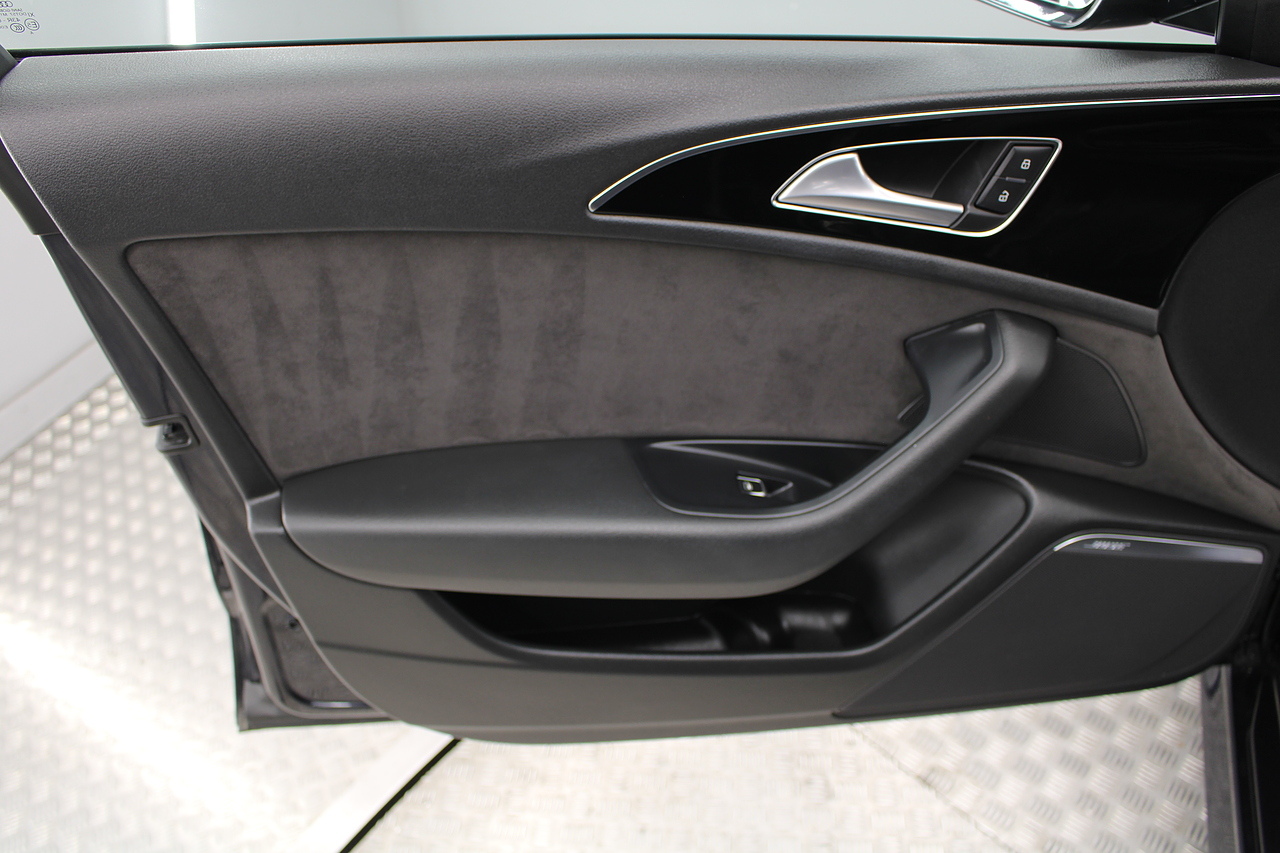 This A6 does come with, black leather interior, 3 zone climate control, cruise control, DAB radio with MP3 functionality, Bluetooth connectivity, steering wheel with mounted controls, premium BOSE sound system, headlight and rain sensors, rear and forward parking aid, 12v power adapter and ISOFIX anchorage points. With sharp styling, a comfortable cabin and one of the best handling in its class, the Audi A6 is a superb all round luxury car. It is considerably bigger than the A4, but still very easy to drive and park, and still offers huge interior space and a large boot too.