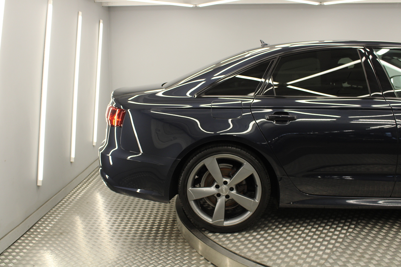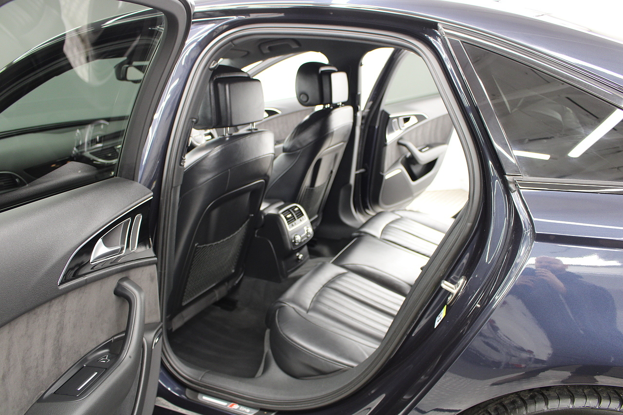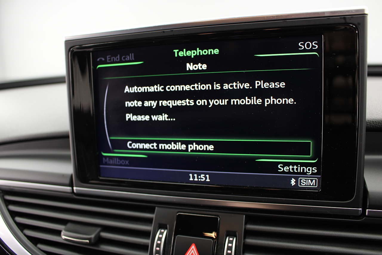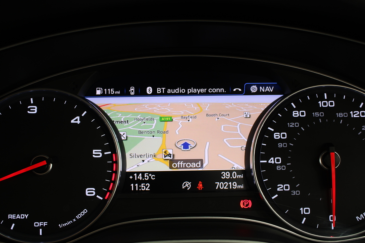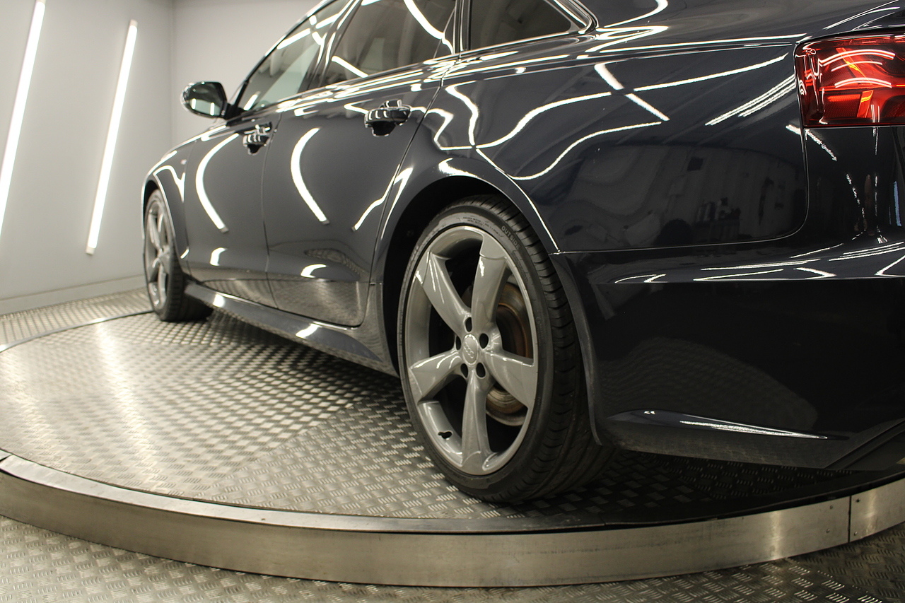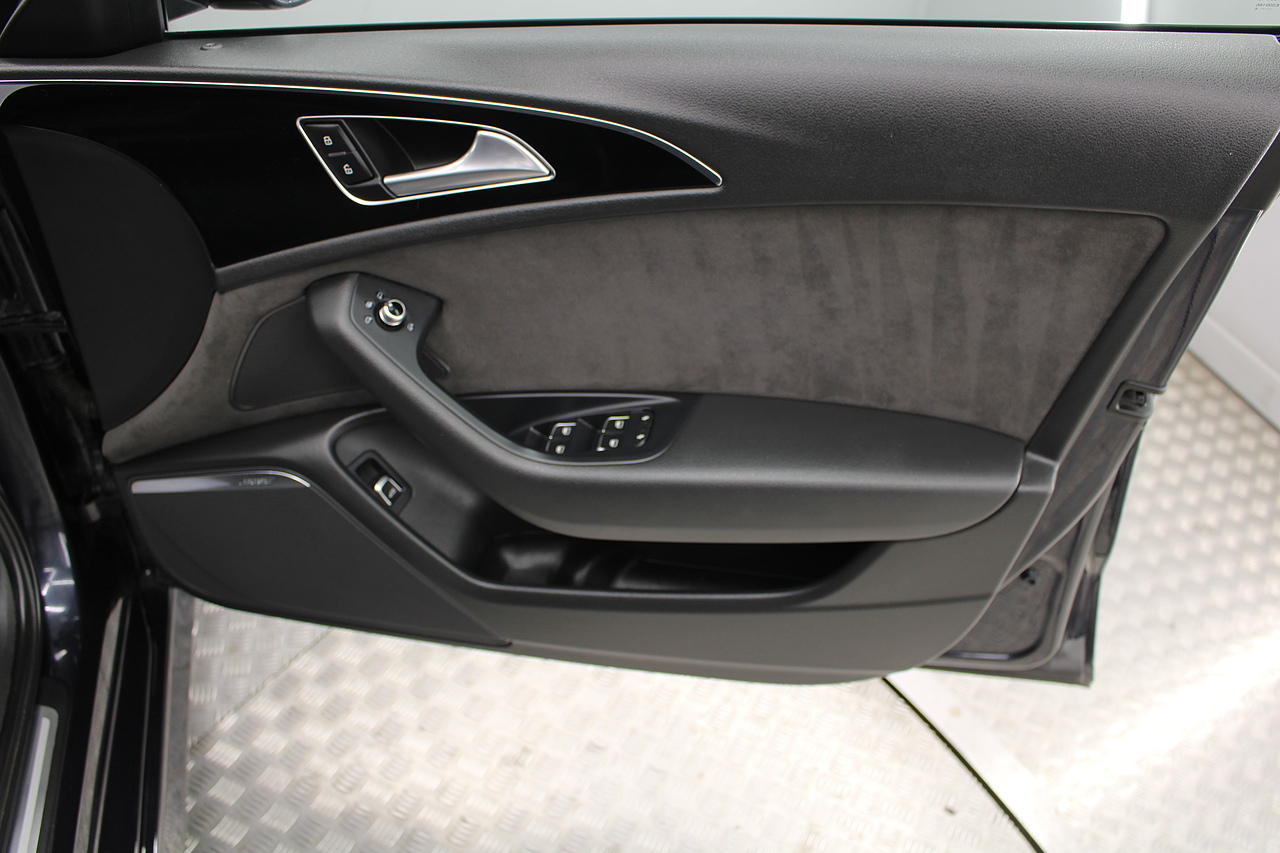 This A6 does come with, black leather interior, 3 zone climate control, cruise control, DAB radio with MP3 functionality, Bluetooth connectivity, steering wheel with mounted controls, premium BOSE sound system, headlight and rain sensors, rear and forward parking aid, 12v power adapter and ISOFIX anchorage points. With sharp styling, a comfortable cabin and one of the best handling in its class, the Audi A6 is a superb all round luxury car. It is considerably bigger than the A4, but still very easy to drive and park, and still offers huge interior space and a large boot too.