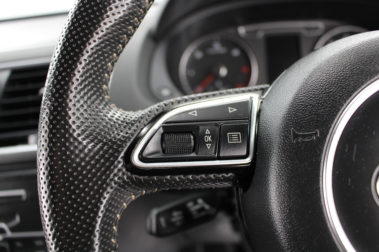 This Q5 does comes trimmed in black partial leather interior, dual zone climate control, cruise control, premium sound system, DAB radio and satellite navigation, Bluetooth connectivity, steering wheel mounted controls, headlight and rain sensors, rear and forward parking aid, power operated tailgate, 12v power adapter and ISOFIX anchorage points.