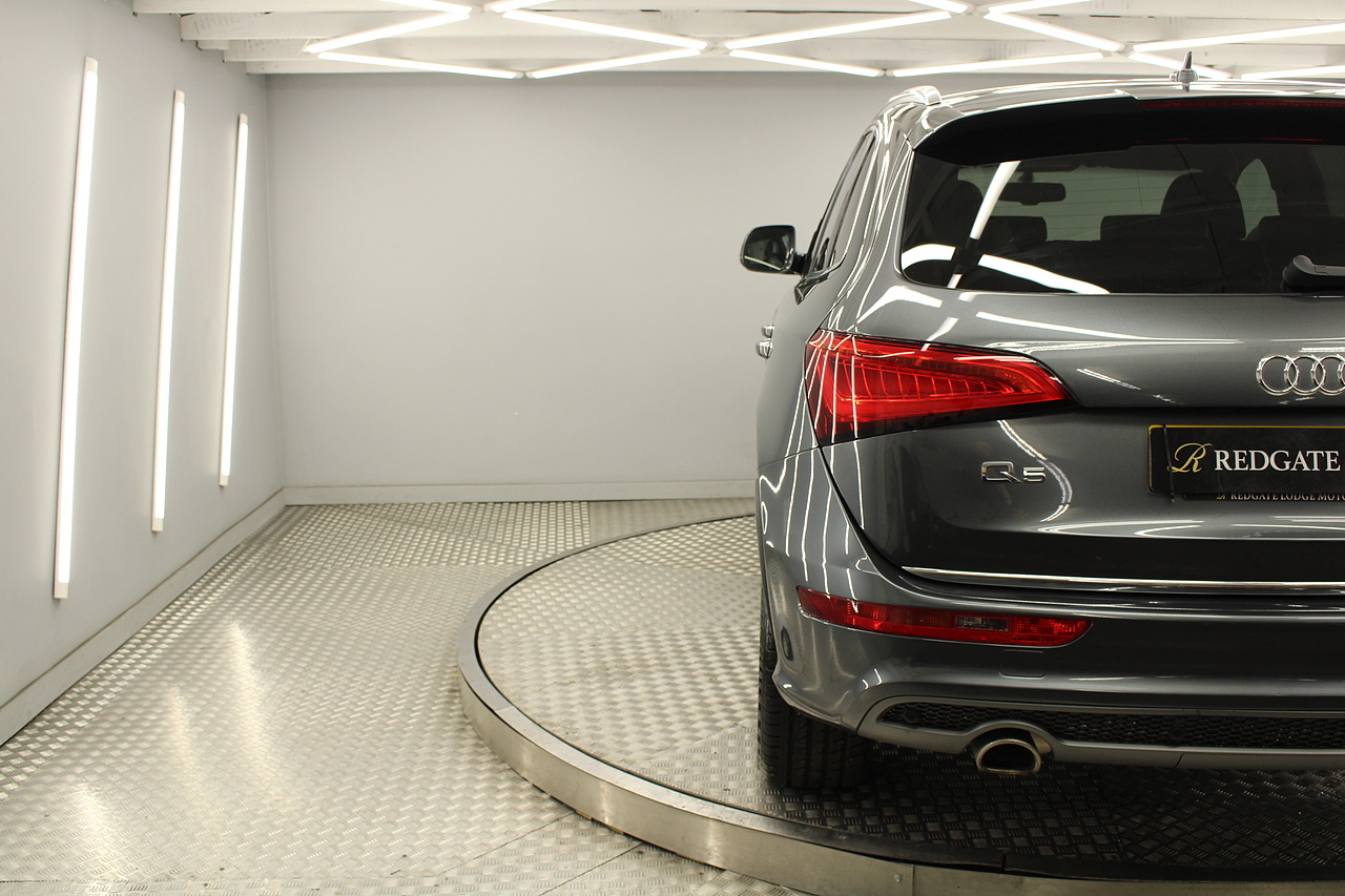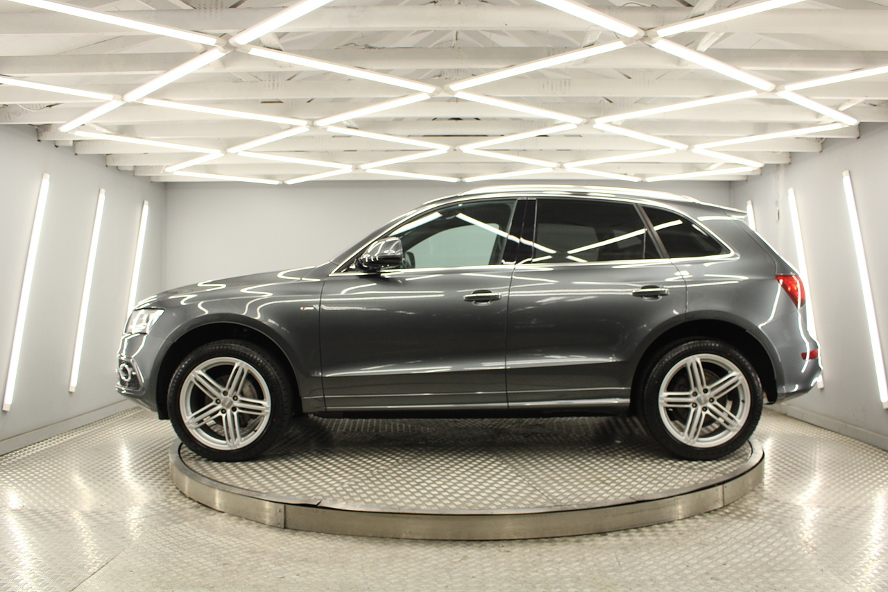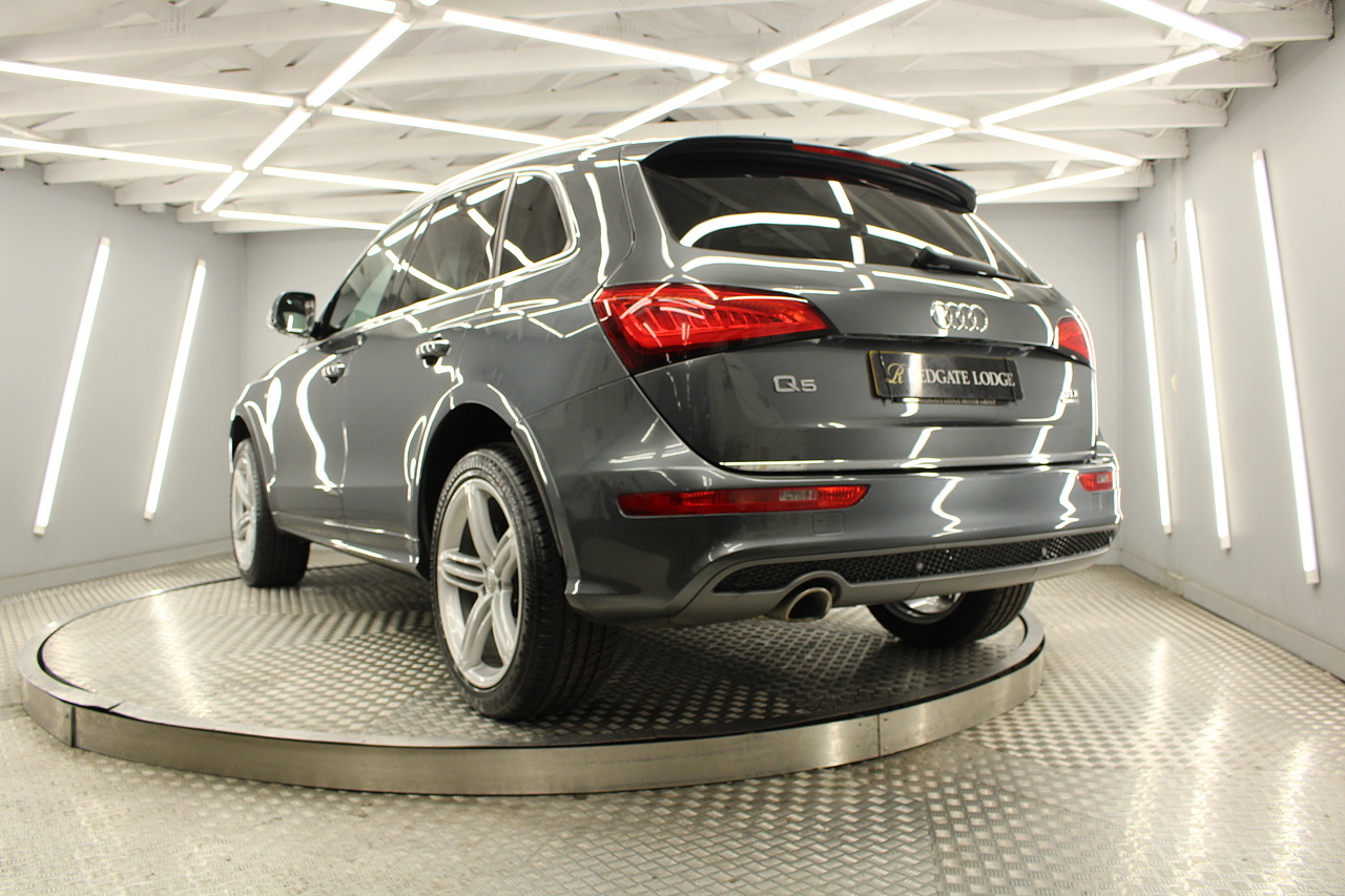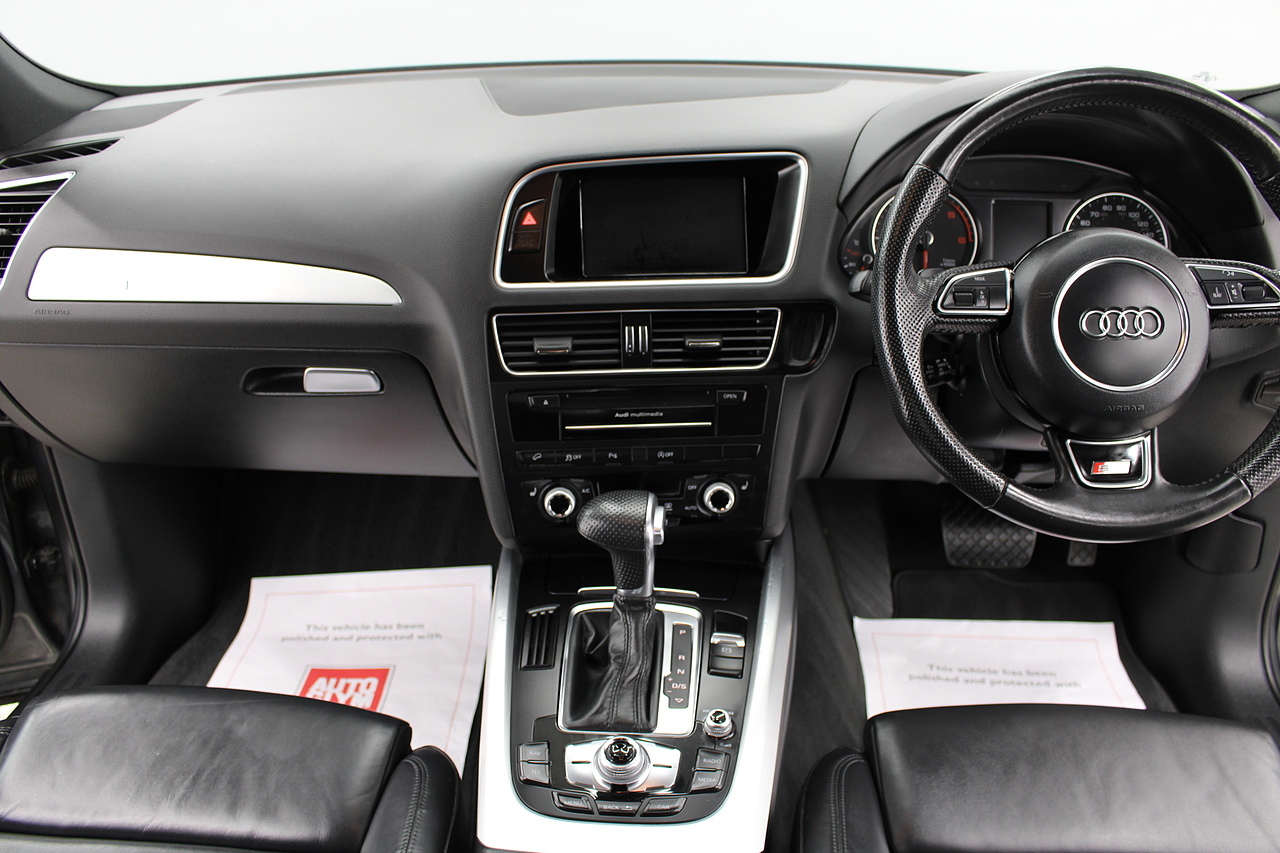 This Q5 does comes trimmed in black leather with heated front seats, dual zone climate control, cruise control, premium sound system, DAB radio and satellite navigation, Bluetooth connectivity, steering wheel mounted controls, headlight and rain sensors, rear and forward parking aid, power operated tailgate, 12v power adapter and ISOFIX anchorage points.