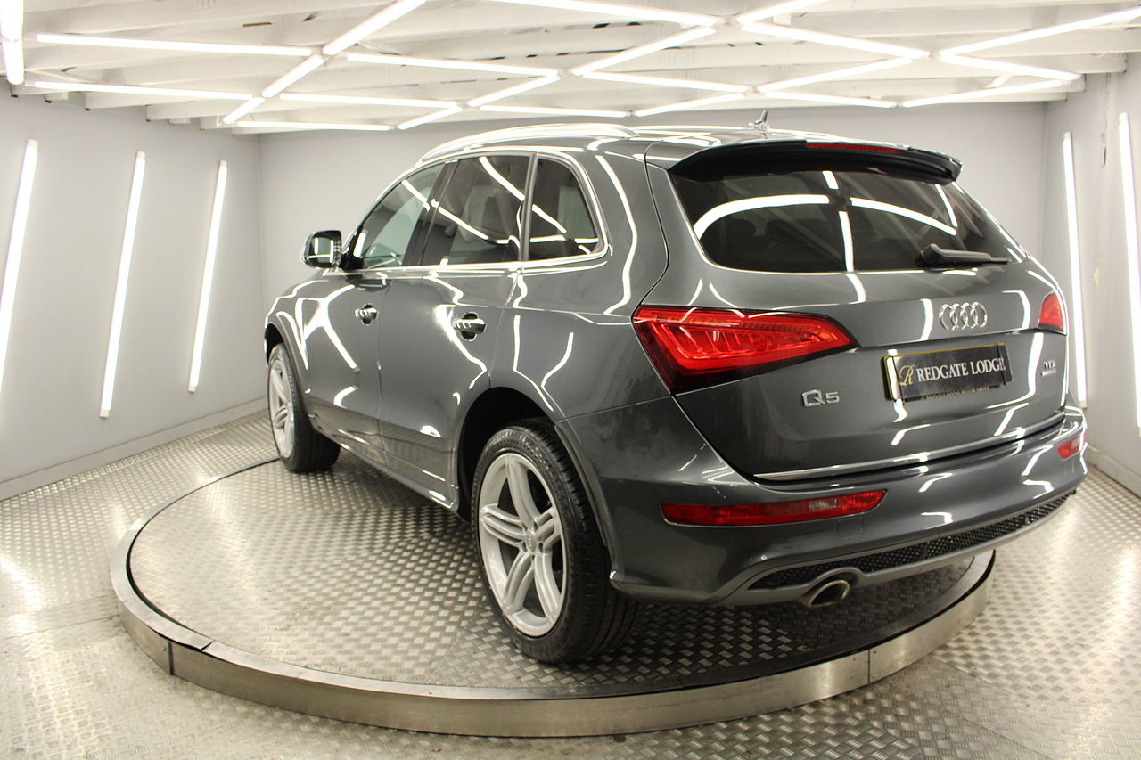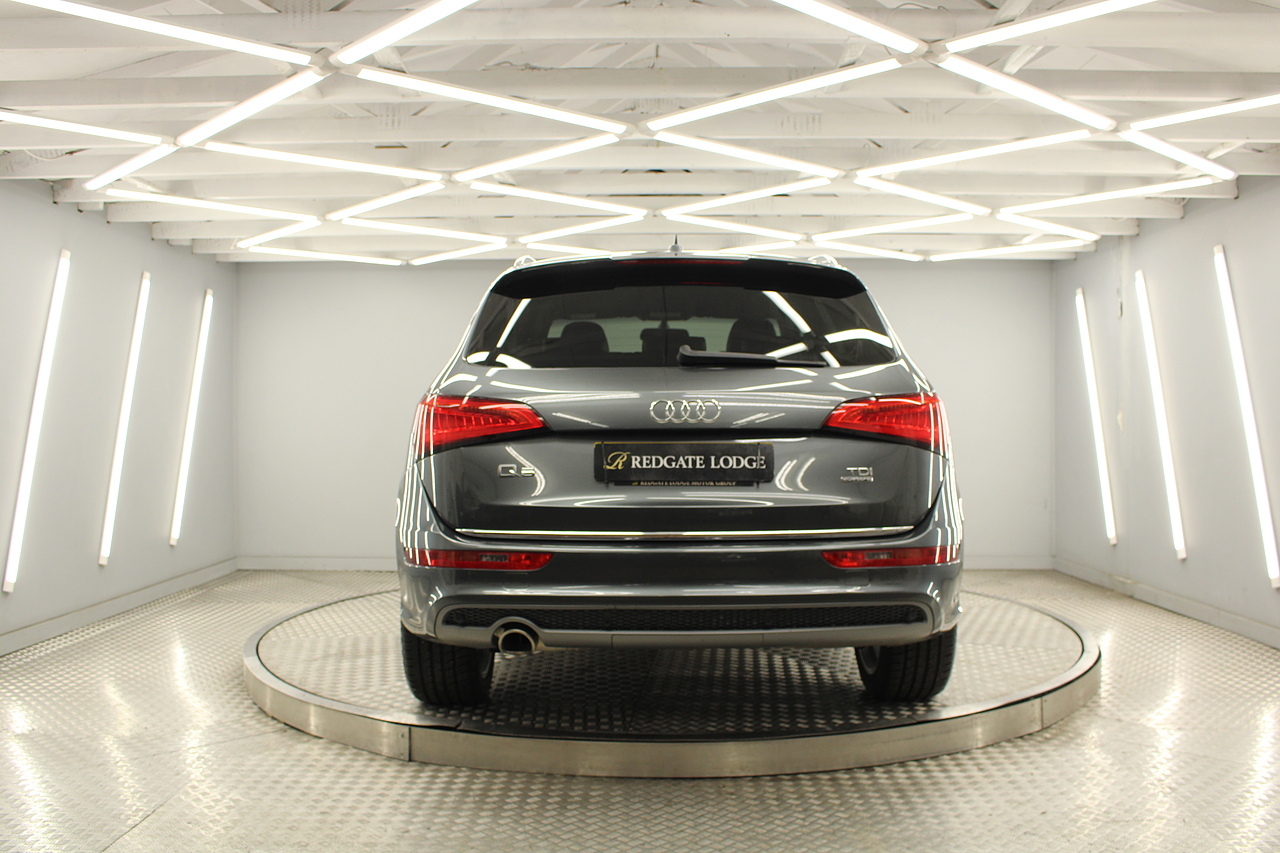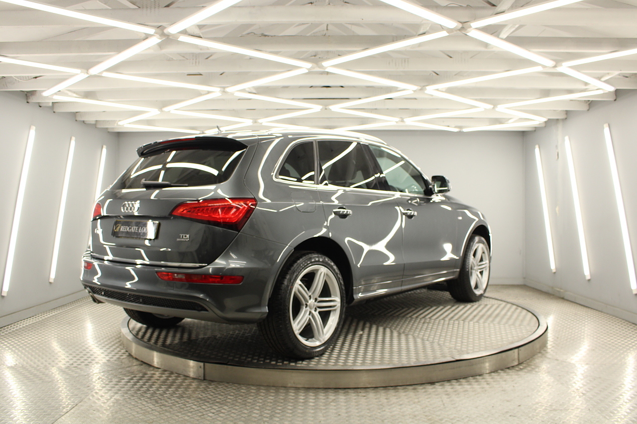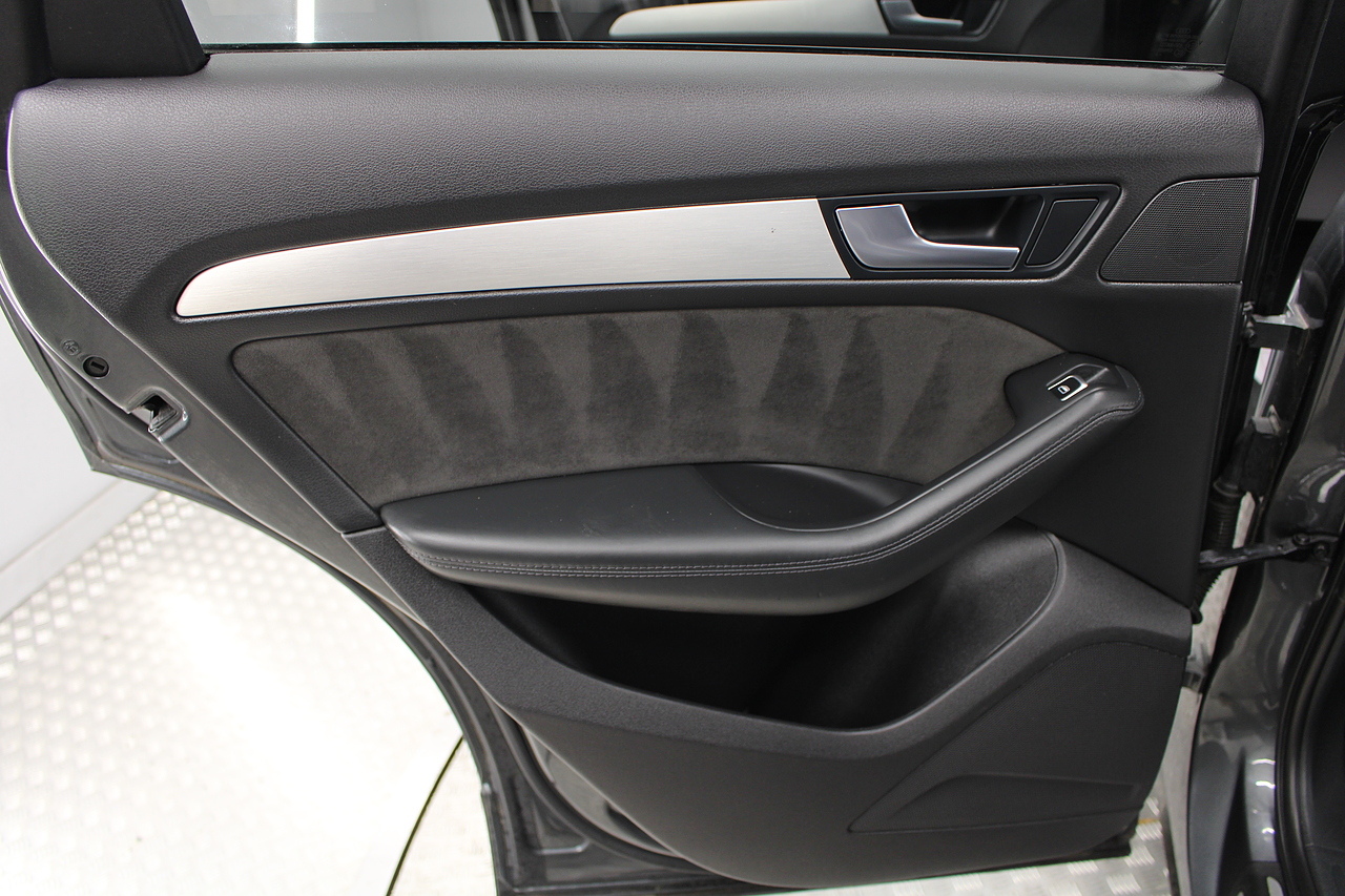 This Q5 does comes trimmed in black leather with heated front seats, dual zone climate control, cruise control, premium sound system, DAB radio and satellite navigation, Bluetooth connectivity, steering wheel mounted controls, headlight and rain sensors, rear and forward parking aid, power operated tailgate, 12v power adapter and ISOFIX anchorage points.