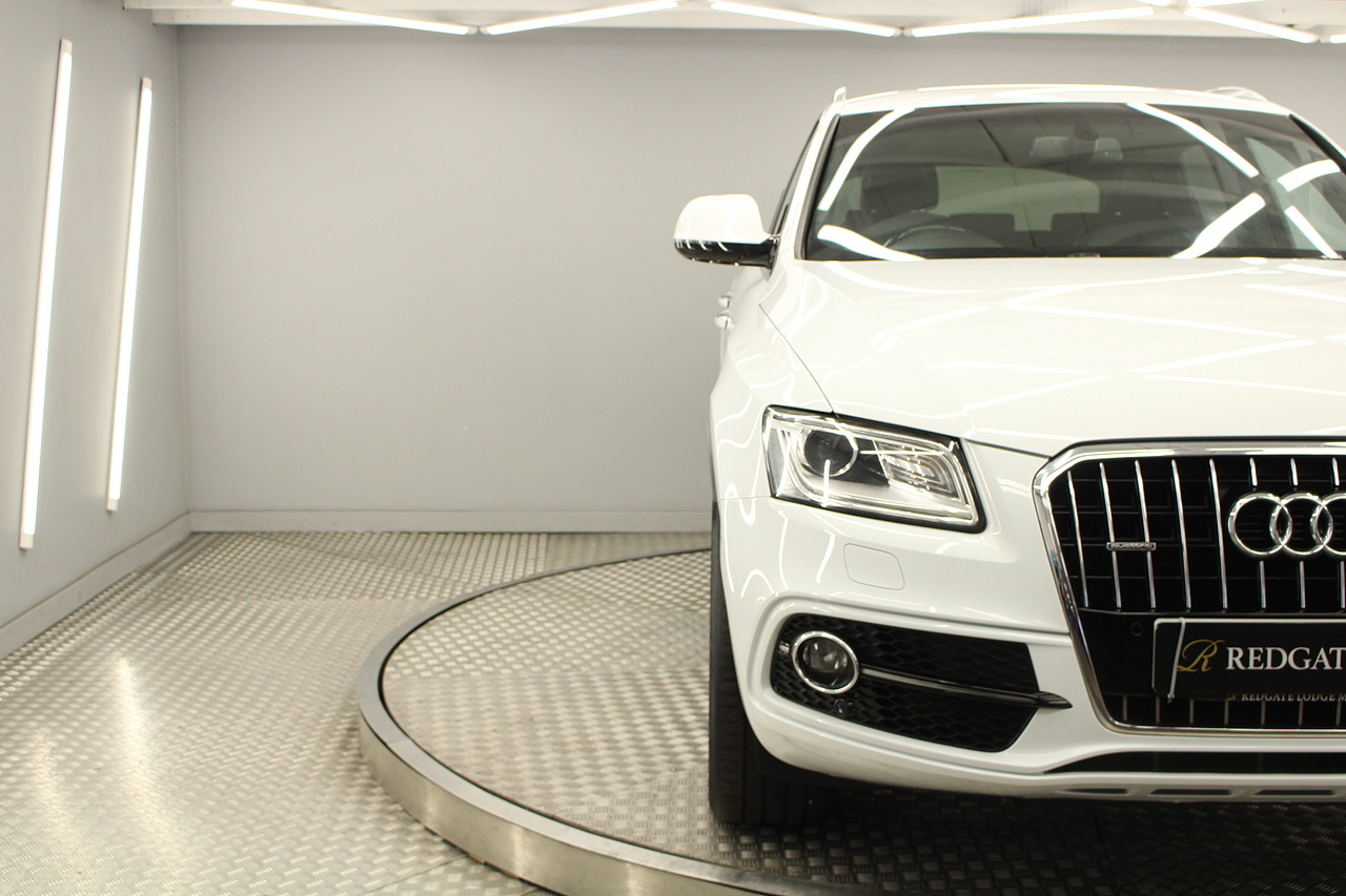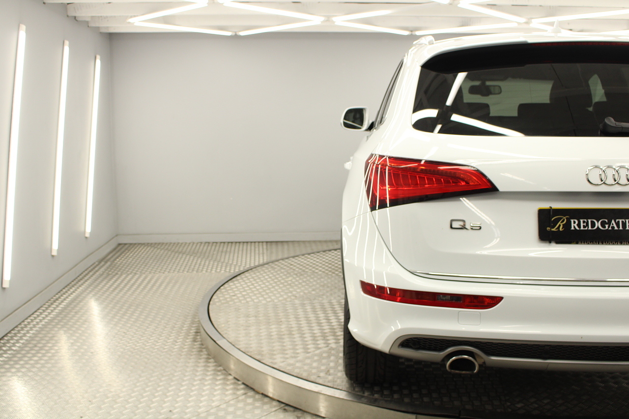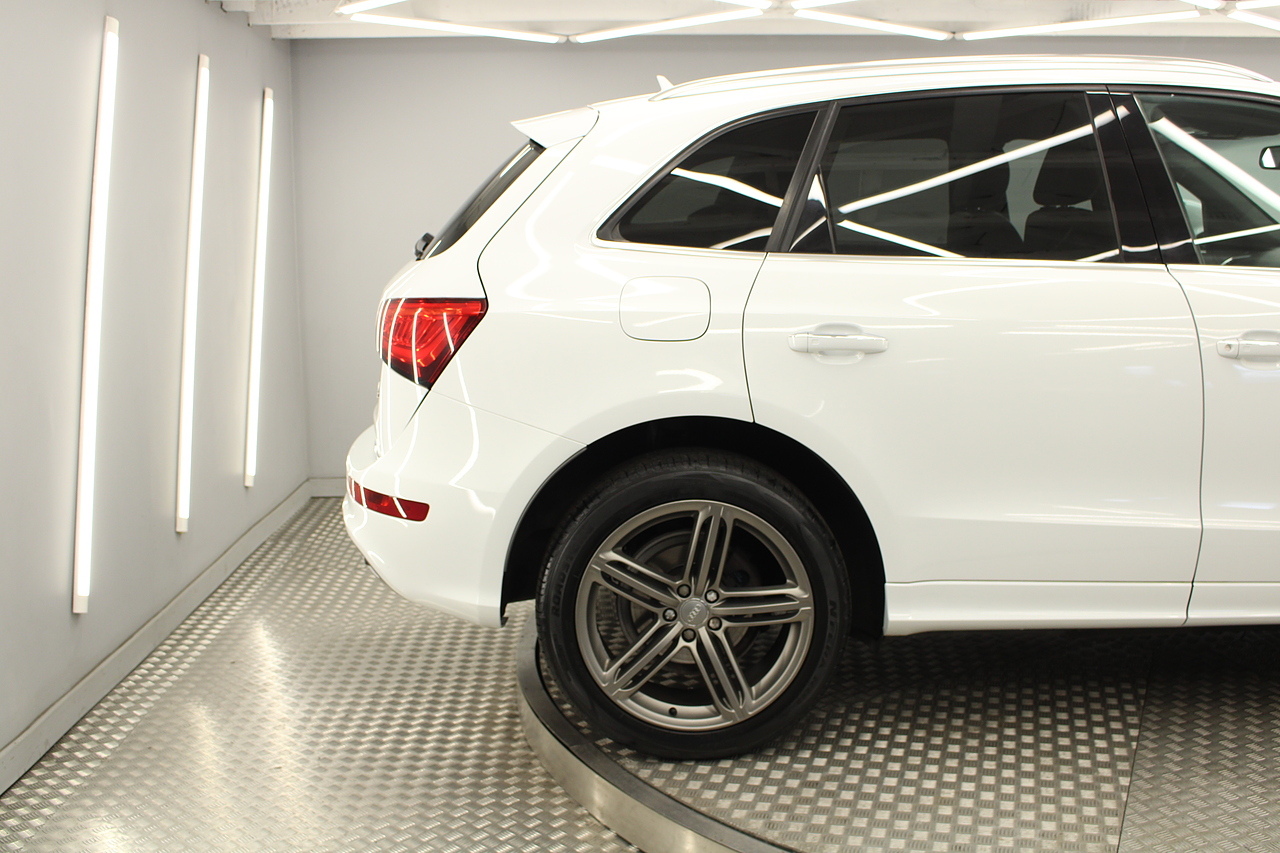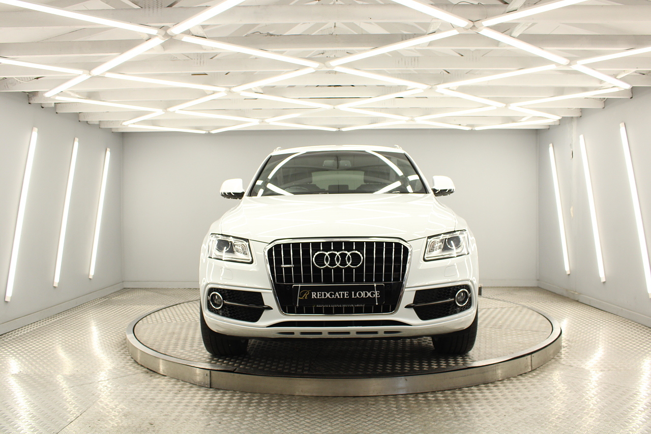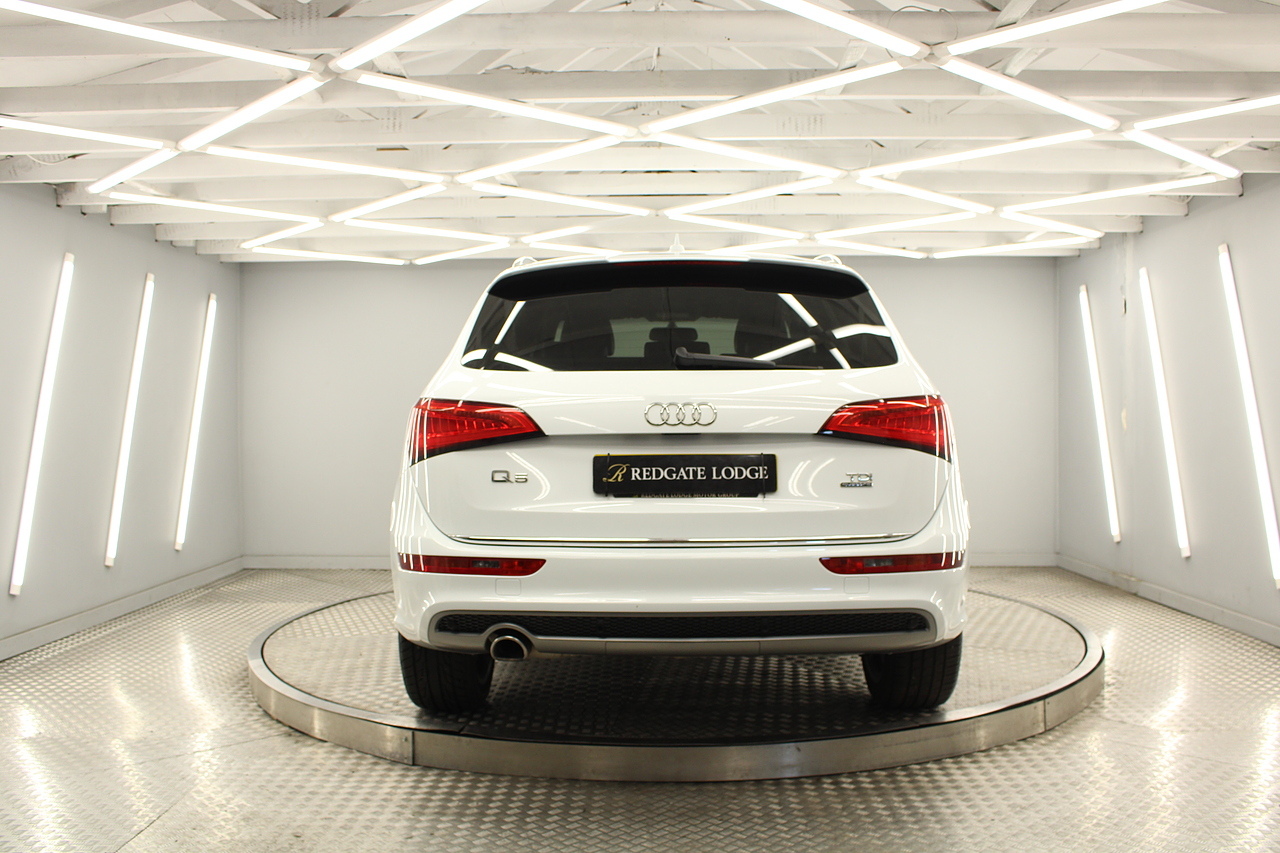 This Q5 does comes trimmed in black leather with heated front seats, dual zone climate control, cruise control, premium sound system, DAB radio and satellite navigation, Bluetooth connectivity, steering wheel mounted controls, headlight and rain sensors, rear and forward parking aid, power operated tailgate, 12v power adapter and ISOFIX anchorage points.