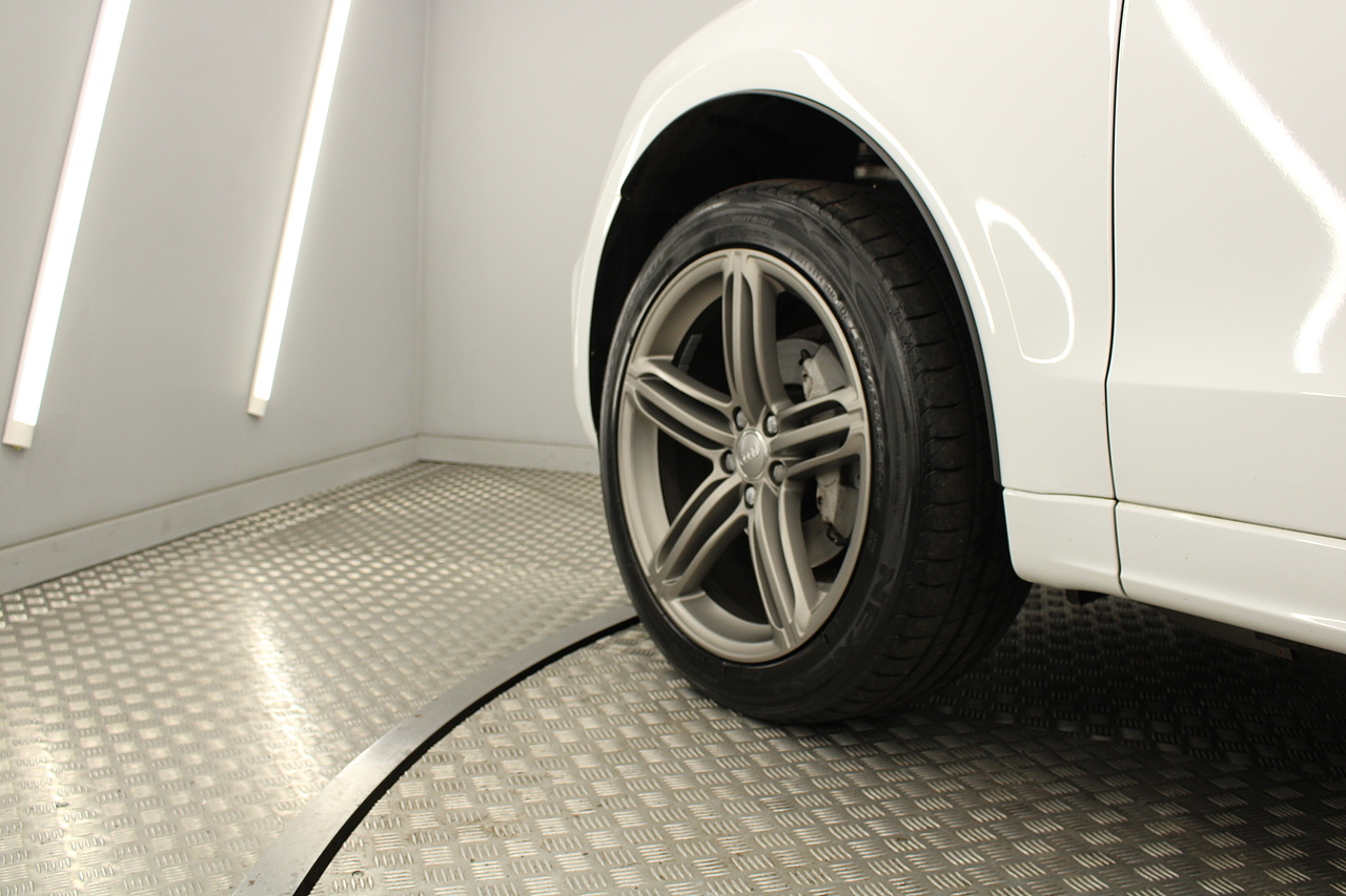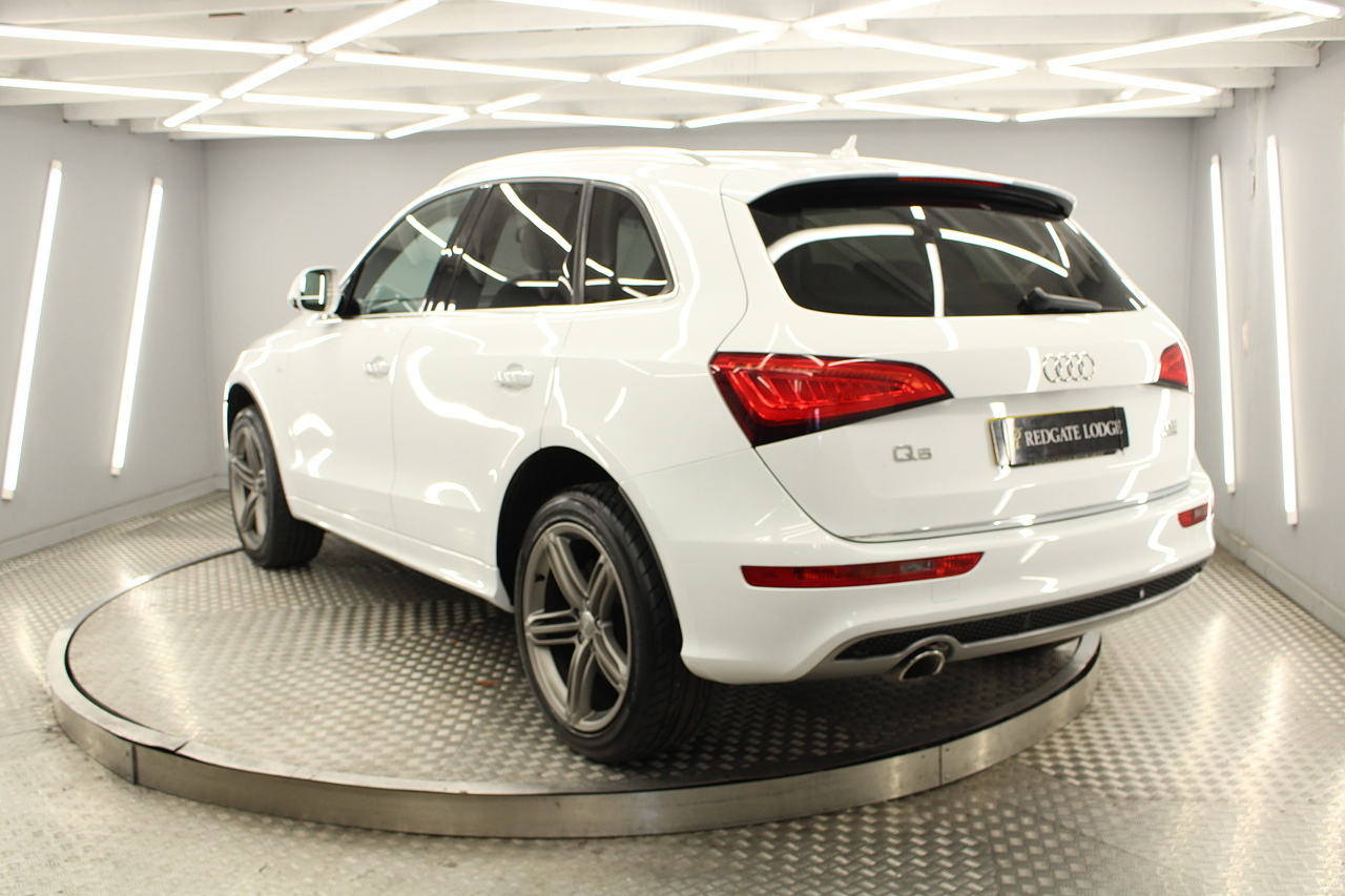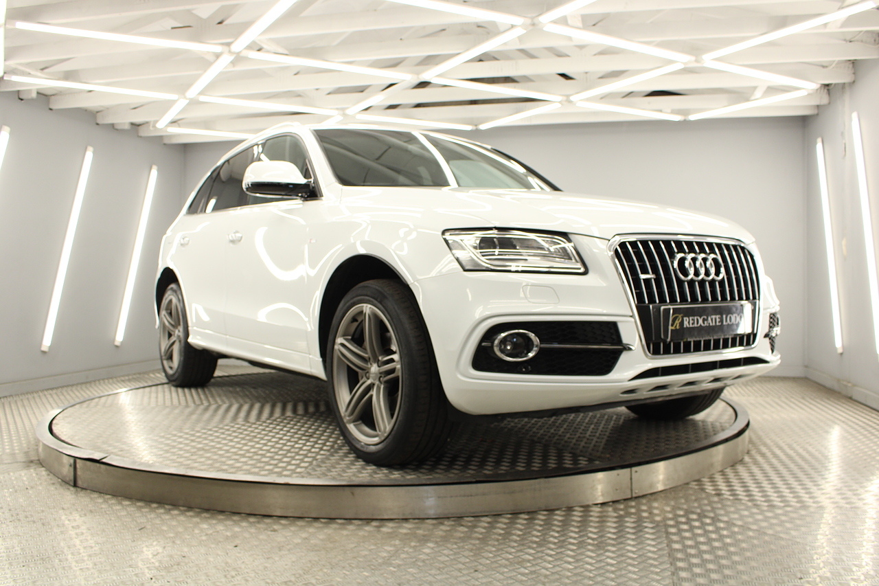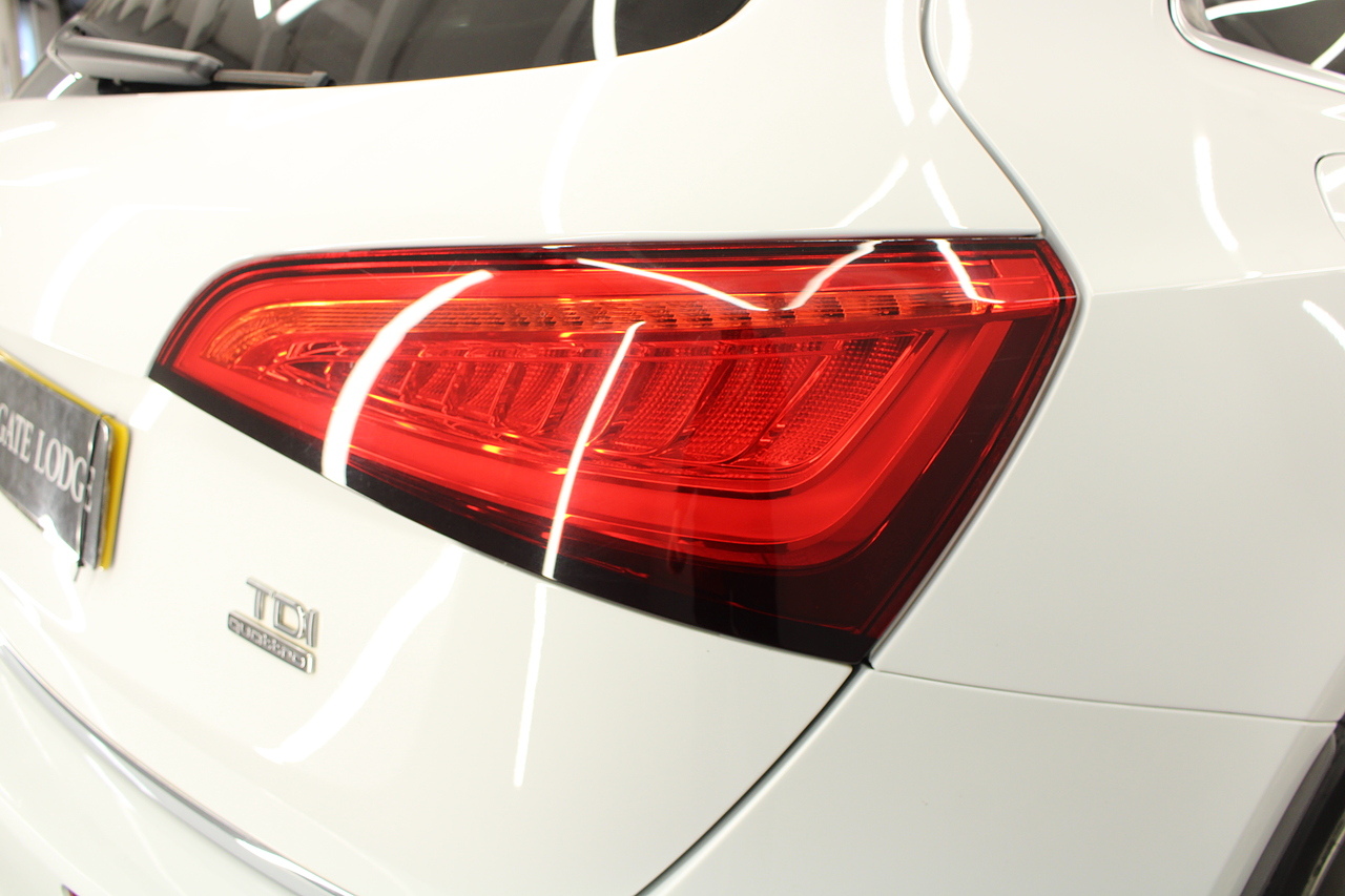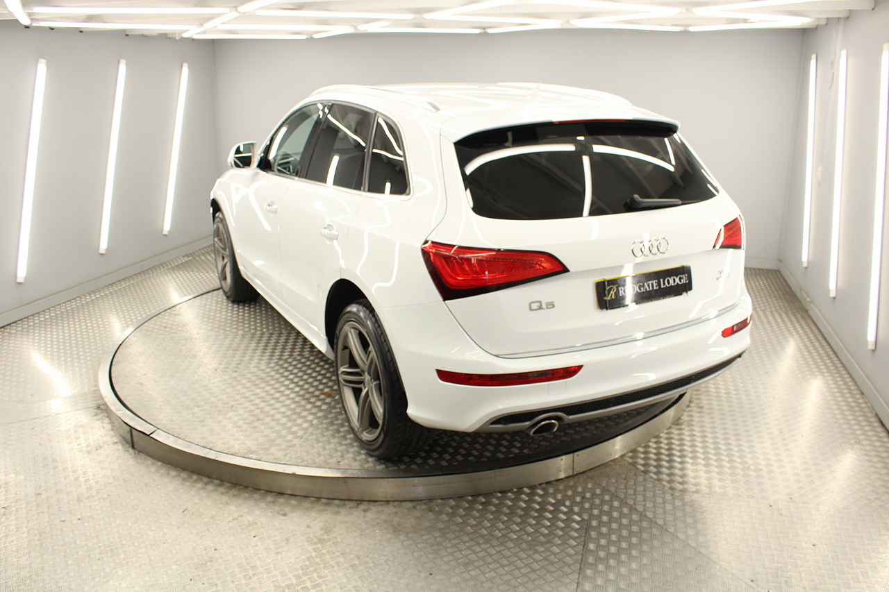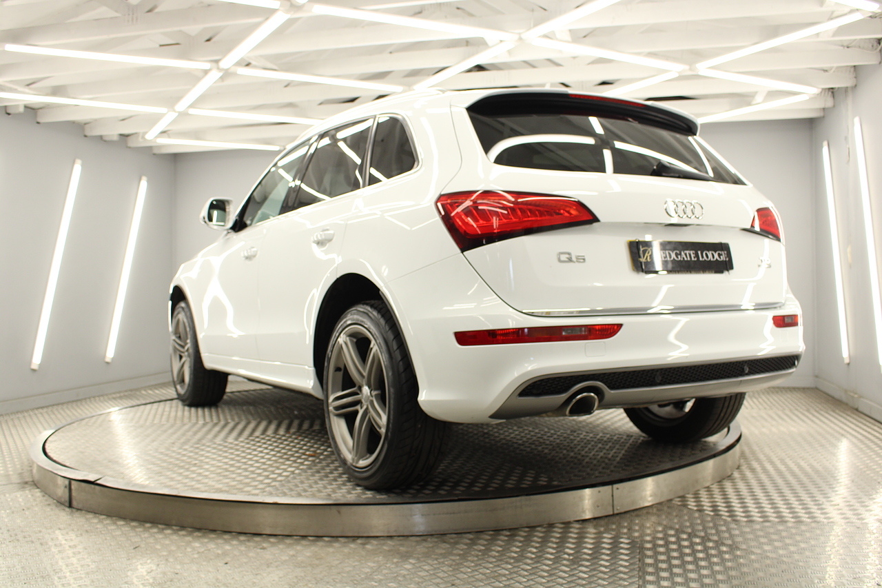This Q5 does comes trimmed in black leather with heated front seats, dual zone climate control, cruise control, premium sound system, DAB radio and satellite navigation, Bluetooth connectivity, steering wheel mounted controls, headlight and rain sensors, rear and forward parking aid, power operated tailgate, 12v power adapter and ISOFIX anchorage points.