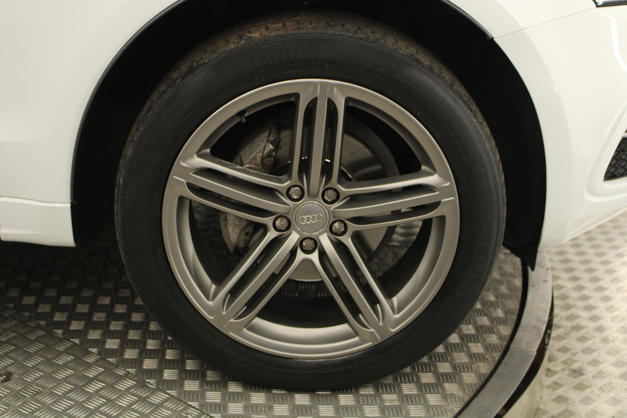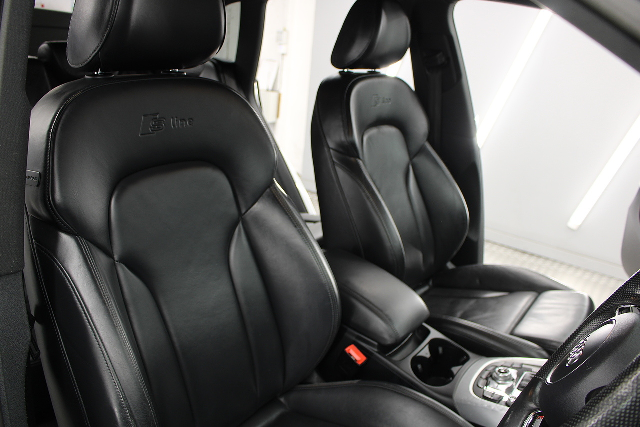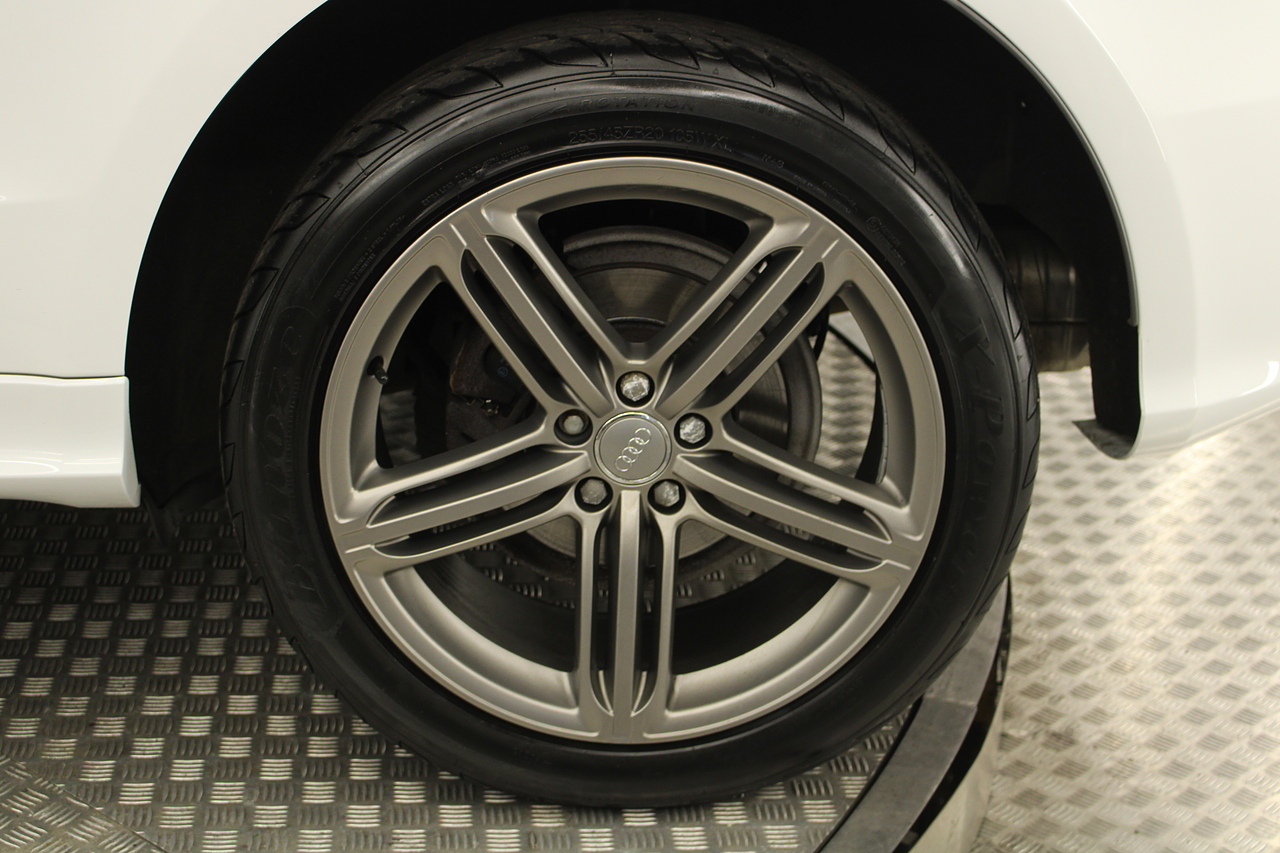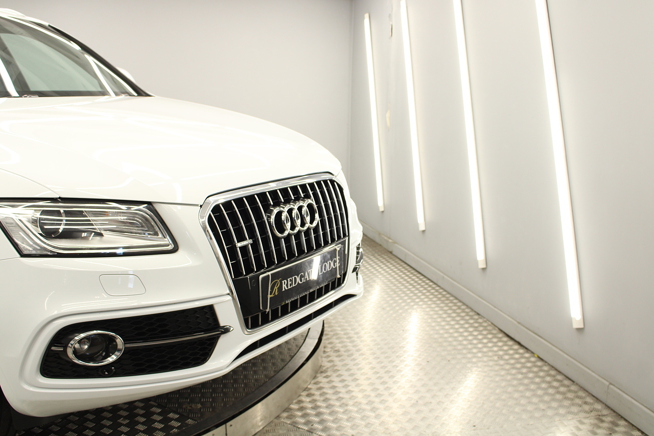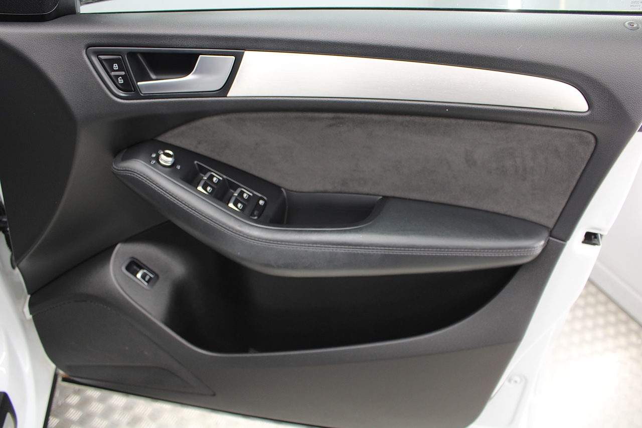 This Q5 does comes trimmed in black leather with heated front seats, dual zone climate control, cruise control, premium sound system, DAB radio and satellite navigation, Bluetooth connectivity, steering wheel mounted controls, headlight and rain sensors, rear and forward parking aid, power operated tailgate, 12v power adapter and ISOFIX anchorage points.