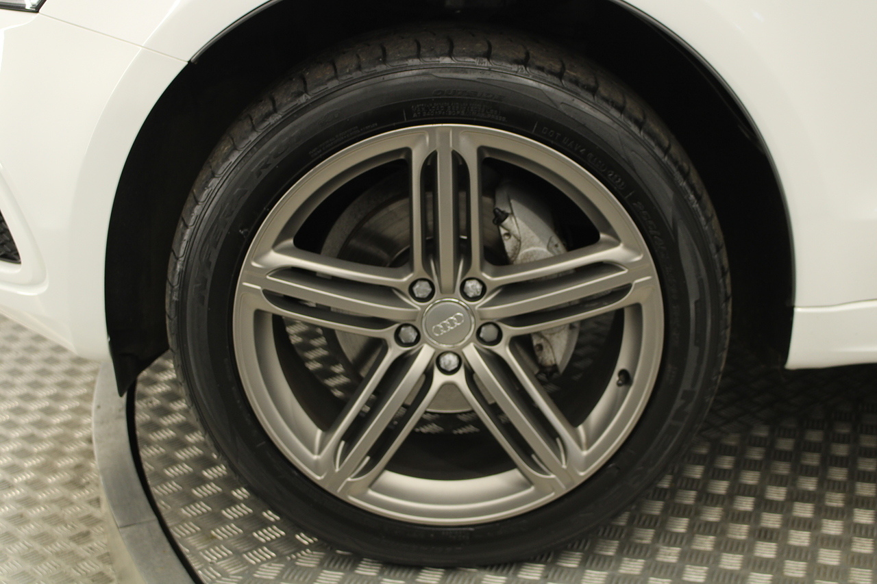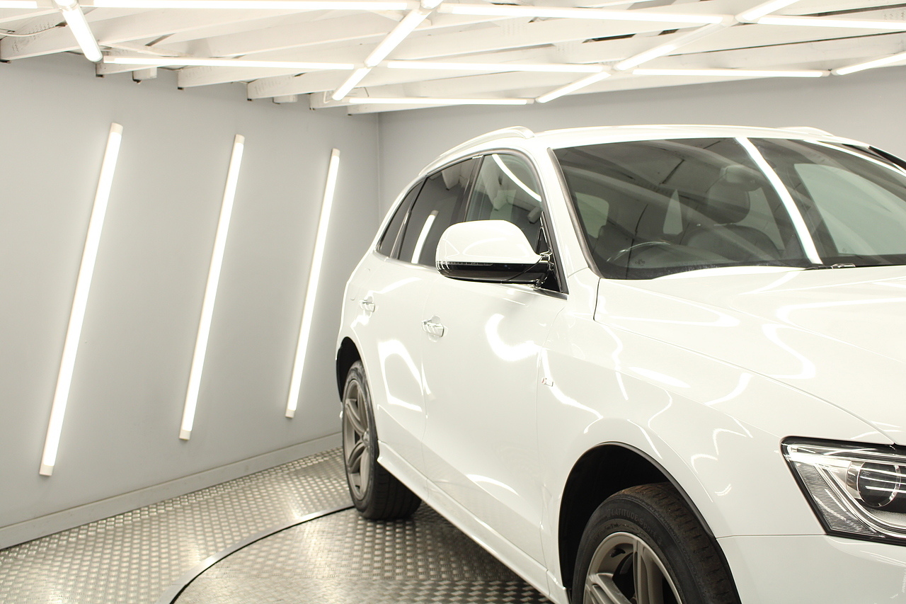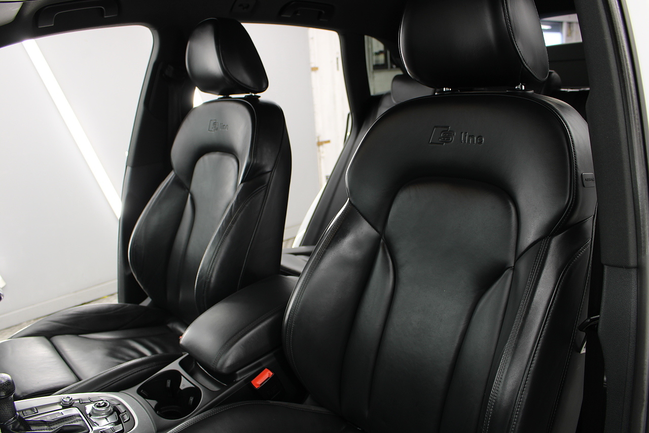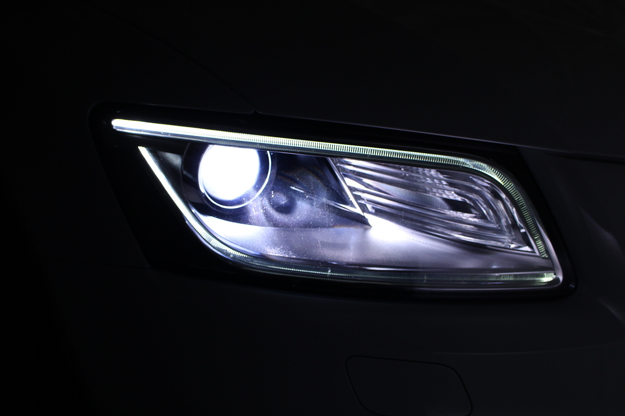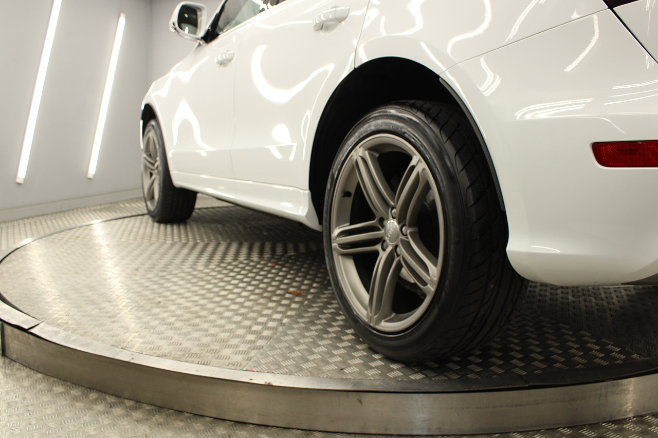 This Q5 does comes trimmed in black leather with heated front seats, dual zone climate control, cruise control, premium sound system, DAB radio and satellite navigation, Bluetooth connectivity, steering wheel mounted controls, headlight and rain sensors, rear and forward parking aid, power operated tailgate, 12v power adapter and ISOFIX anchorage points.