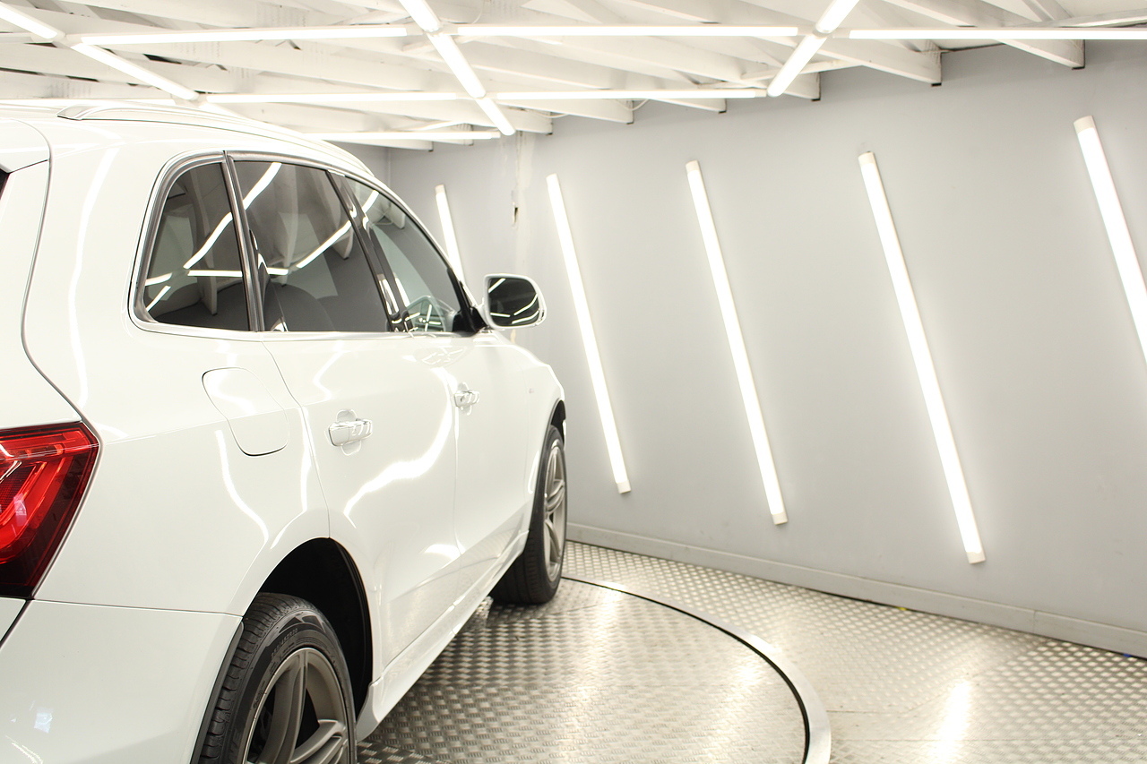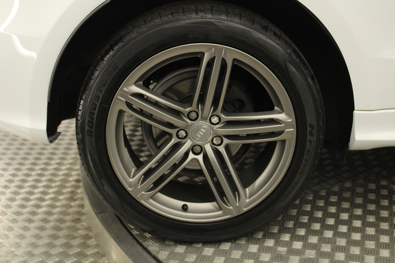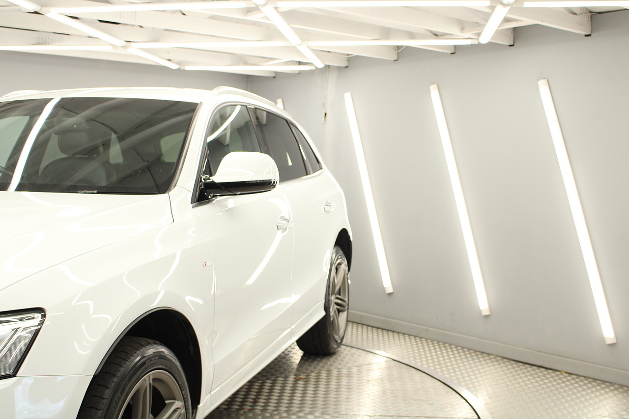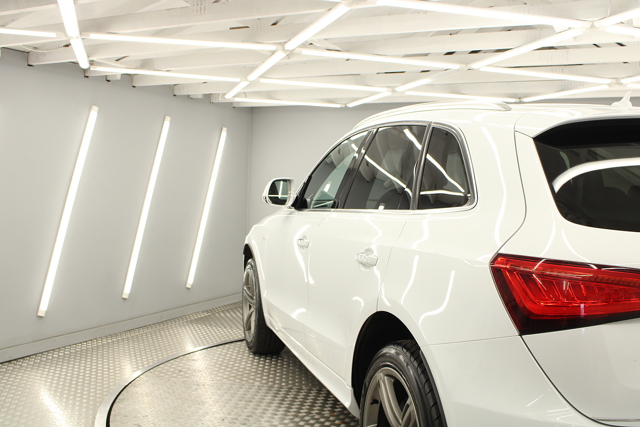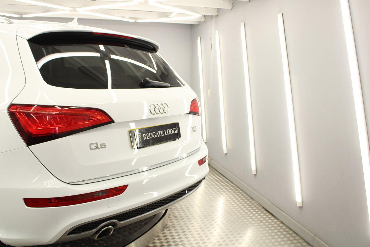 This Q5 does comes trimmed in black leather with heated front seats, dual zone climate control, cruise control, premium sound system, DAB radio and satellite navigation, Bluetooth connectivity, steering wheel mounted controls, headlight and rain sensors, rear and forward parking aid, power operated tailgate, 12v power adapter and ISOFIX anchorage points.