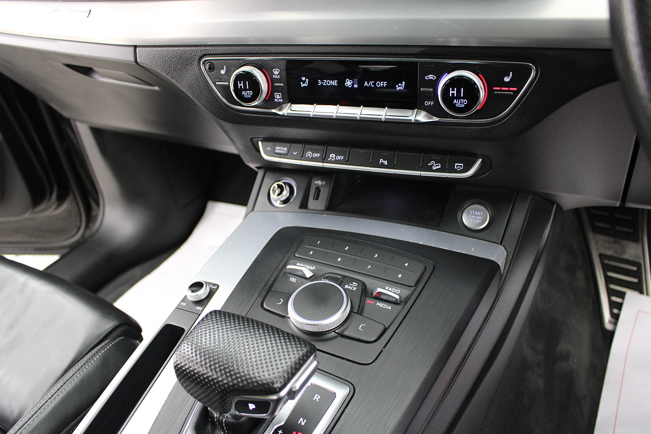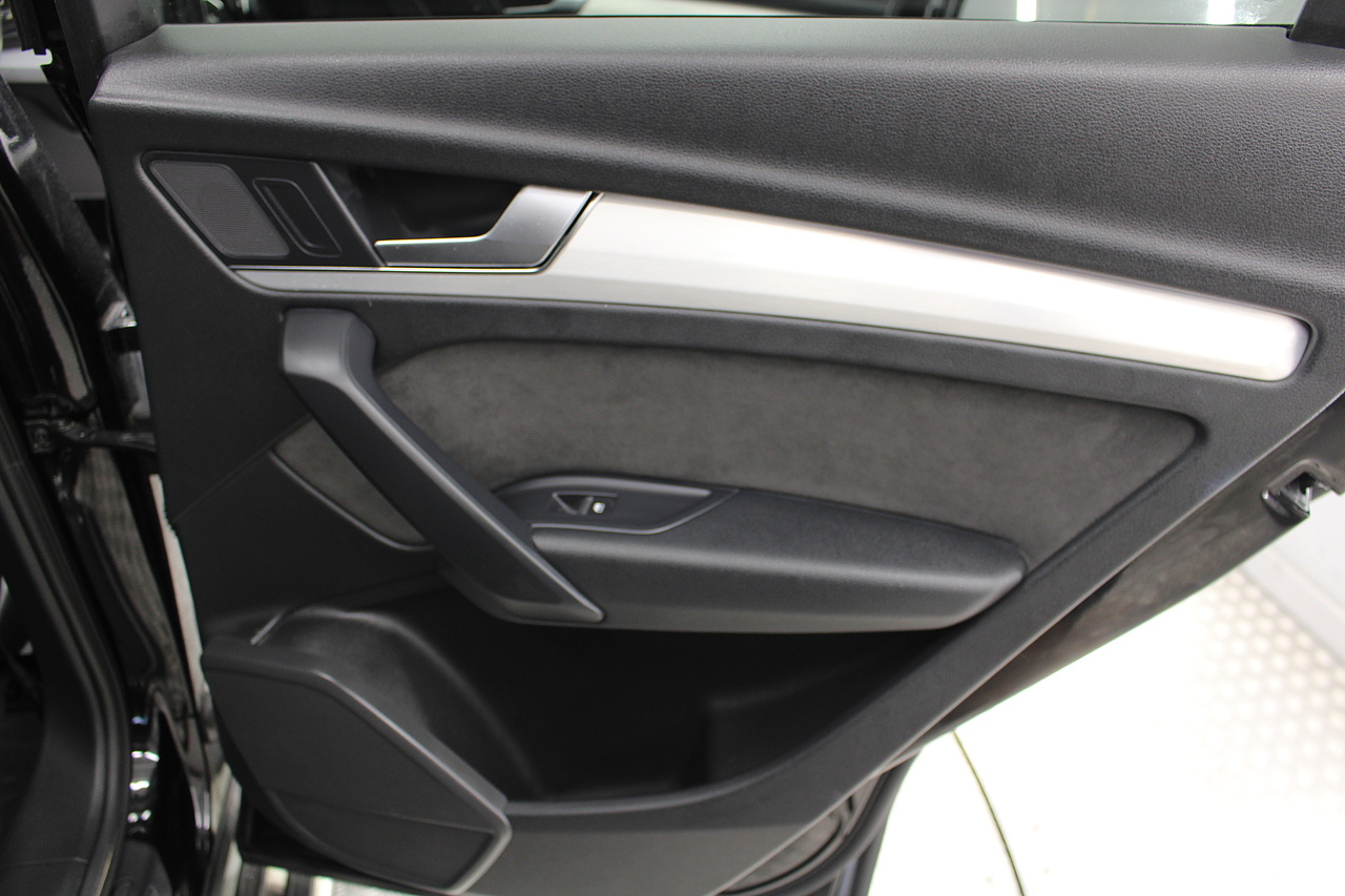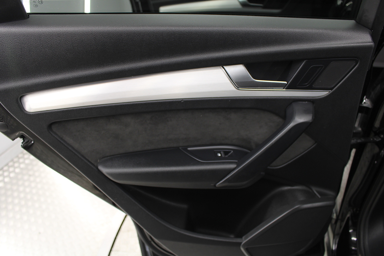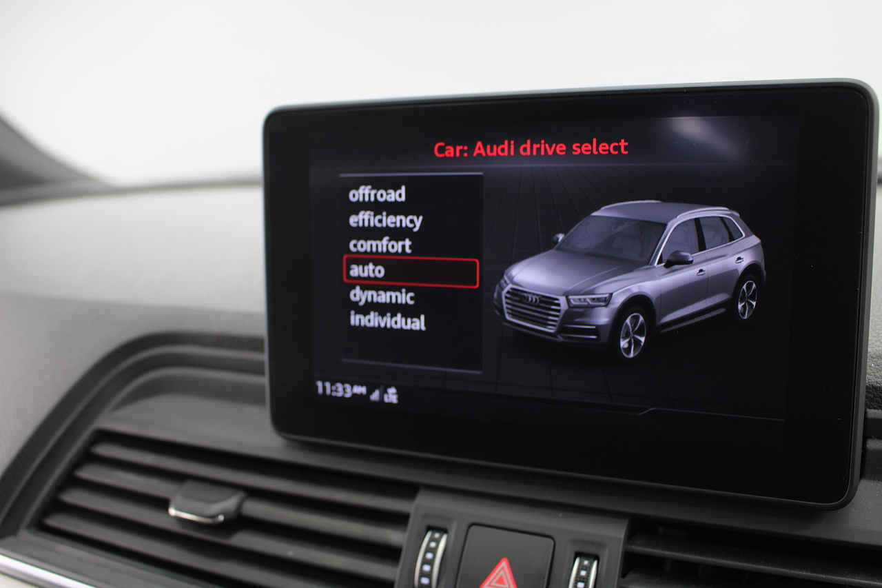 This Q5 does comes trimmed in black quilted leather with heated front seats, dual zone climate control, cruise control, premium sound system, DAB radio and satellite navigation, Bluetooth connectivity, steering wheel mounted controls, headlight and rain sensors, rear and forward parking aid, power operated tailgate, 12v power adapter and ISOFIX anchorage points.