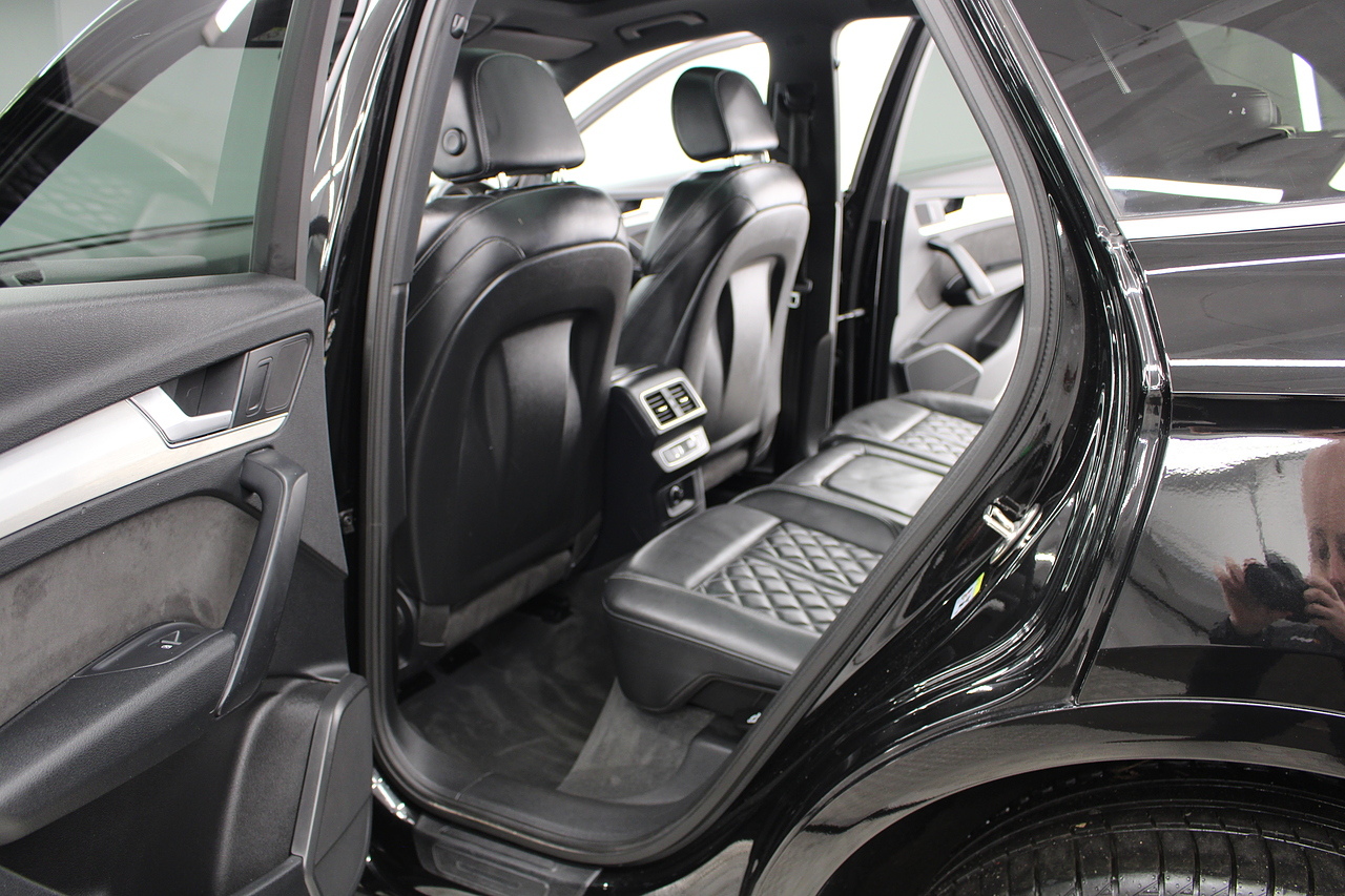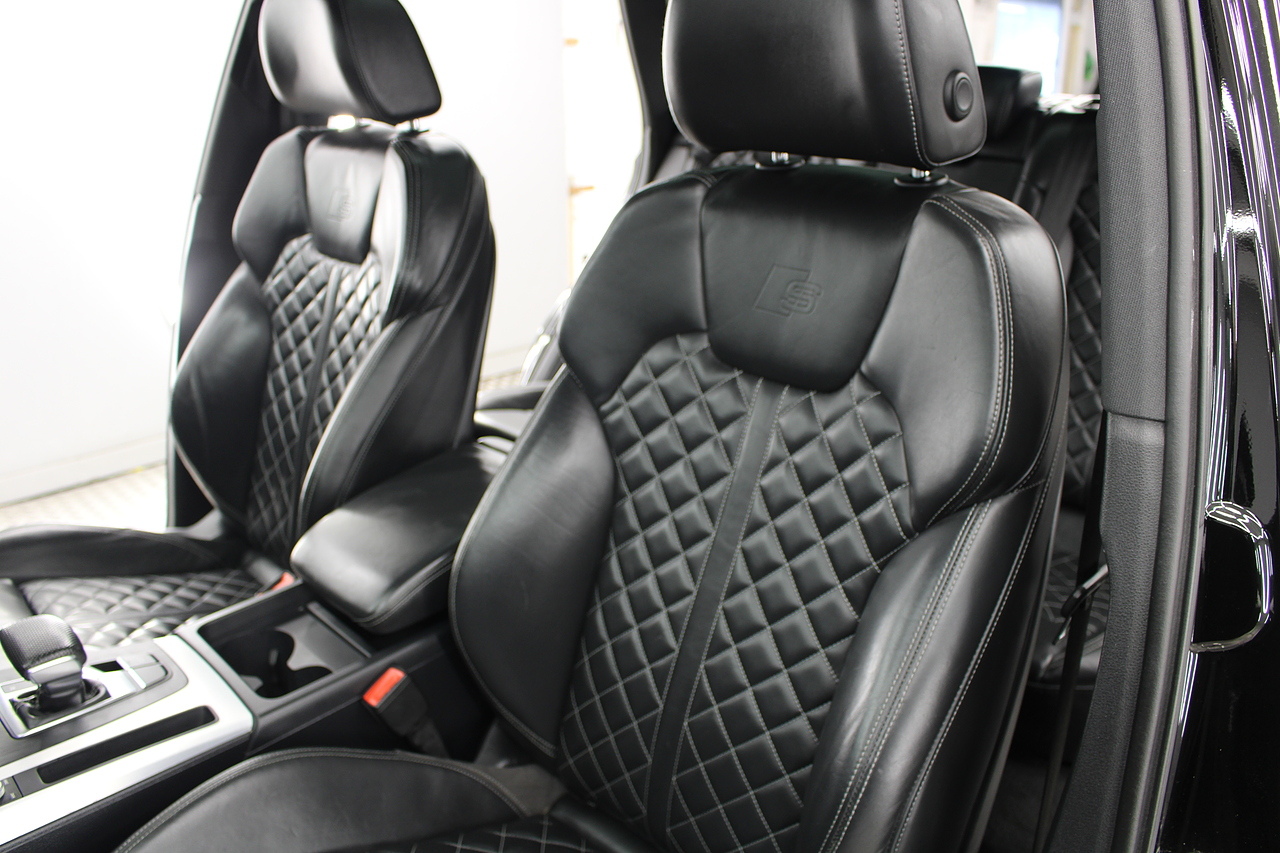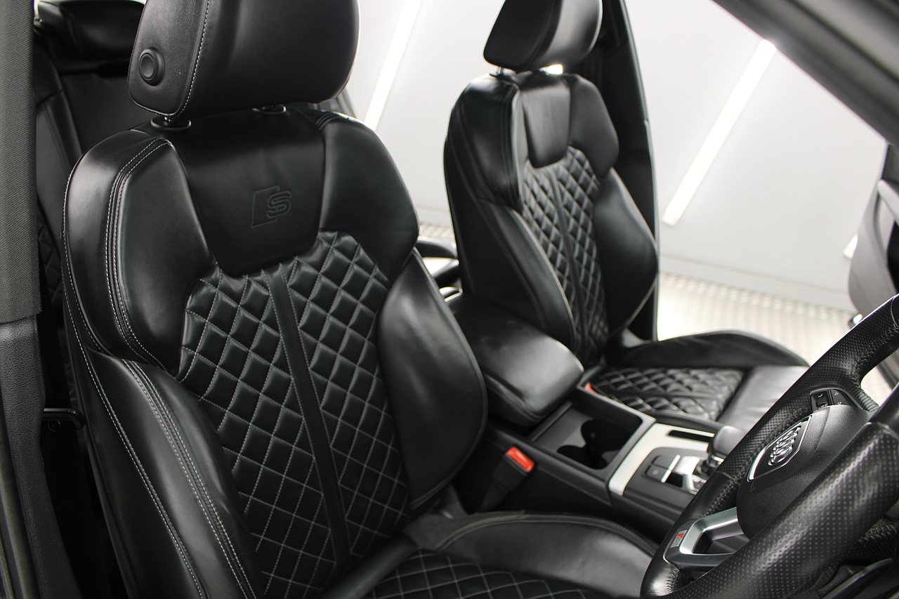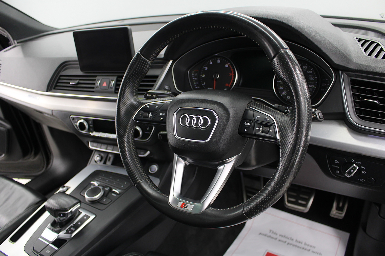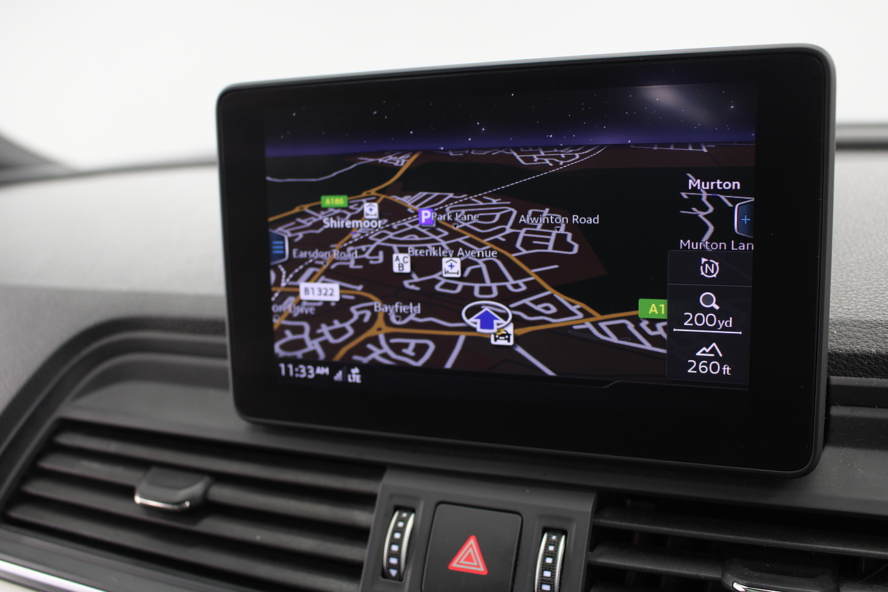 This Q5 does comes trimmed in black quilted leather with heated front seats, dual zone climate control, cruise control, premium sound system, DAB radio and satellite navigation, Bluetooth connectivity, steering wheel mounted controls, headlight and rain sensors, rear and forward parking aid, power operated tailgate, 12v power adapter and ISOFIX anchorage points.
