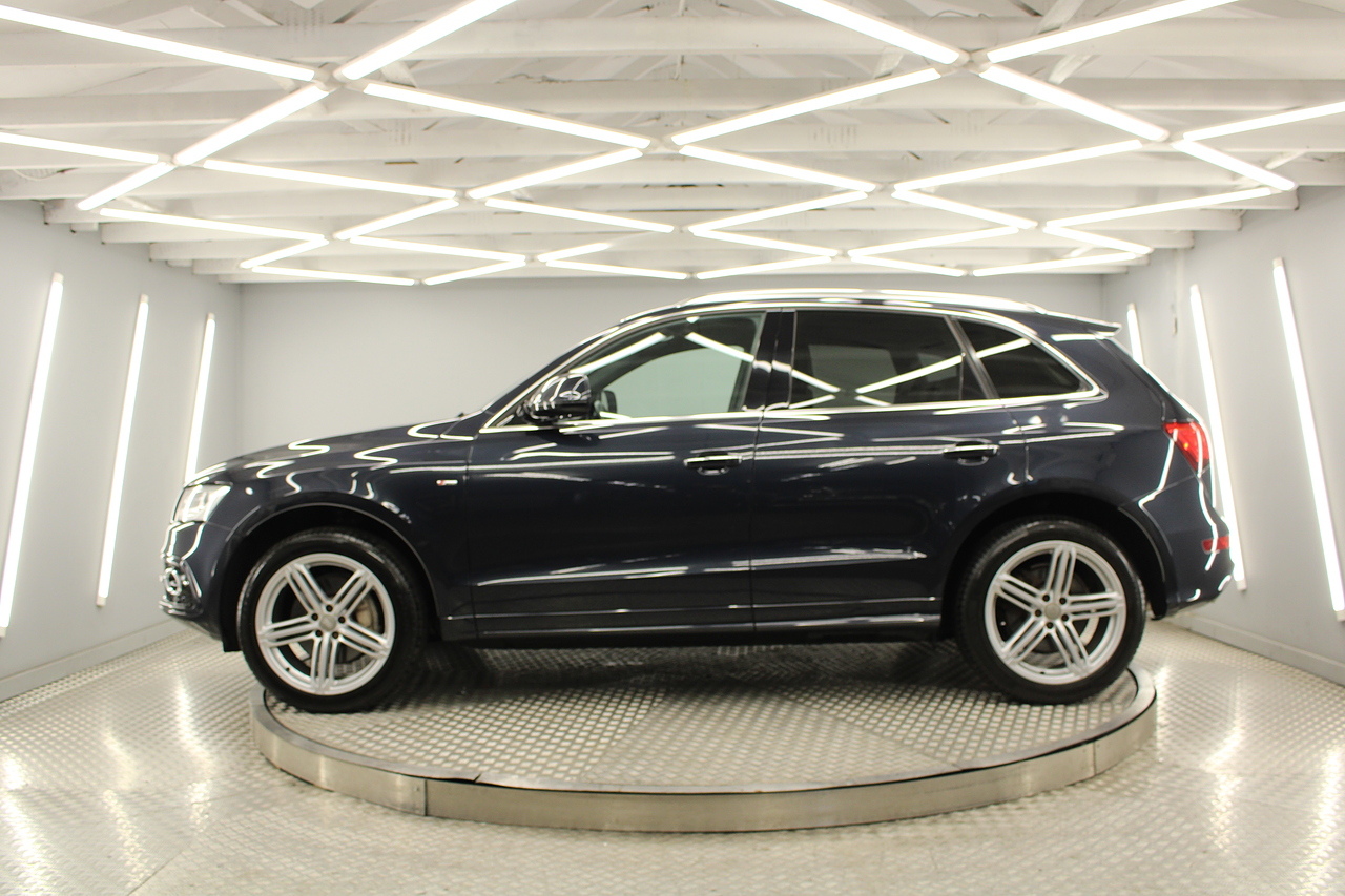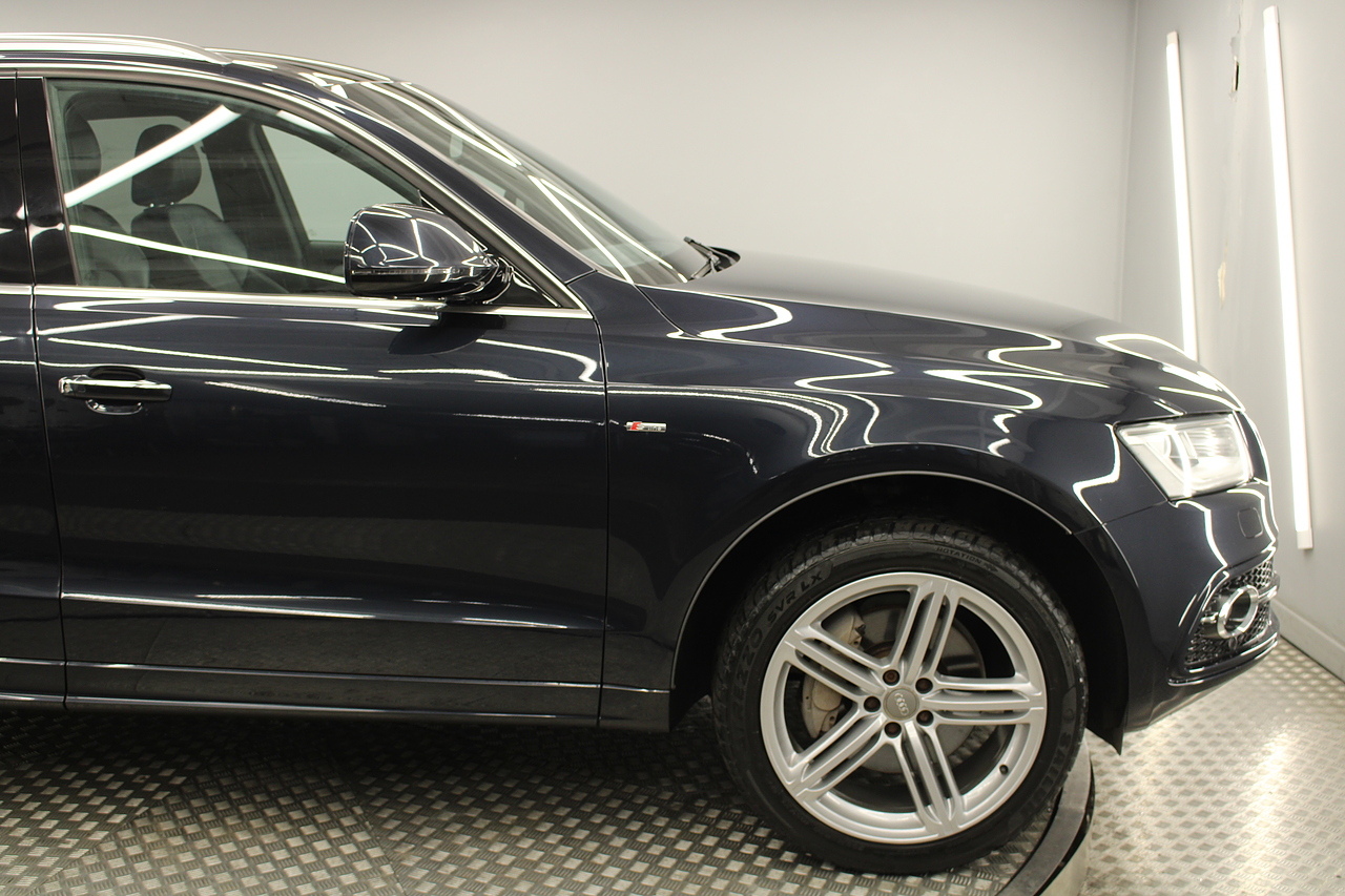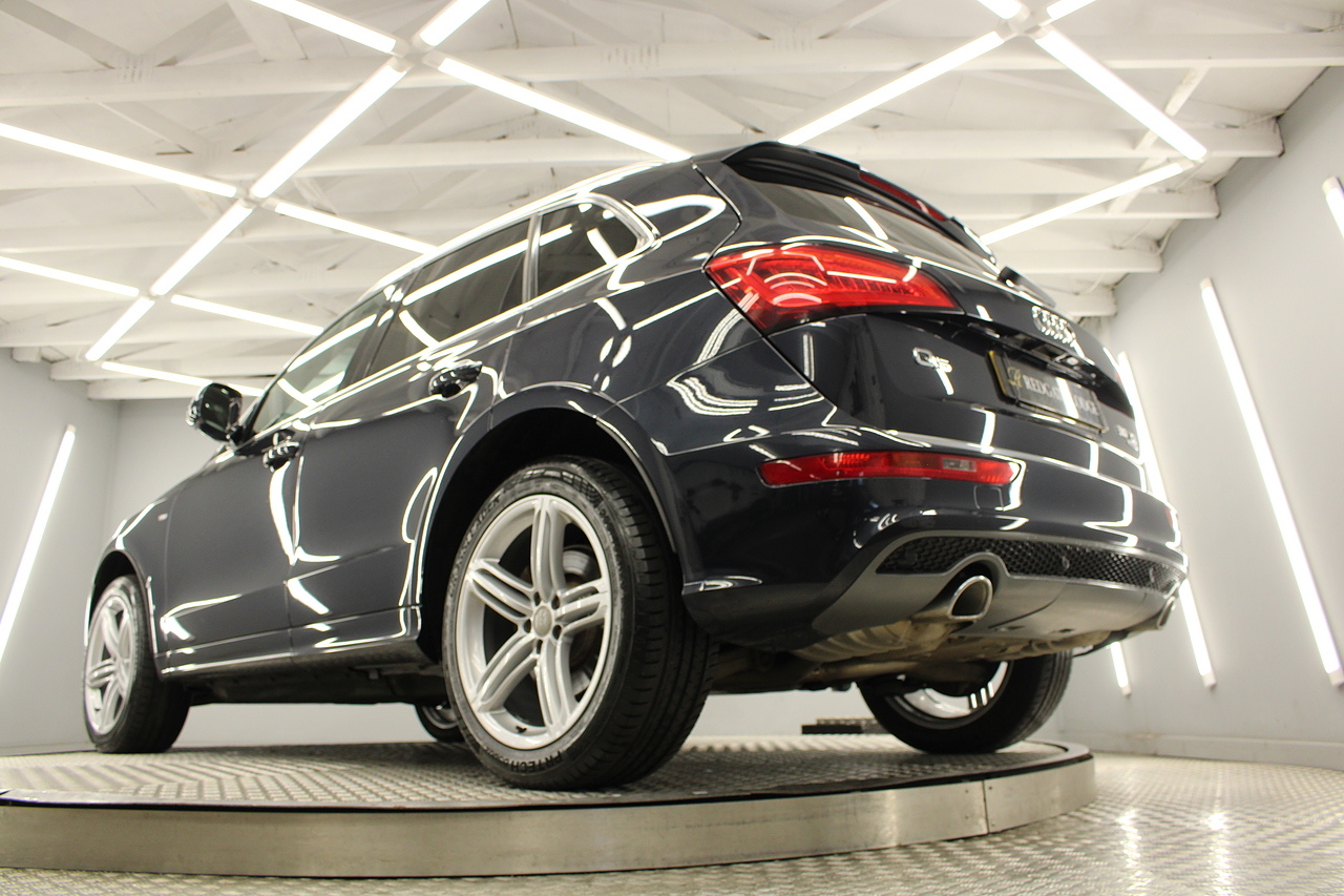 This is our beautiful 2015 Audi Q5 S-Line Plus Quattro, This particular model is the 3.0 V6 TDI which produces impressive power to move this along comfortably with 242 bhp on tap yet still manages an average MPG of 44 for a car of this size and performance is excellent.