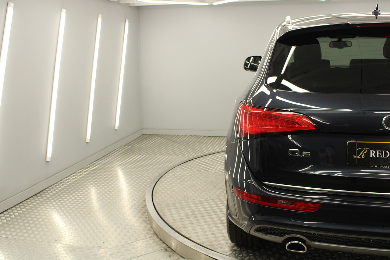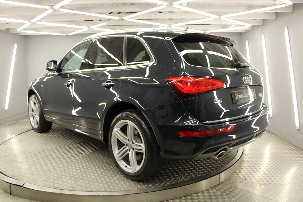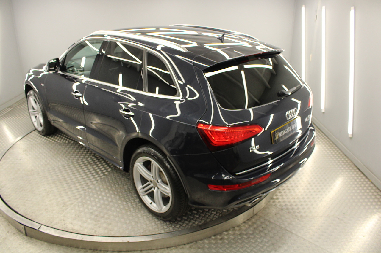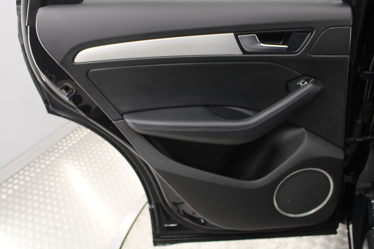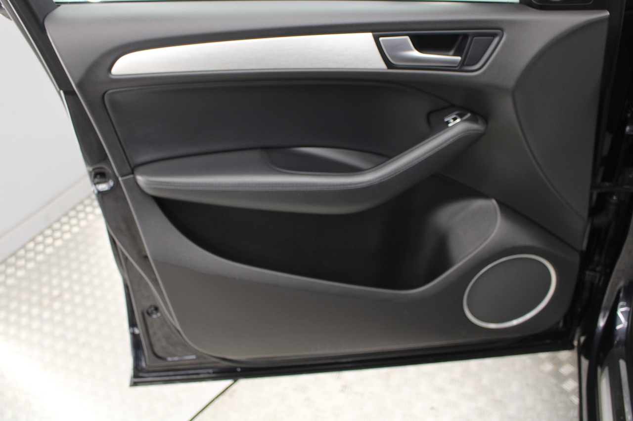 This Q5 does comes trimmed in black leather with heated front seats, dual zone climate control, cruise control, premium bang and olufsen sound system, DAB radio and satellite navigation, Bluetooth connectivity, steering wheel mounted controls, headlight and rain sensors, rear and forward parking aid, power operated tailgate, 12v power adapter and ISOFIX anchorage points.