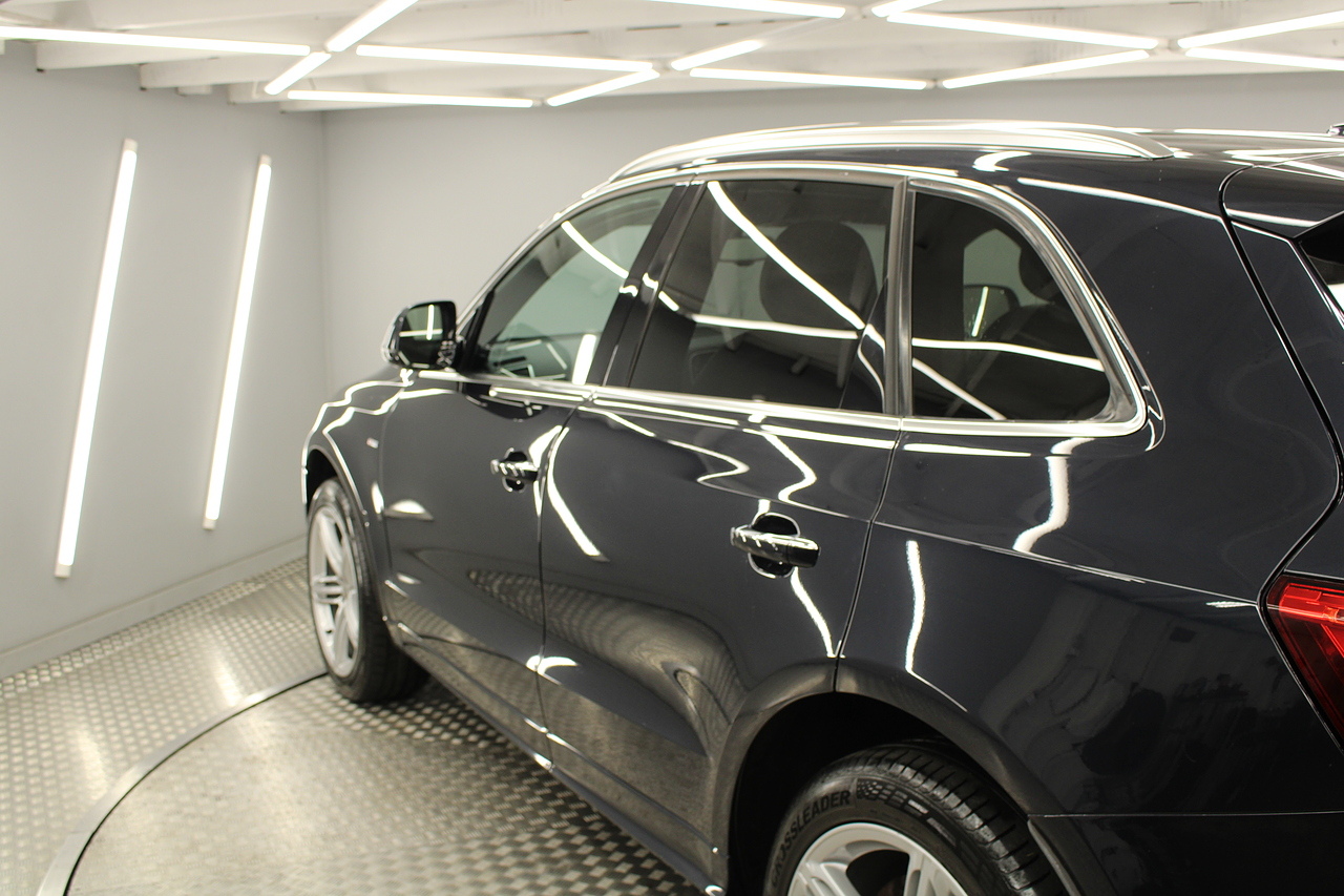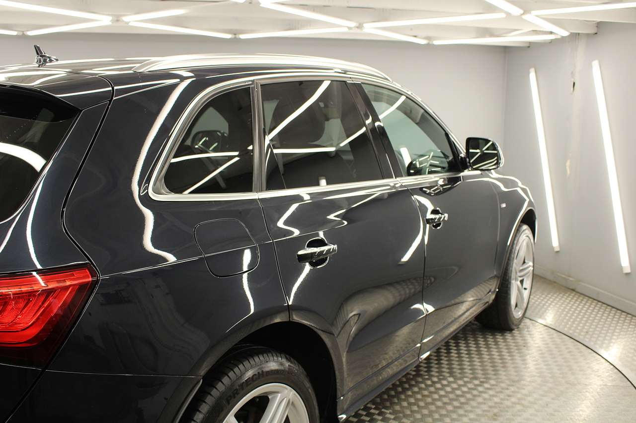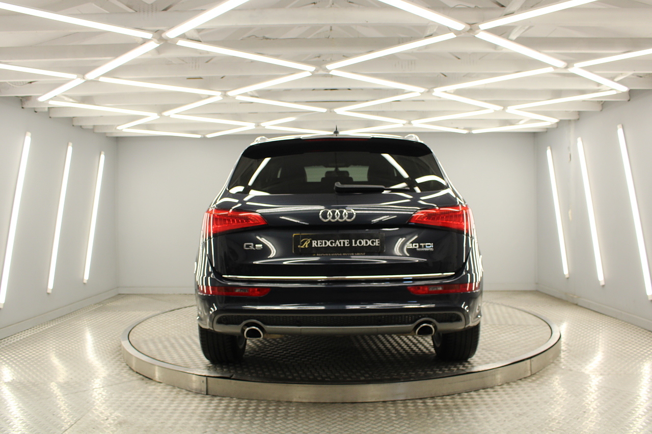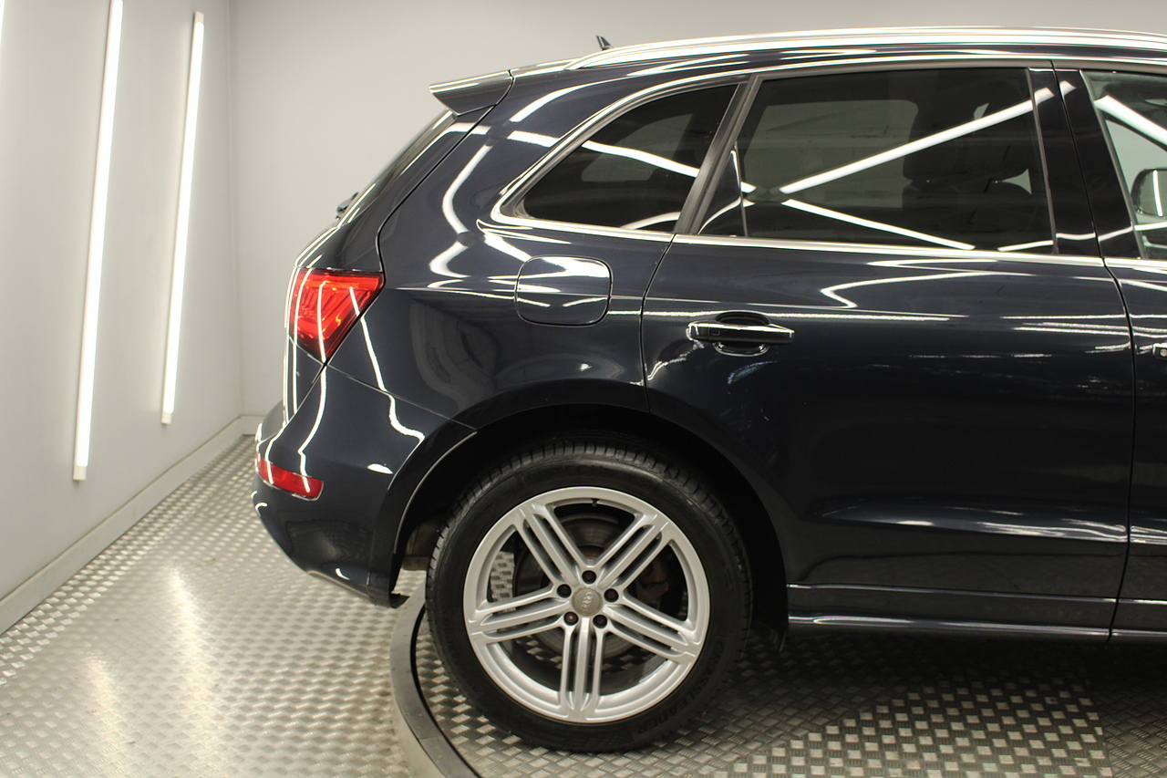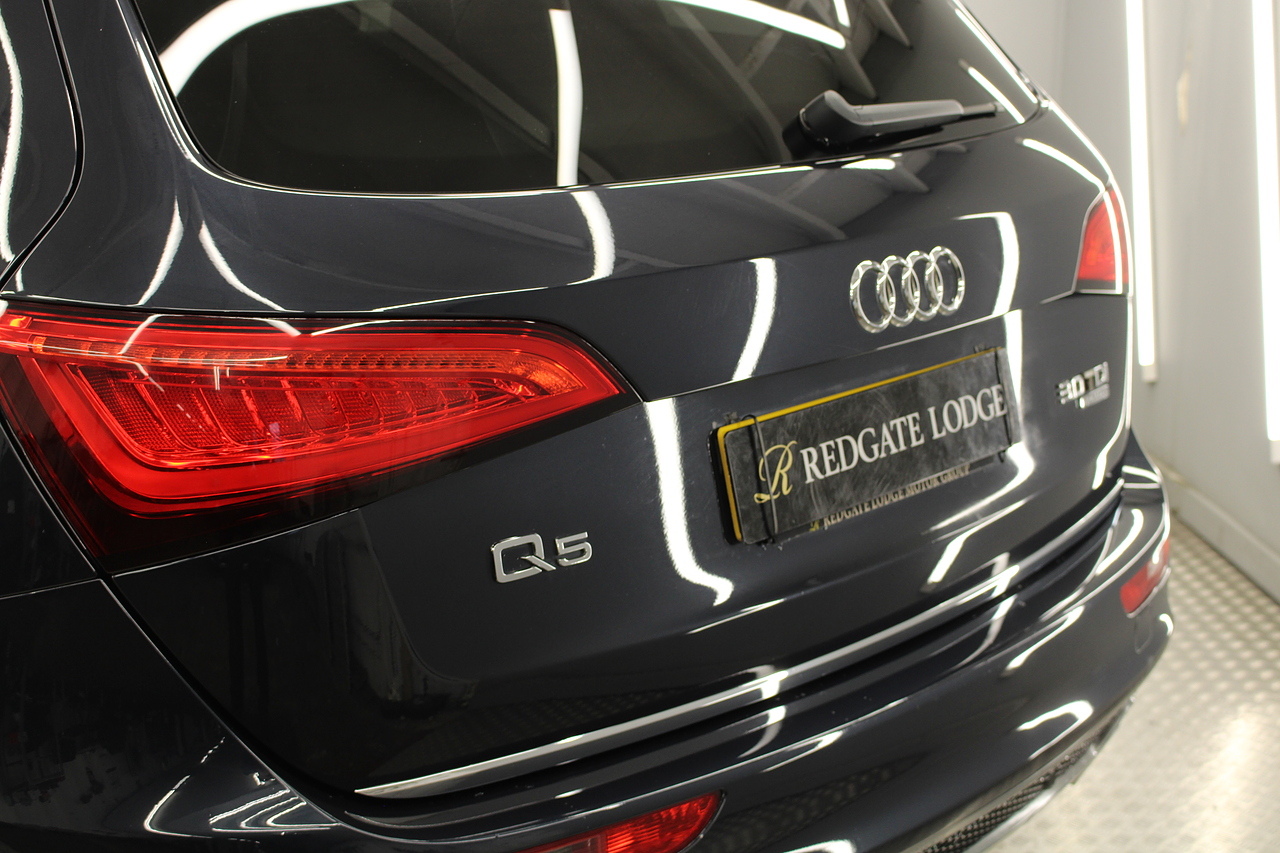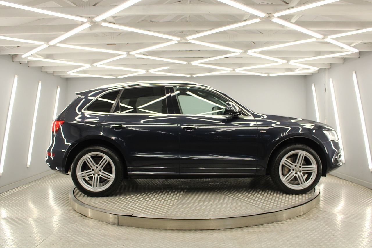 This Q5 does comes trimmed in black leather with heated front seats, dual zone climate control, cruise control, premium bang and olufsen sound system, DAB radio and satellite navigation, Bluetooth connectivity, steering wheel mounted controls, headlight and rain sensors, rear and forward parking aid, power operated tailgate, 12v power adapter and ISOFIX anchorage points.