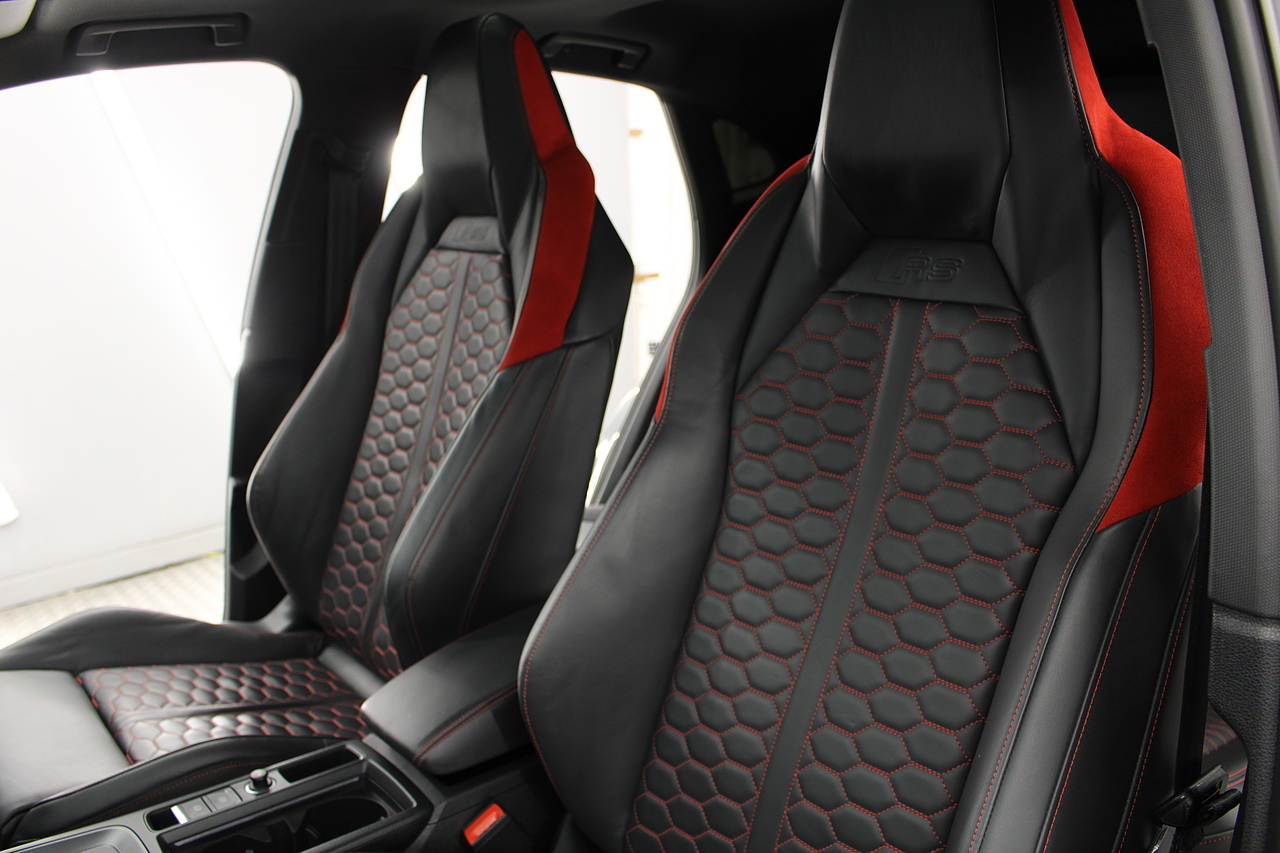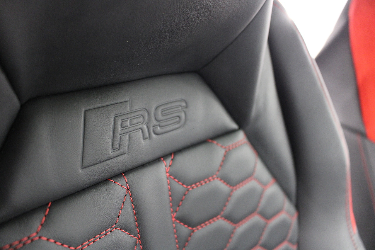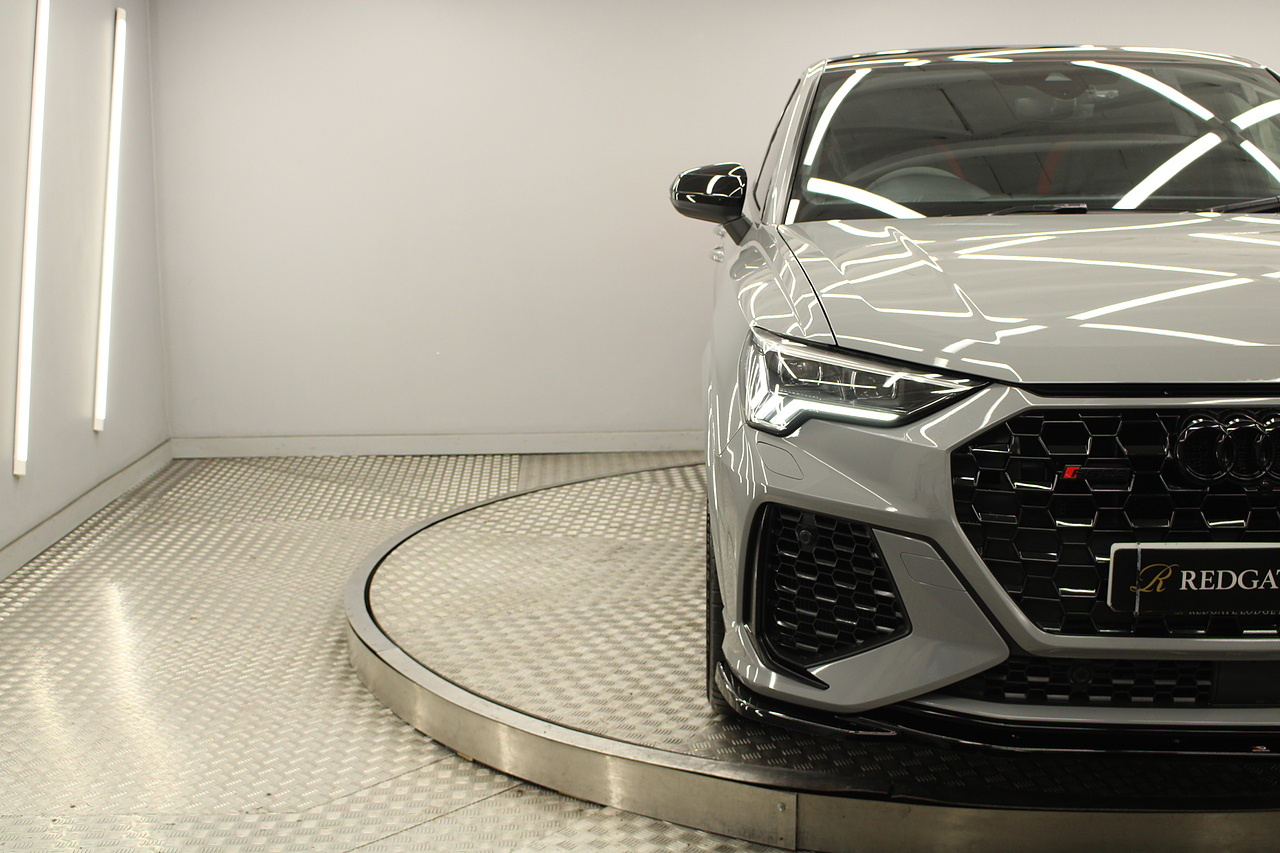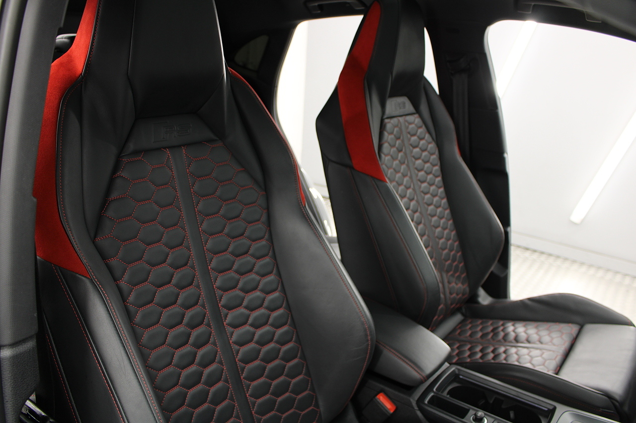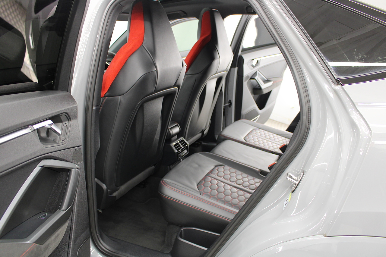 This RS Q3 comes trimmed in the beautiful heated black leather with red honeycomb stitching, further specification includes carbon inlays, alcantara steering wheel, virtual cockpit display, DAB radio with Audi MMI input, Bluetooth connectivity, apple car play, android auto and of course Satellite Navigation, steering wheel mounted controls, dual zone climate control, LED headlights, parking sensors with rear camera, cruise control and ISOFIX anchorage points. This ultimate incarnation of the Audi Q3 it is comfortably the quickest version on sale.