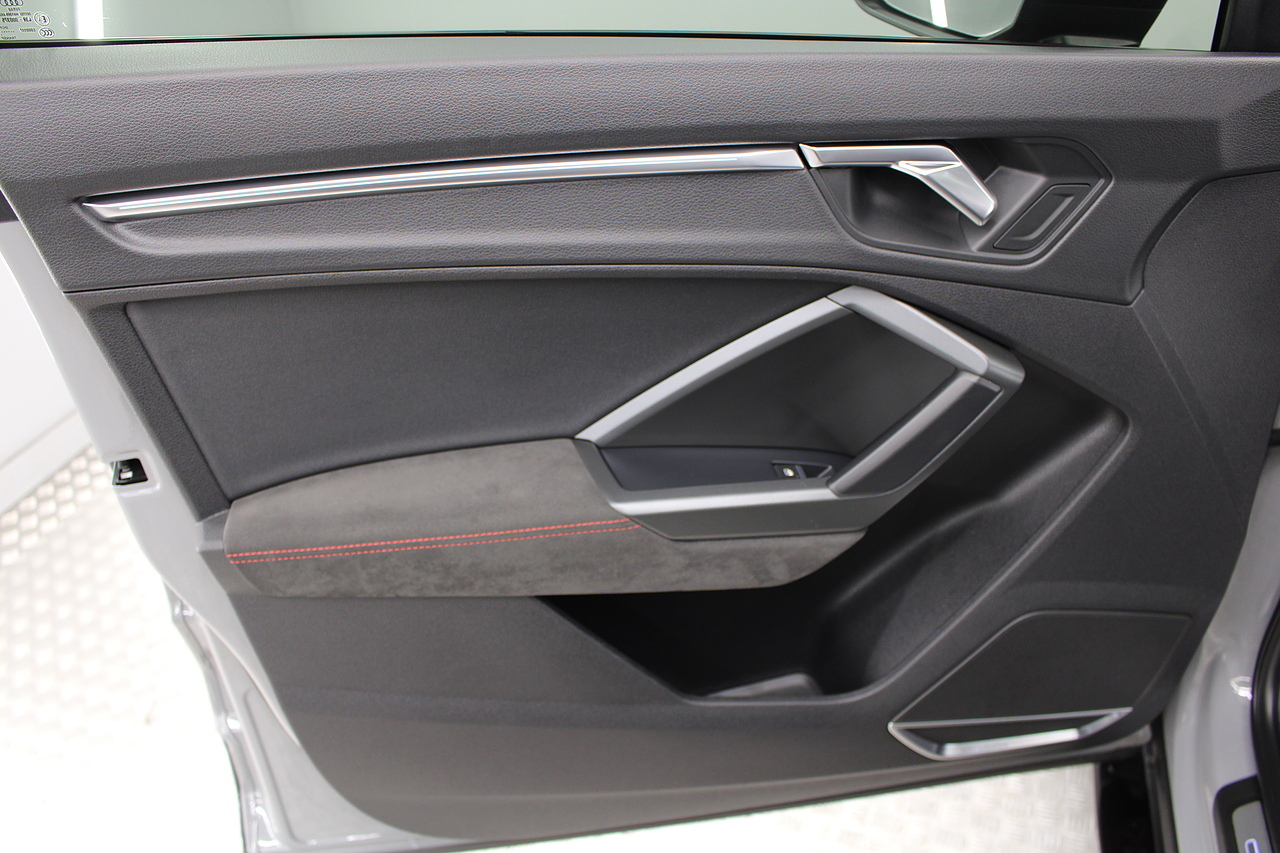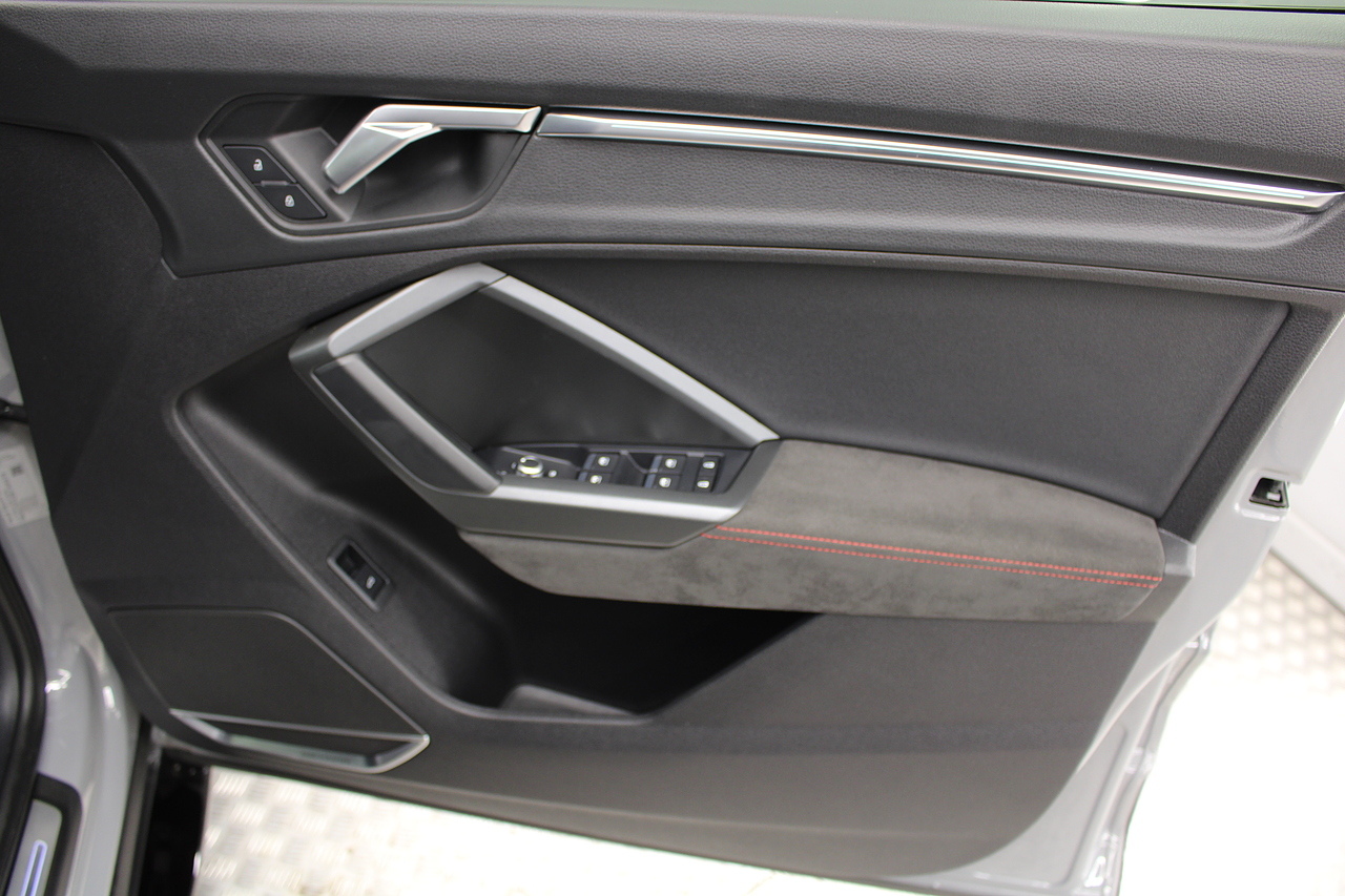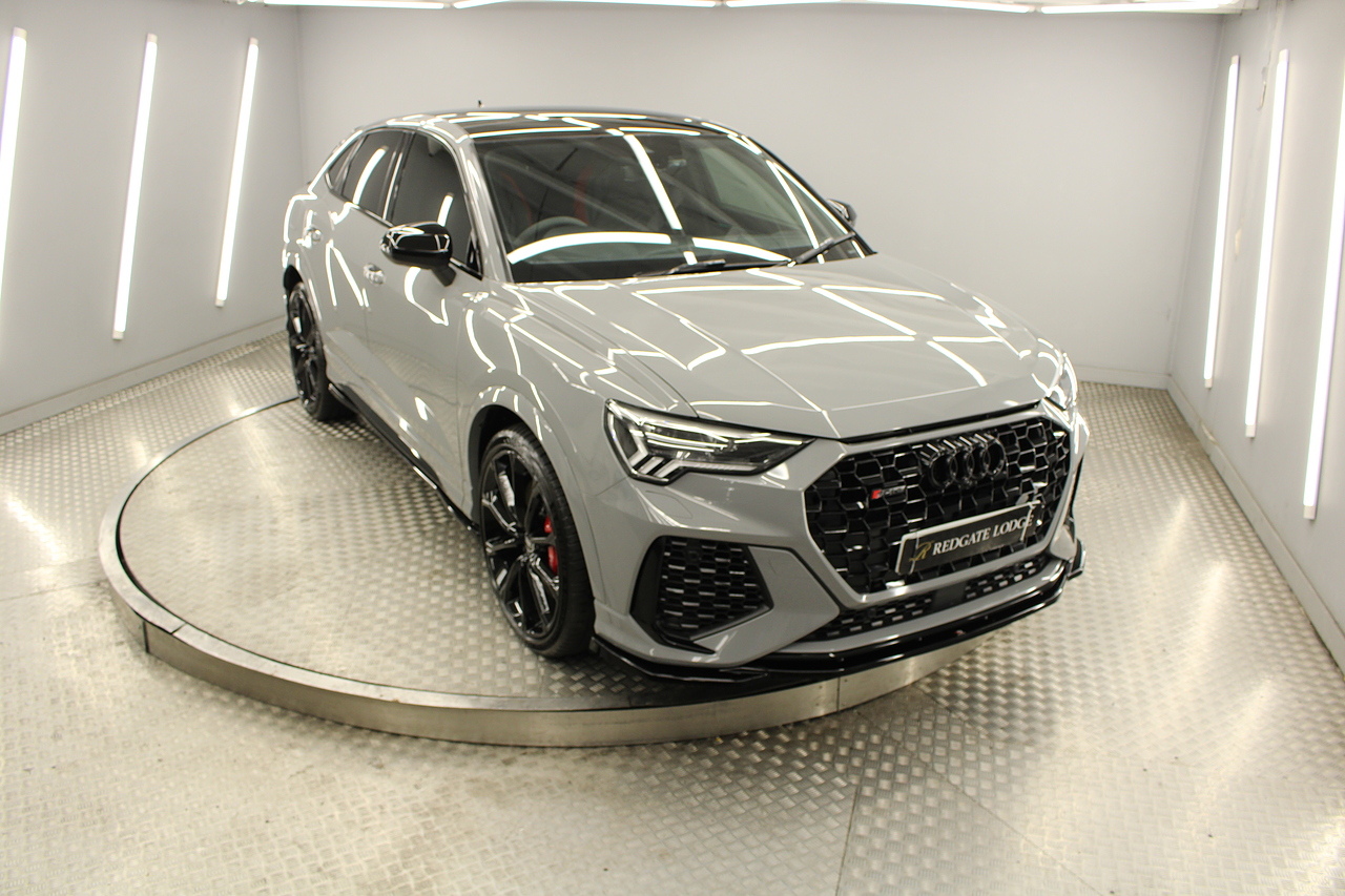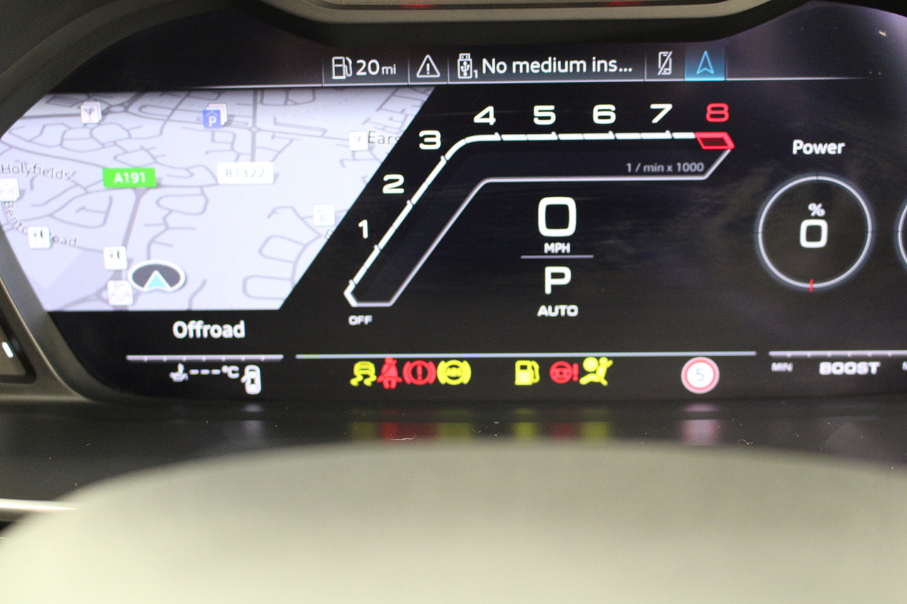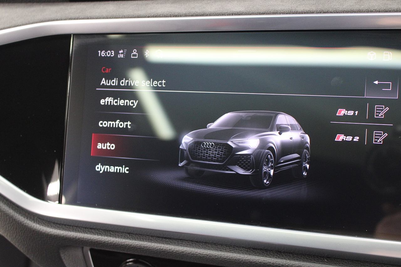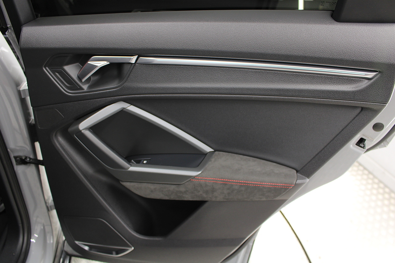 This RS Q3 comes trimmed in the beautiful heated black leather with red honeycomb stitching, further specification includes carbon inlays, alcantara steering wheel, virtual cockpit display, DAB radio with Audi MMI input, Bluetooth connectivity, apple car play, android auto and of course Satellite Navigation, steering wheel mounted controls, dual zone climate control, LED headlights, parking sensors with rear camera, cruise control and ISOFIX anchorage points. This ultimate incarnation of the Audi Q3 it is comfortably the quickest version on sale.