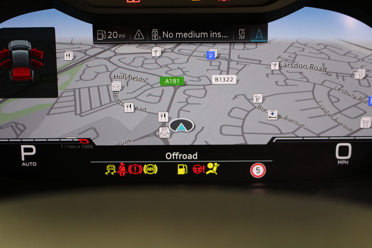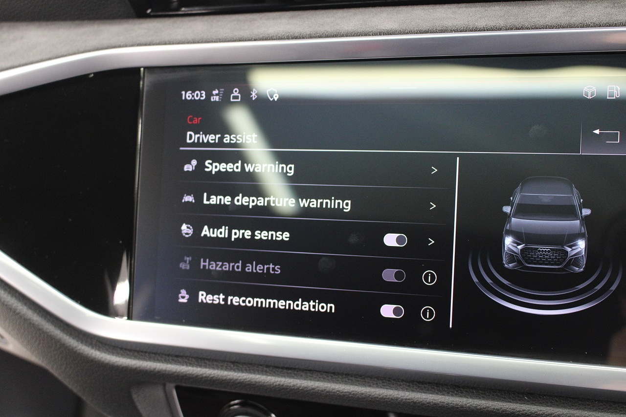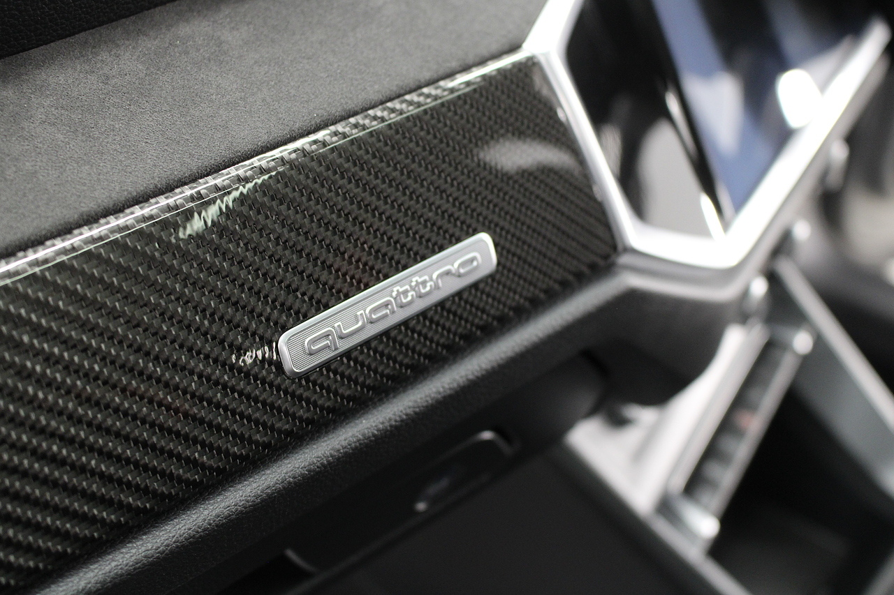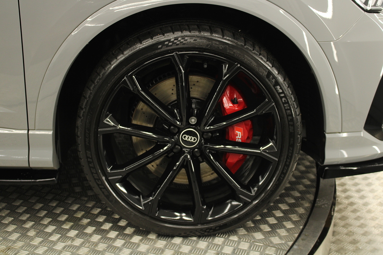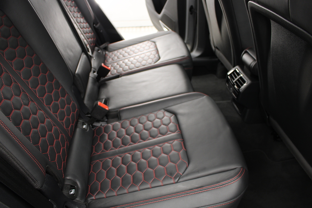 This RS Q3 comes trimmed in the beautiful heated black leather with red honeycomb stitching, further specification includes carbon inlays, alcantara steering wheel, virtual cockpit display, DAB radio with Audi MMI input, Bluetooth connectivity, apple car play, android auto and of course Satellite Navigation, steering wheel mounted controls, dual zone climate control, LED headlights, parking sensors with rear camera, cruise control and ISOFIX anchorage points. This ultimate incarnation of the Audi Q3 it is comfortably the quickest version on sale.