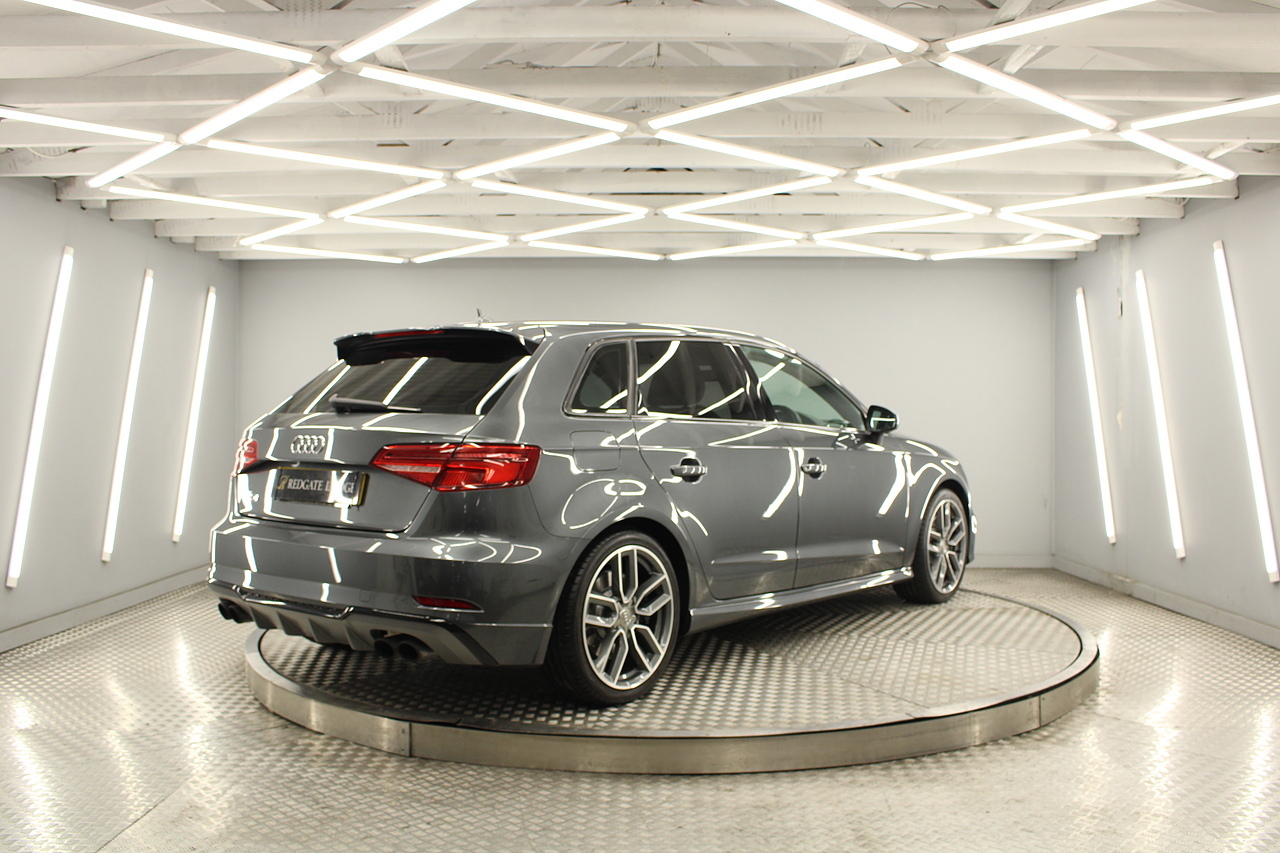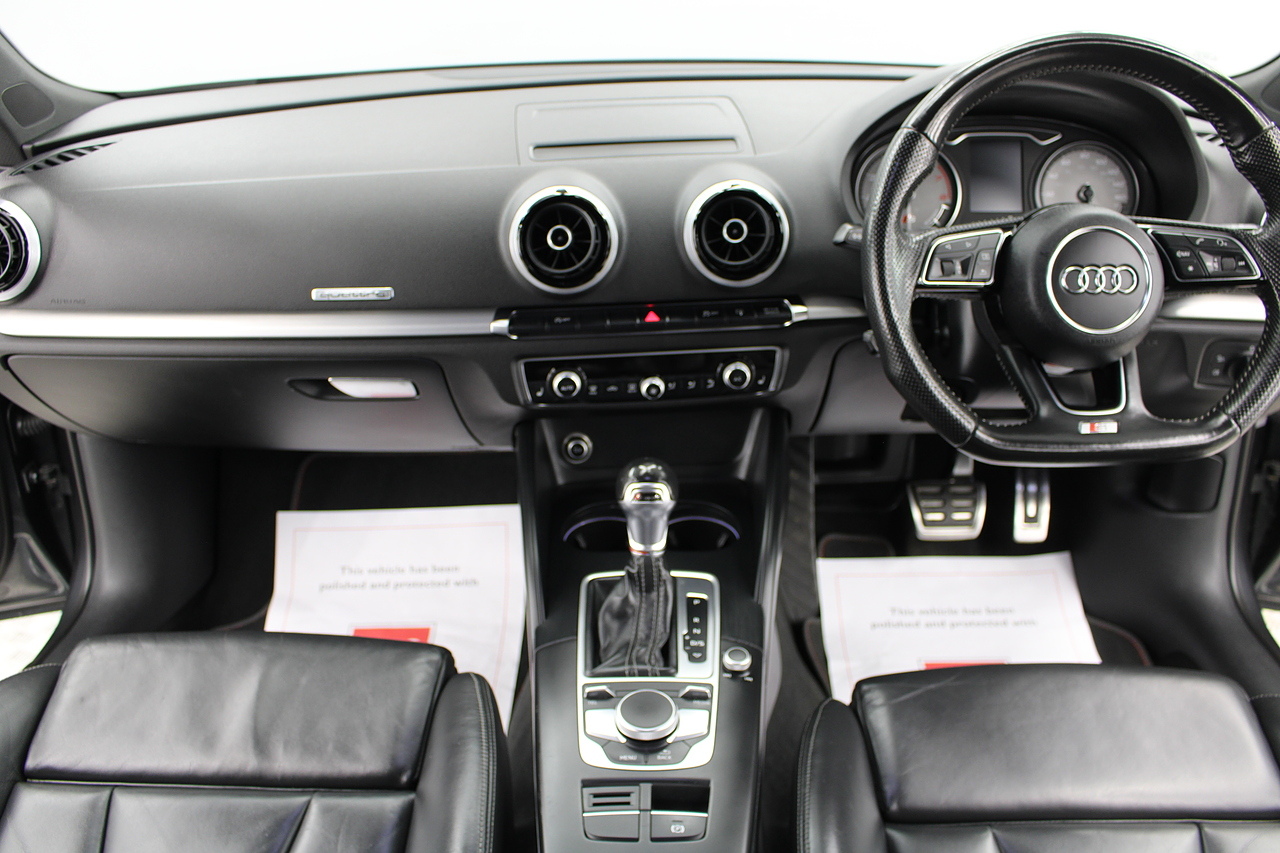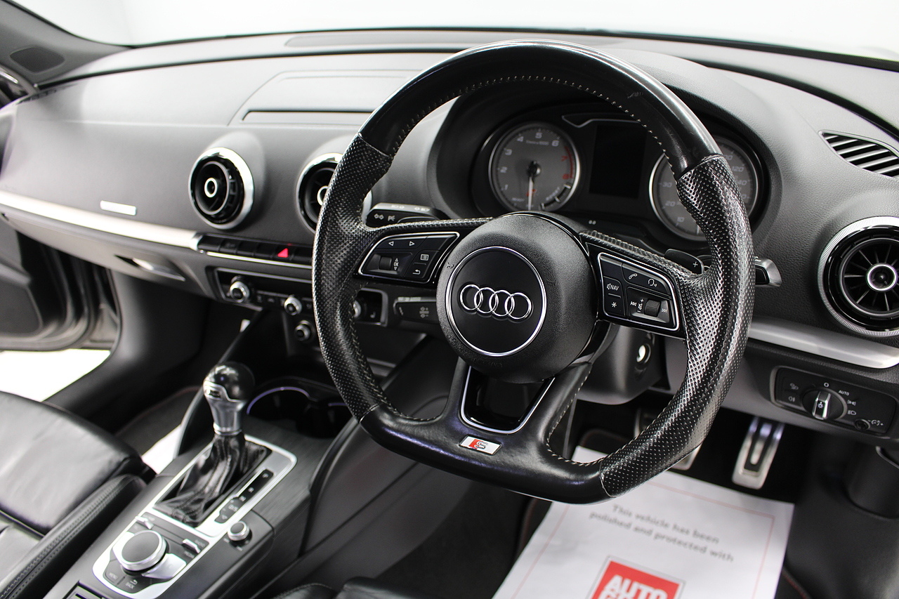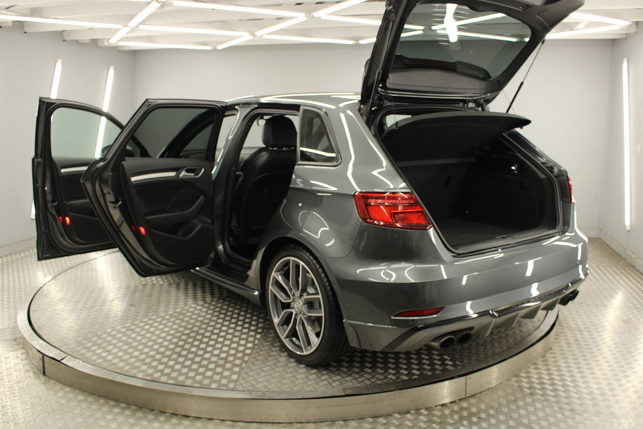 This S3 comes trimmed in the beautiful black leather, further specification includes heated seats, aluminium inlays, virtual cockpit display, bang and olufsen sound system, dual zone climate control, LED headlights, parking sensors with rear camera, DAB radio with Audi MMI input and of course Satellite Navigation, steering wheel mounted controls, Bluetooth connectivity and ISOFIX anchorage points. The ultimate incarnation of the Audi A3 might not have the biggest engine or access to hi-tech transmissions, but it is comfortably the quickest version on sale. The original Audi S3 had a strong following in the UK and this model should keep fans happy. The four-cylinder turbocharged engine, slick-shifting gearbox and quattro four-wheel drive ensure swift and efficient progress.