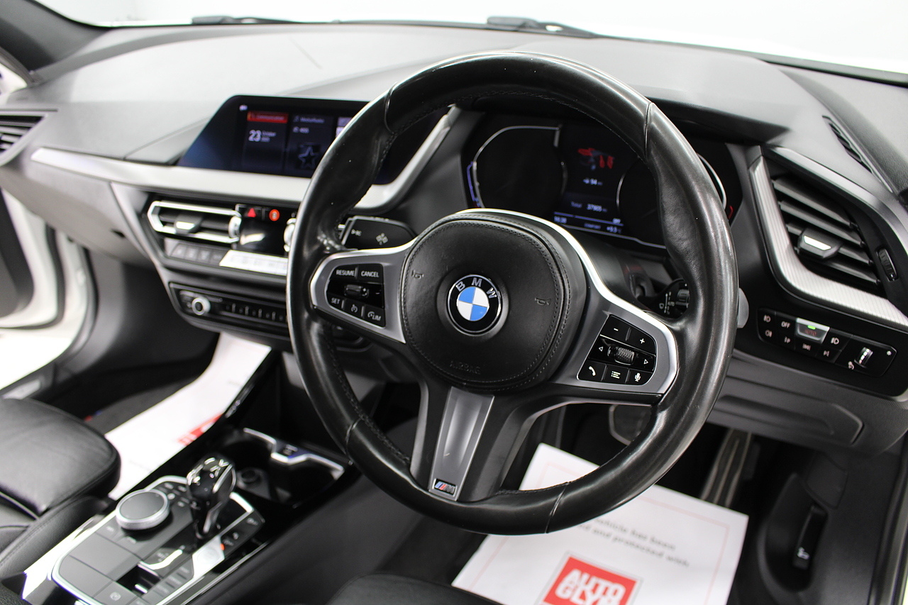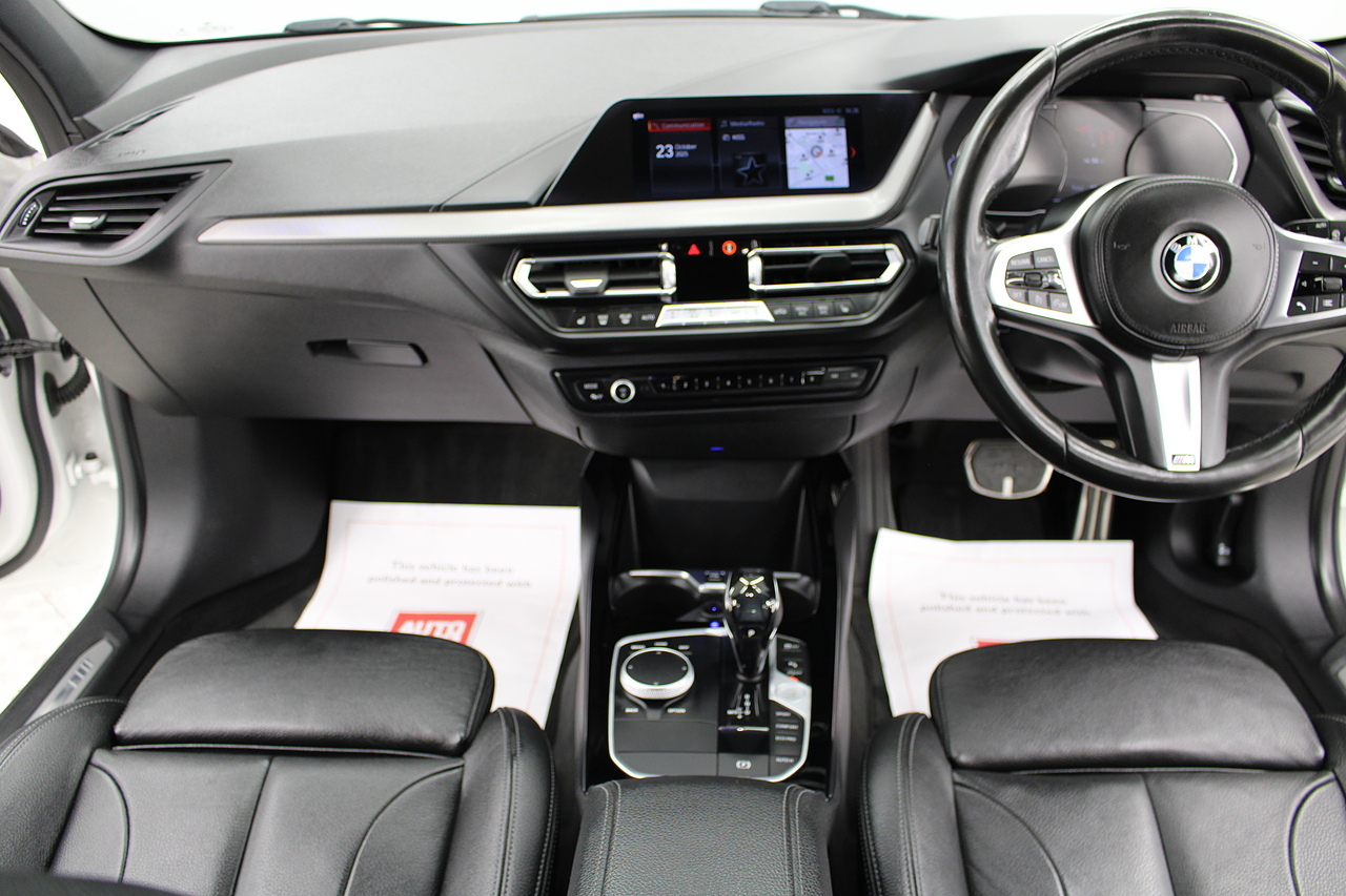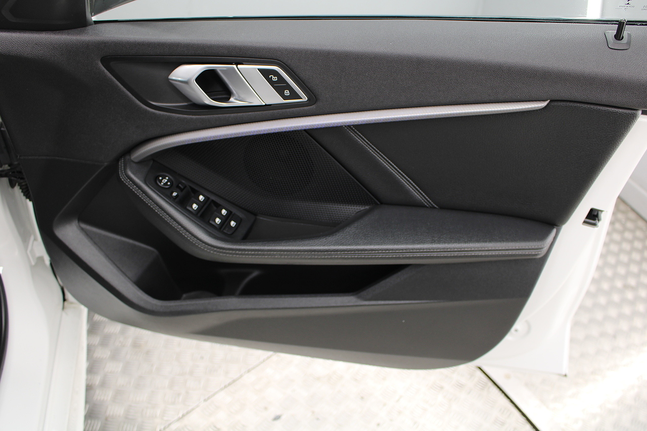 On to the interior, trimmed in black leather. In addition, levels of spec aren't neglected here, DAB radio with Bluetooth connectivity, satellite navigation, parking sensors with both front and rear information, ambient lighting, automatic headlights with LED Adaptive lights and high beam assist, automatic window wipers, cruise control with speed limiter and driver performance control! The 118i is finished with the automatic gearbox, which delivers outstanding performance, even in city driving too!