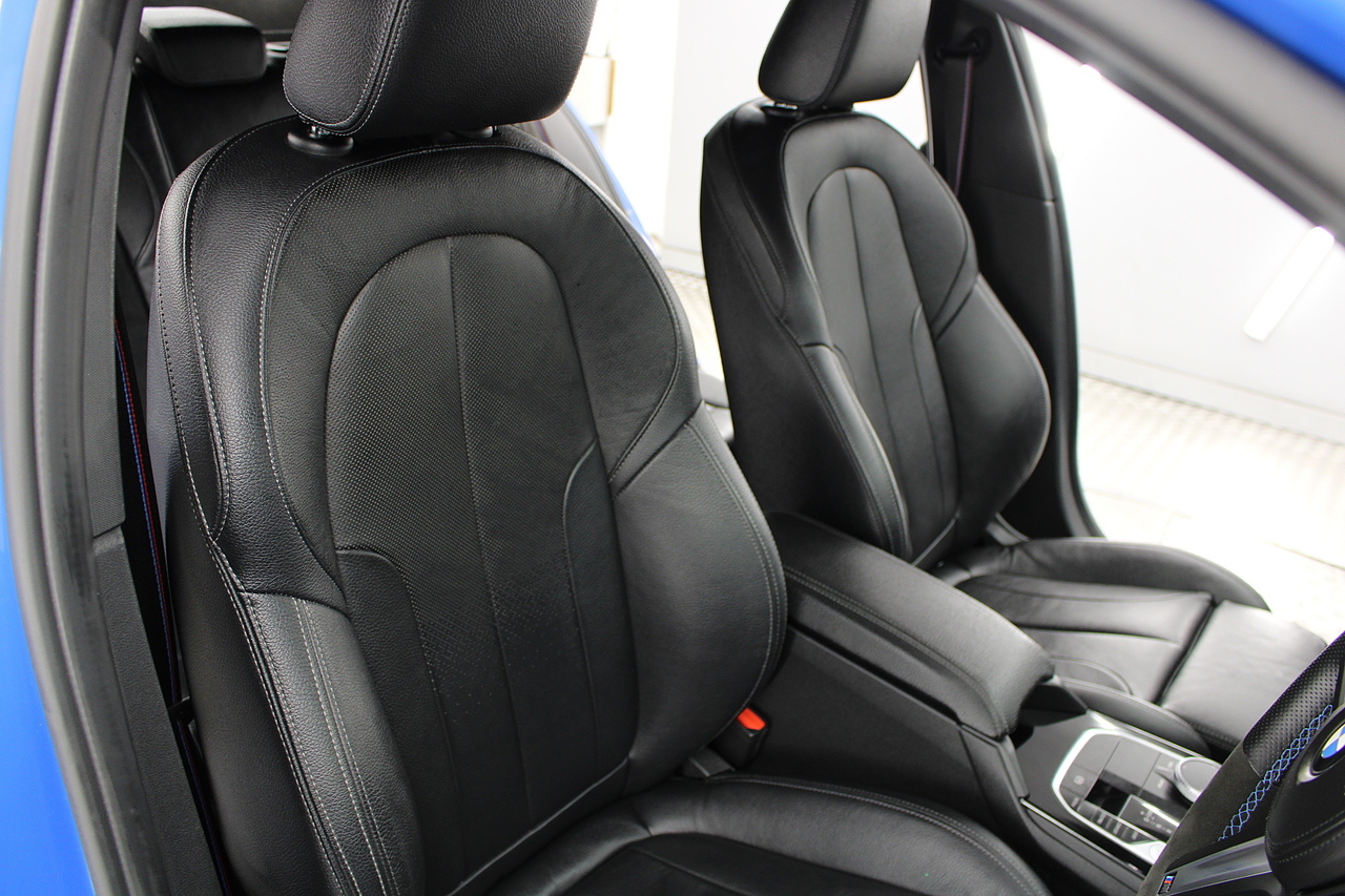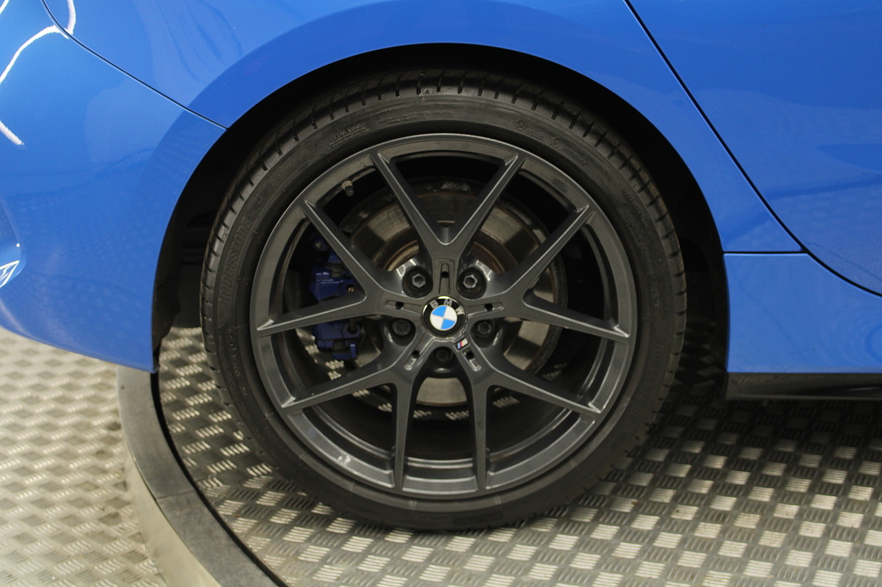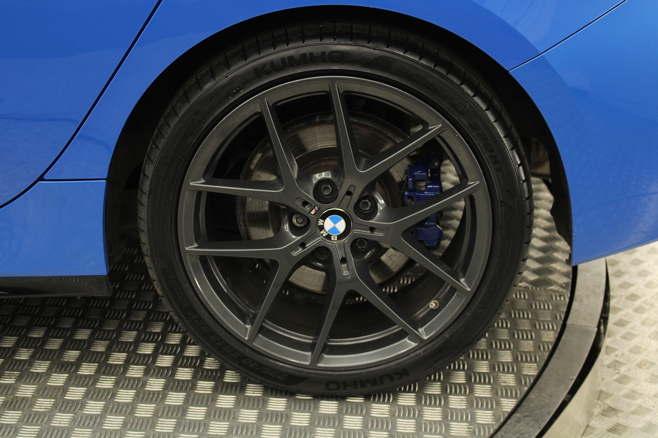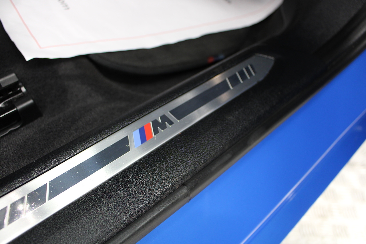 The exterior, finished in Misano Blue and coupled with 18'' M-Sport wheels with the M-sport Blue brake calipers behind, equipped with the M-Sport aerodynamic package and gloss black styling additions which really set the car off.