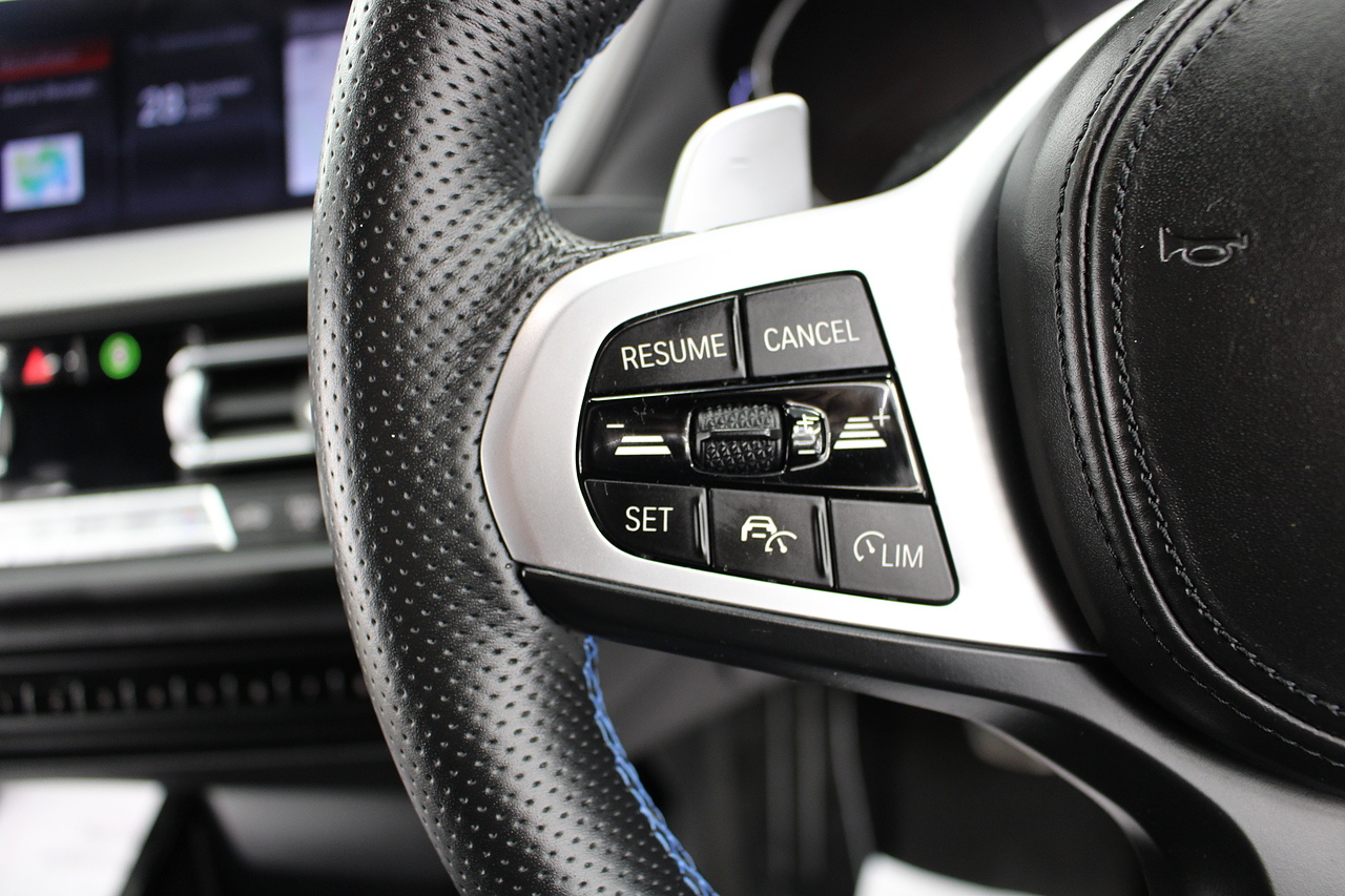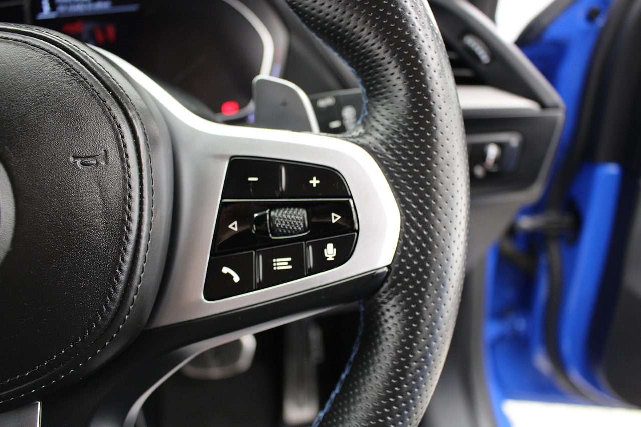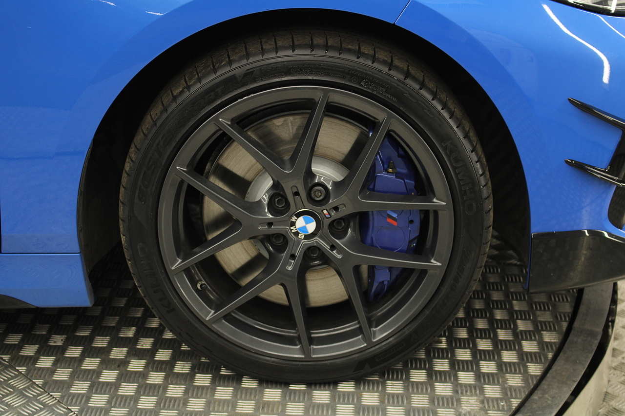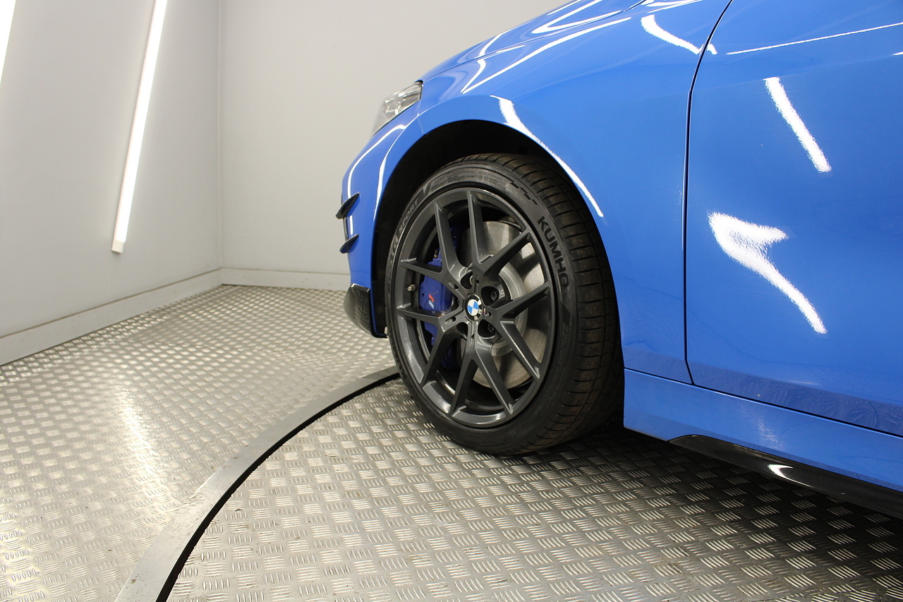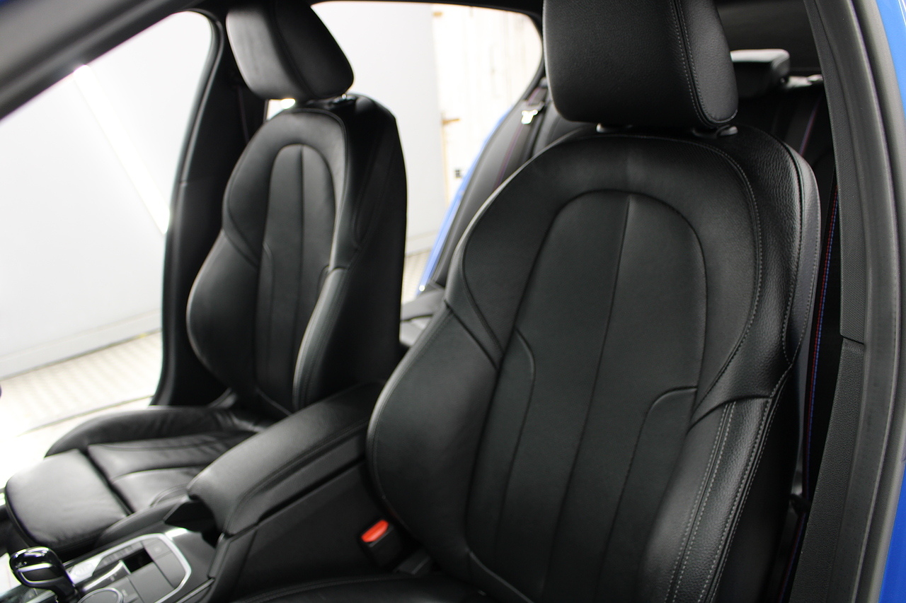 The exterior, finished in Misano Blue and coupled with 18'' M-Sport wheels with the M-sport Blue brake calipers behind, equipped with the M-Sport aerodynamic package and gloss black styling additions which really set the car off.