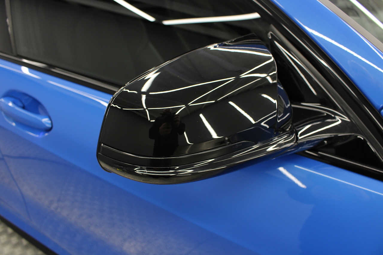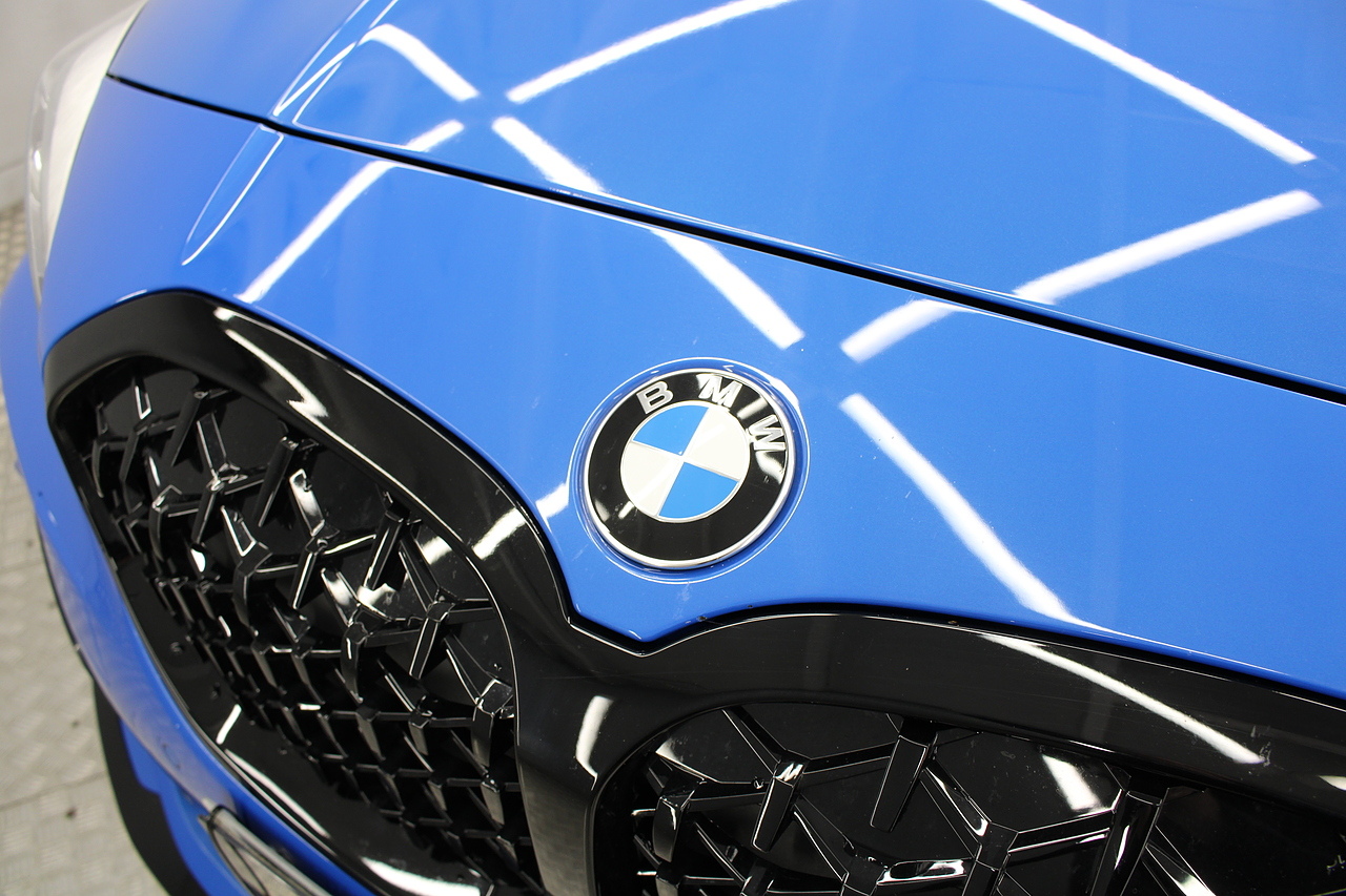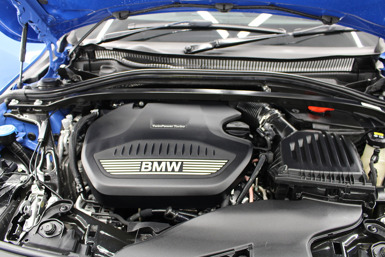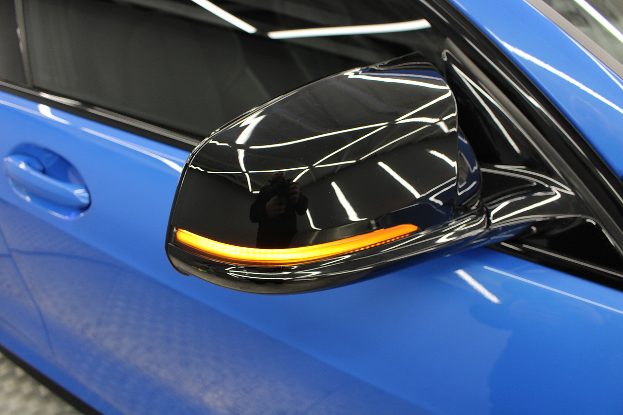 The exterior, finished in Misano Blue and coupled with 18'' M-Sport wheels with the M-sport Blue brake calipers behind, equipped with the M-Sport aerodynamic package and gloss black styling additions which really set the car off.