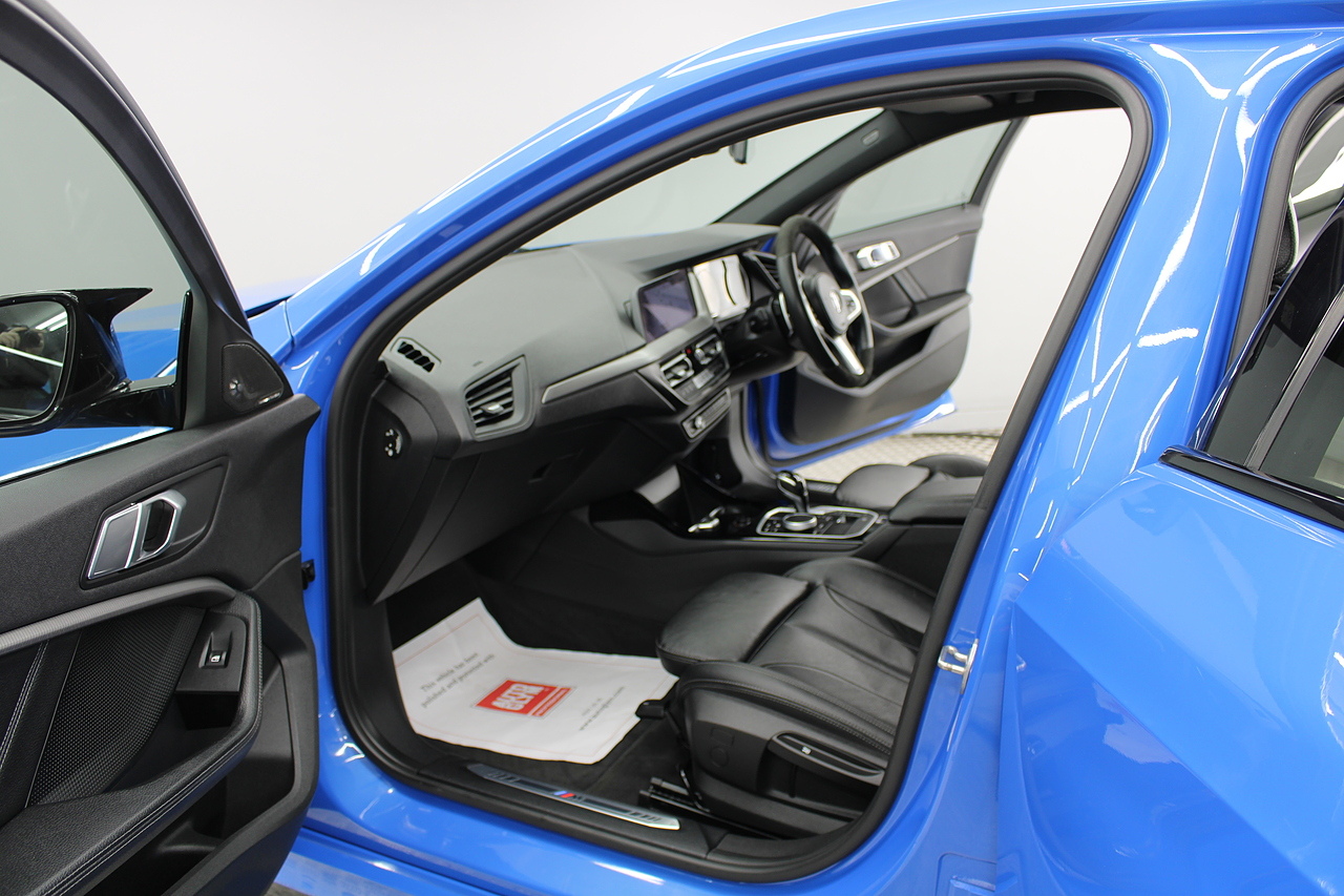 On to the interior, trimmed in black leather with heated option at the front. In addition, levels of spec aren't neglected here, DAB radio with Bluetooth connectivity, satellite navigation, parking sensors with rear facing parking camera, ambient lighting, automatic headlights and window wipers, cruise control with speed limiter and driver performance control! The 120d is finished with the 8 speed gearbox, which delivers outstanding performance, even in city driving too!