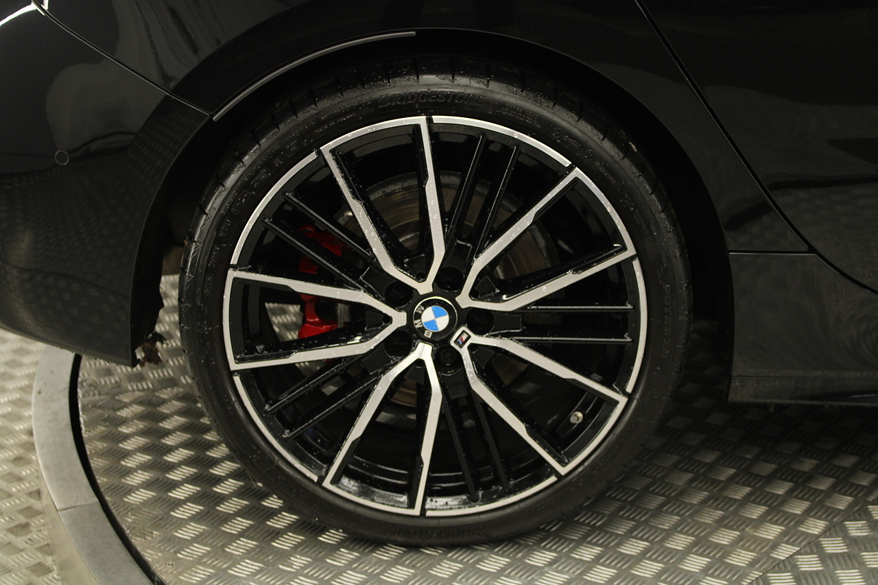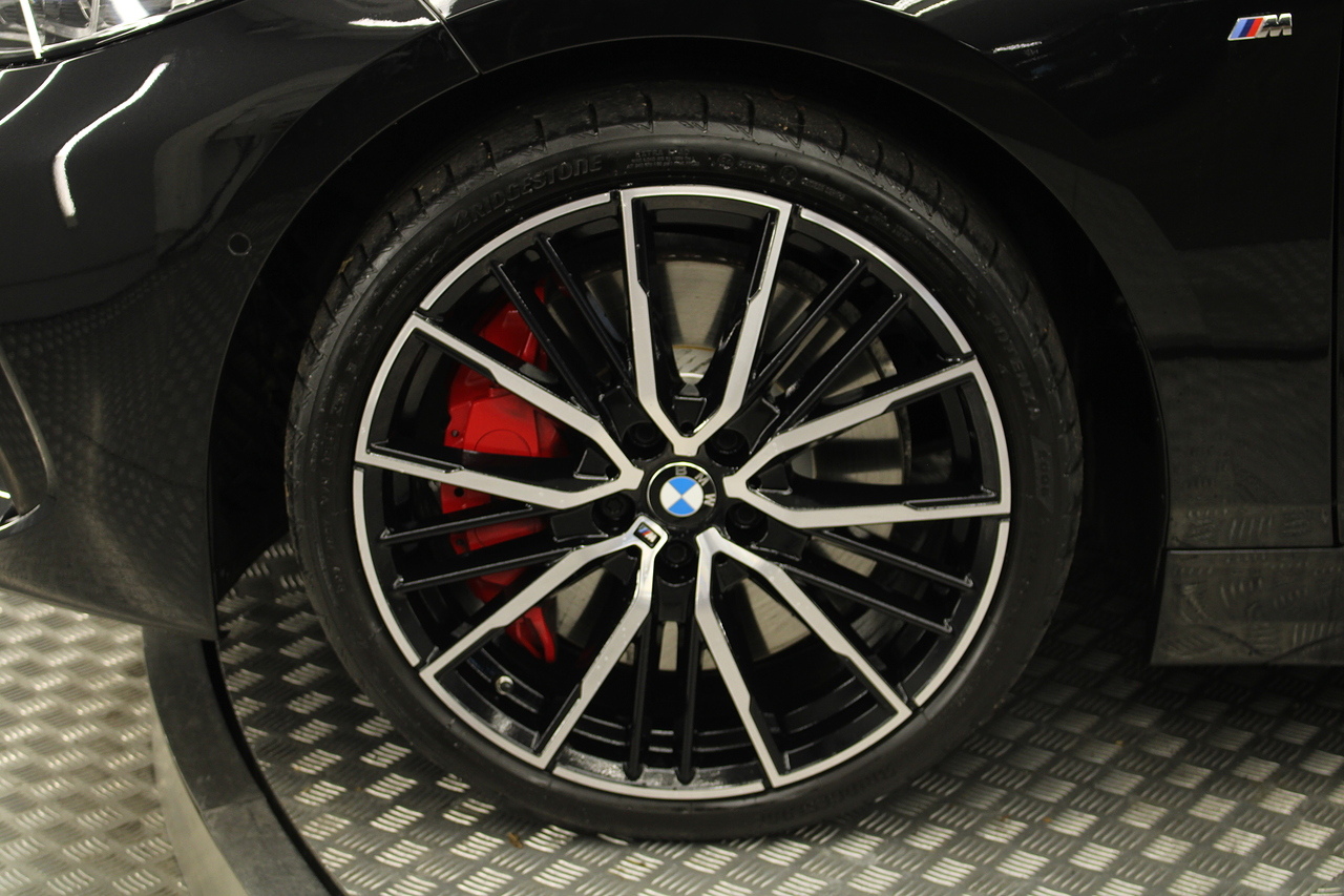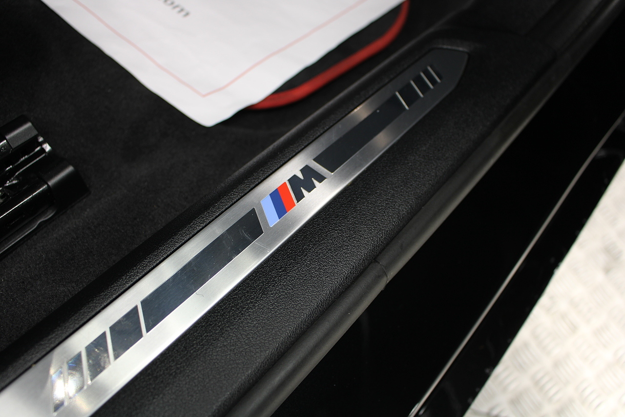 The exterior, finished in black sapphire, with diamond cut m-sport v-spoke alloy wheels with the M-sport brake calipers behind, equipped with the M-Sport aerodynamic package and the rear privacy glass really set the car off.