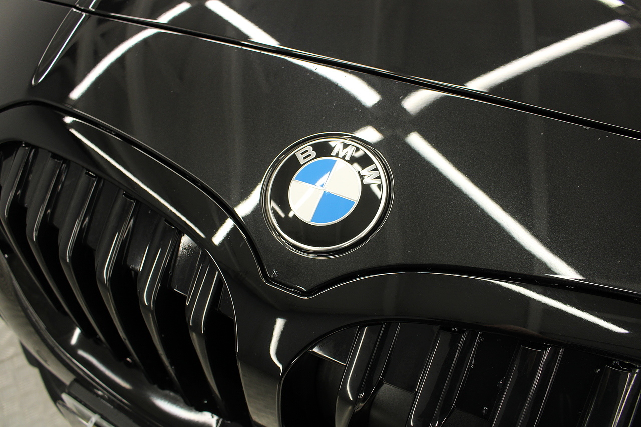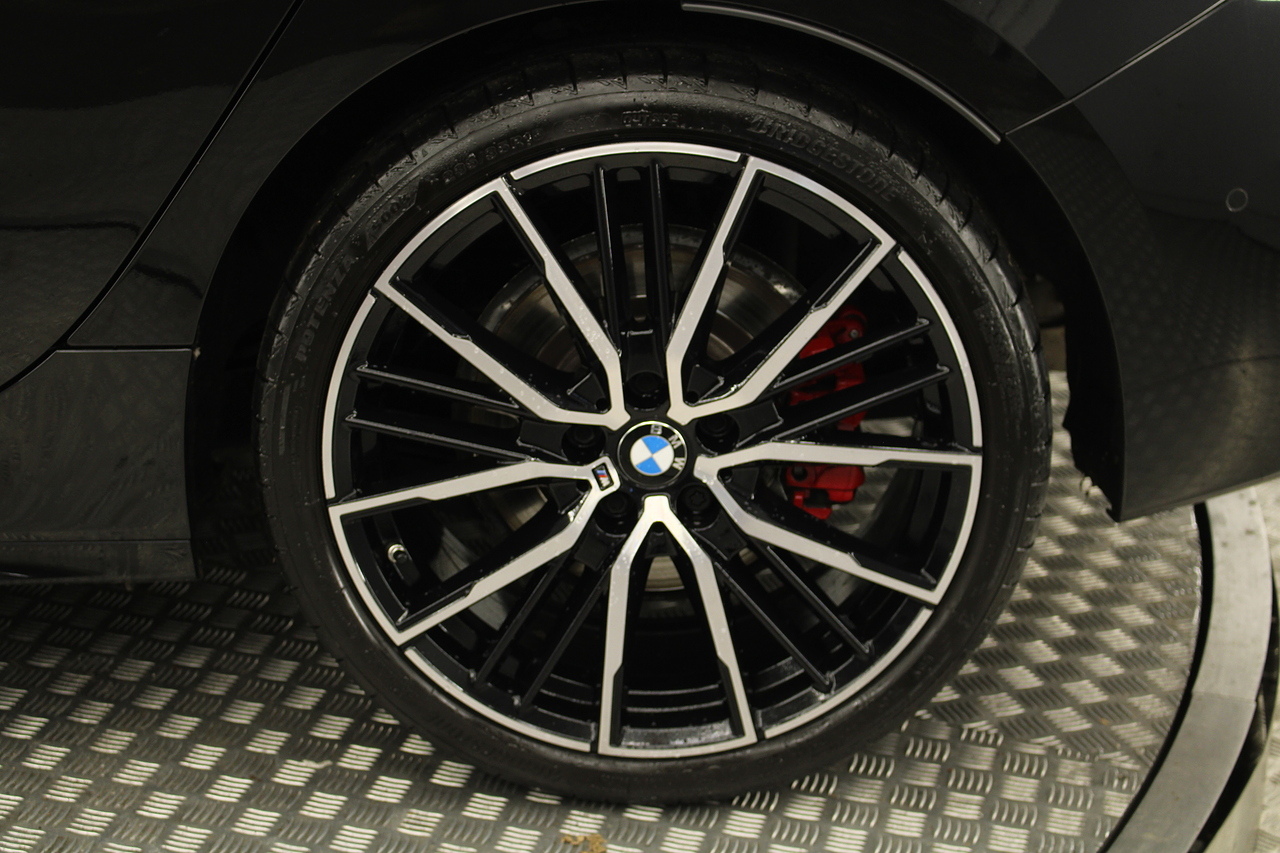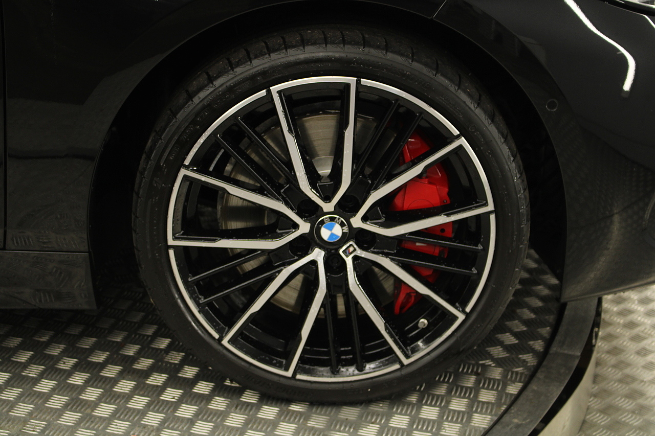 The exterior, finished in black sapphire, with diamond cut m-sport v-spoke alloy wheels with the M-sport brake calipers behind, equipped with the M-Sport aerodynamic package and the rear privacy glass really set the car off.