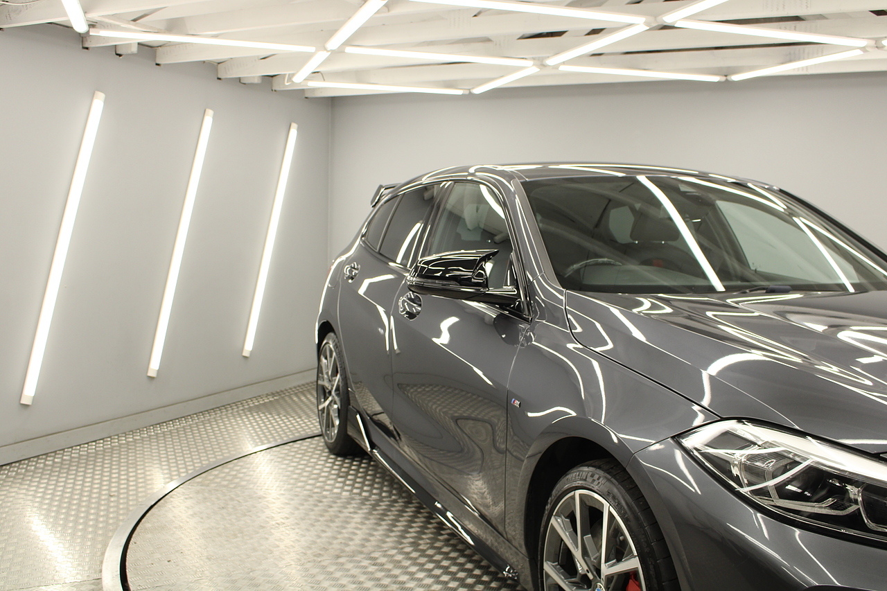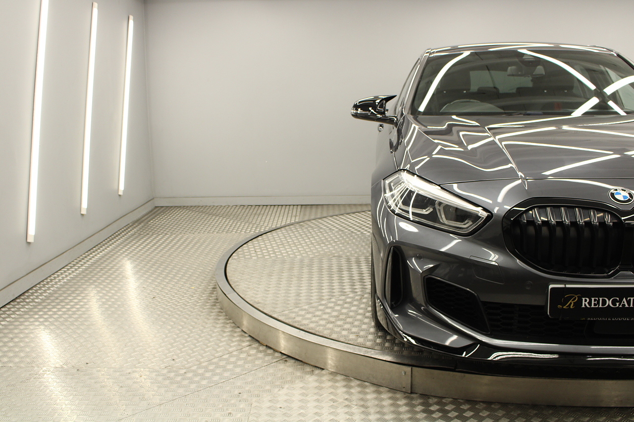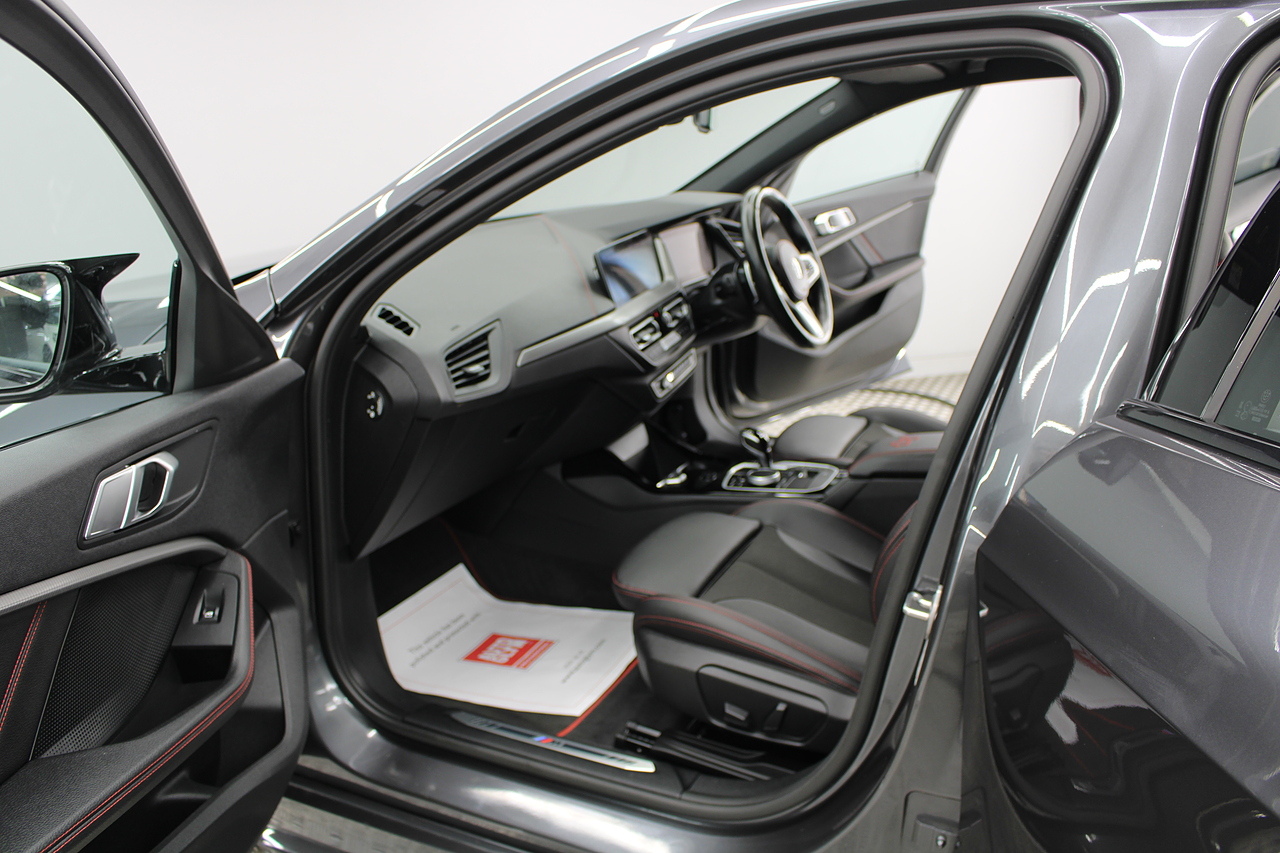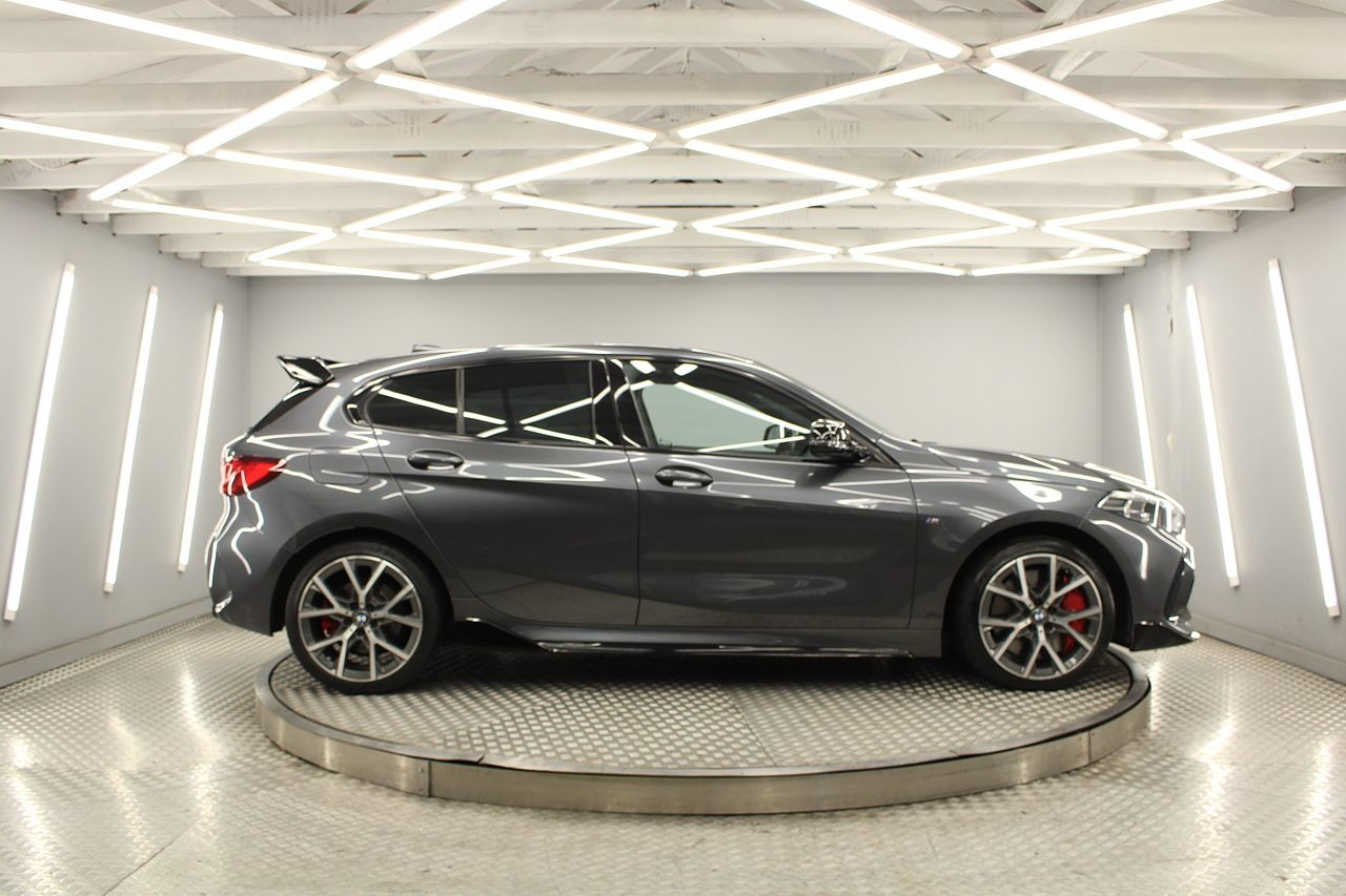 This is our stunning 2021 BMW 128ti, BMW's first front wheel drive hot hatch. Equipped with the 2.0 litre 261 bhp engine. This hot hatch really ticks all the boxes. With awesome performance to match the stunning looks, Equipped with a limited slip differential, lower slightly stiffer suspension and lighter weight than the M135i makes this a rival for the Golf GTI. With 0-60 in 6.1 and top speed limited to 155 mph it certainly packs a punch.