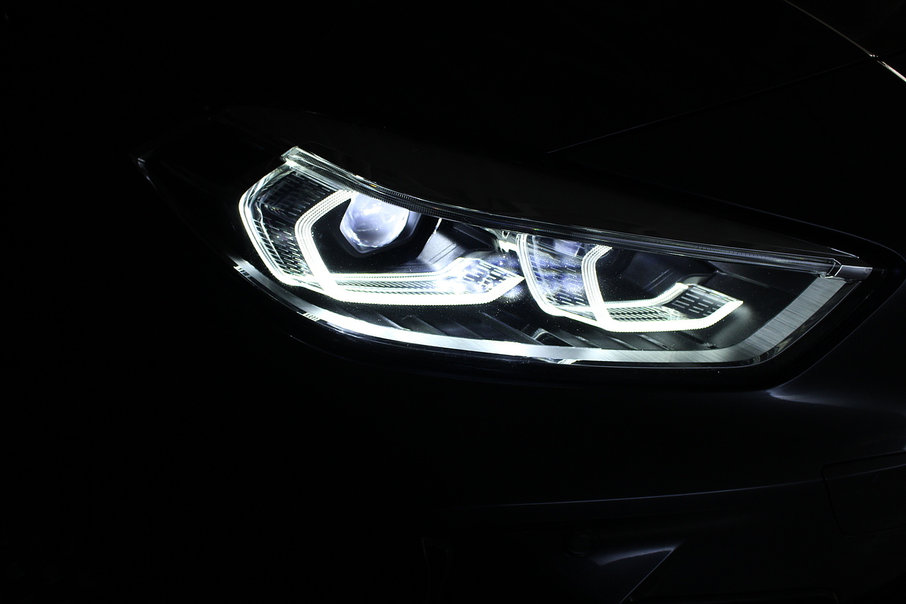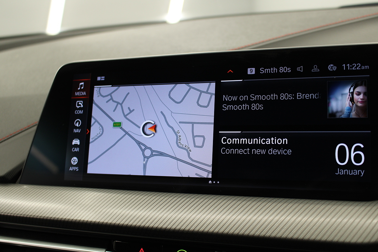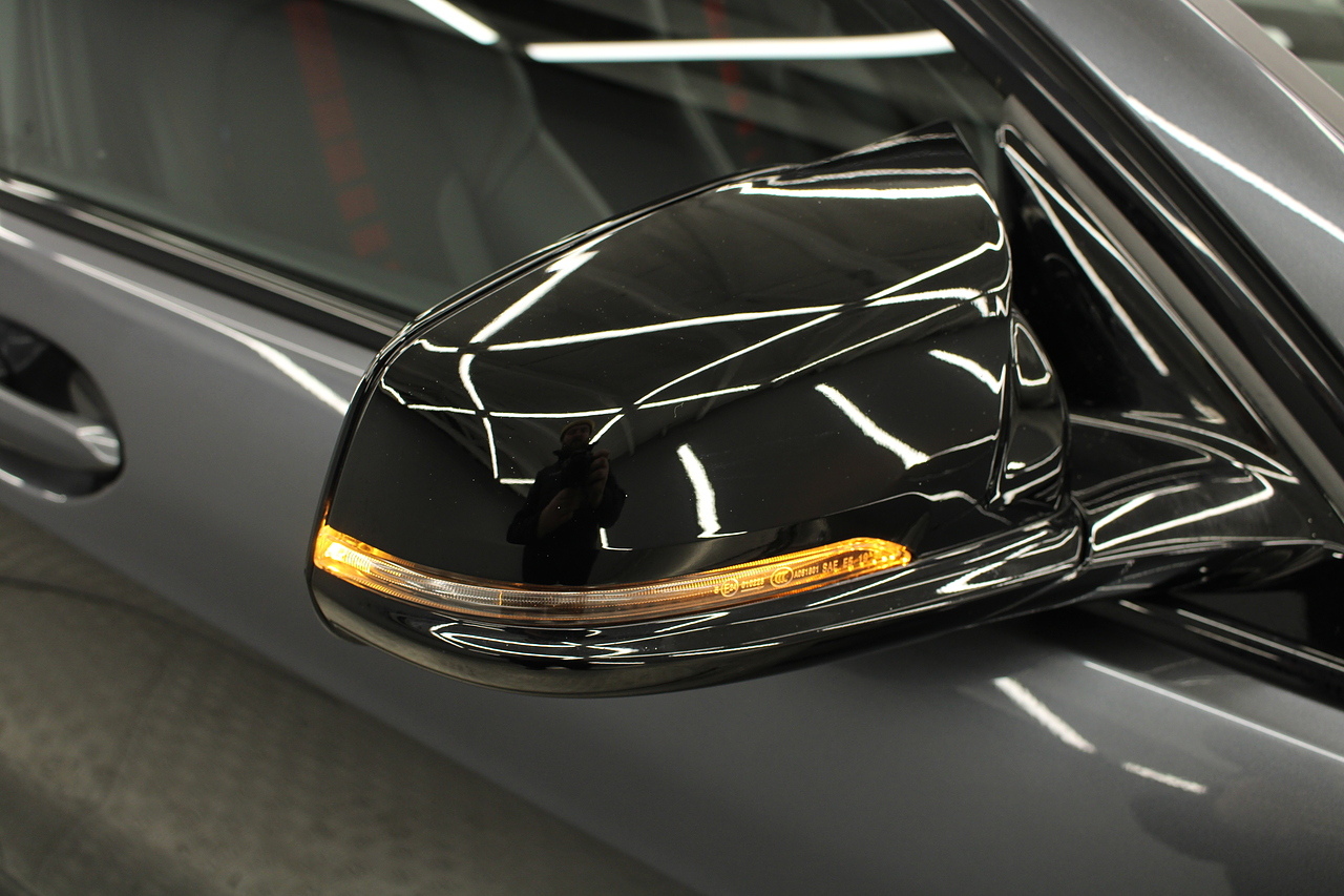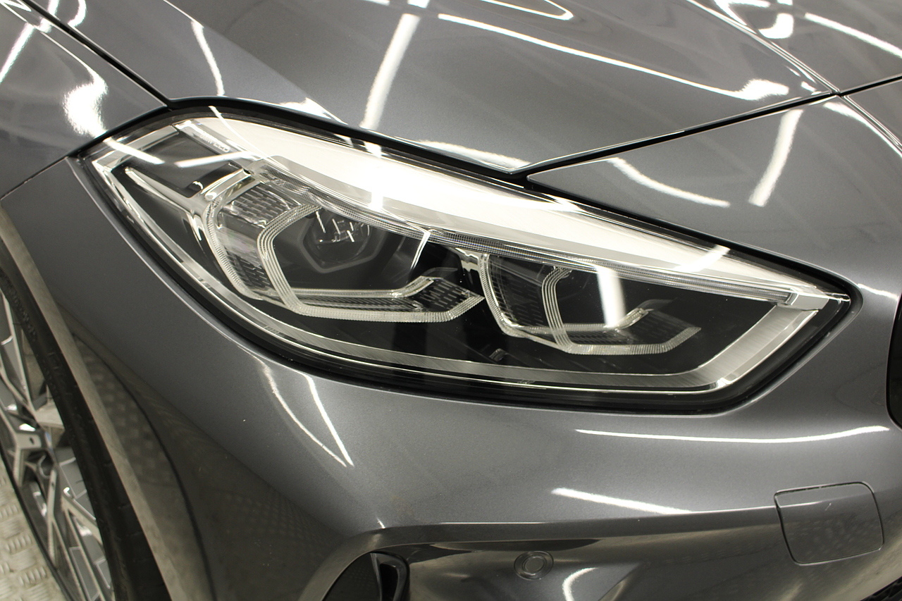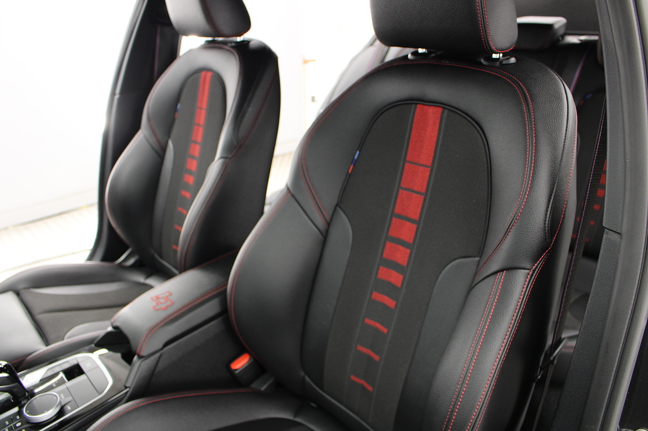 The exterior, finished in mineral grey with additional gloss black styling kit plus equipped with the M-Sport aerodynamic package, with diamond cut m-sport alloy wheels with the M-sport brake calipers behind which really set the car off.