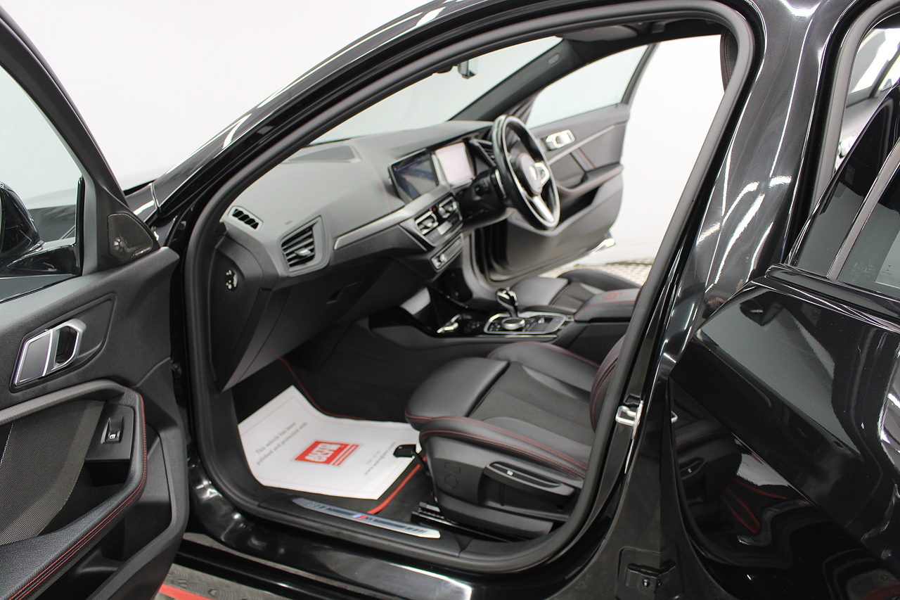 This is our fantastic 2022 BMW 128ti, BMW's first front wheel drive hot hatch. Equipped with the 2.0 litre 261 bhp engine. This hot hatch really ticks all the boxes. With awesome performance to match the stunning looks, Equipped with a limited slip differential, lower slightly stiffer suspension and lighter weight than the M135i makes this a rival for the Golf GTI. With 0-60 in 6.1 and top speed limited to 155 mph it certainly packs a punch.