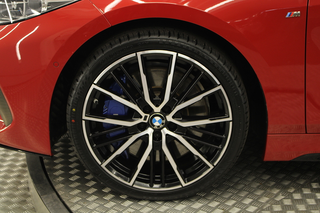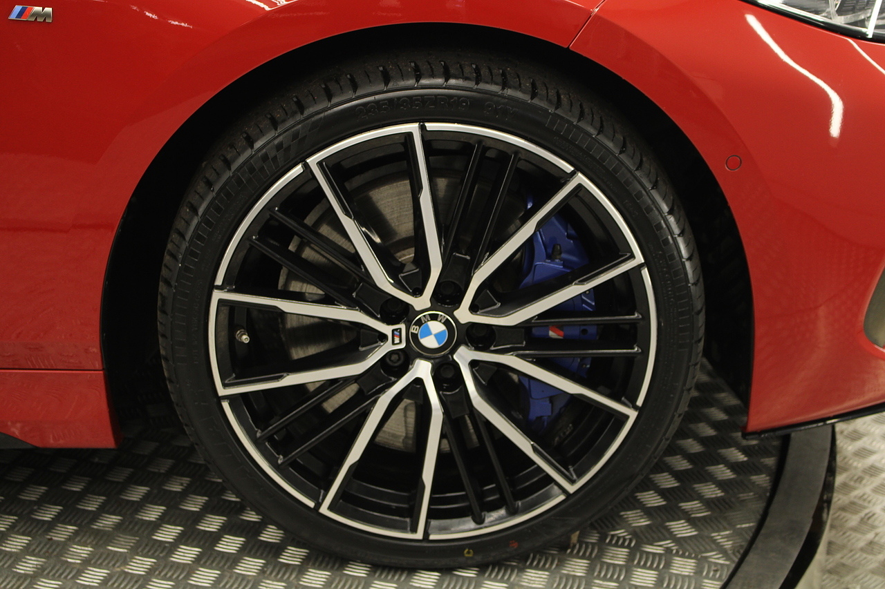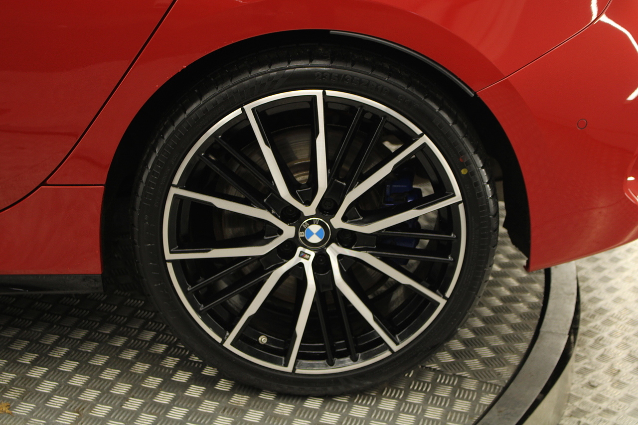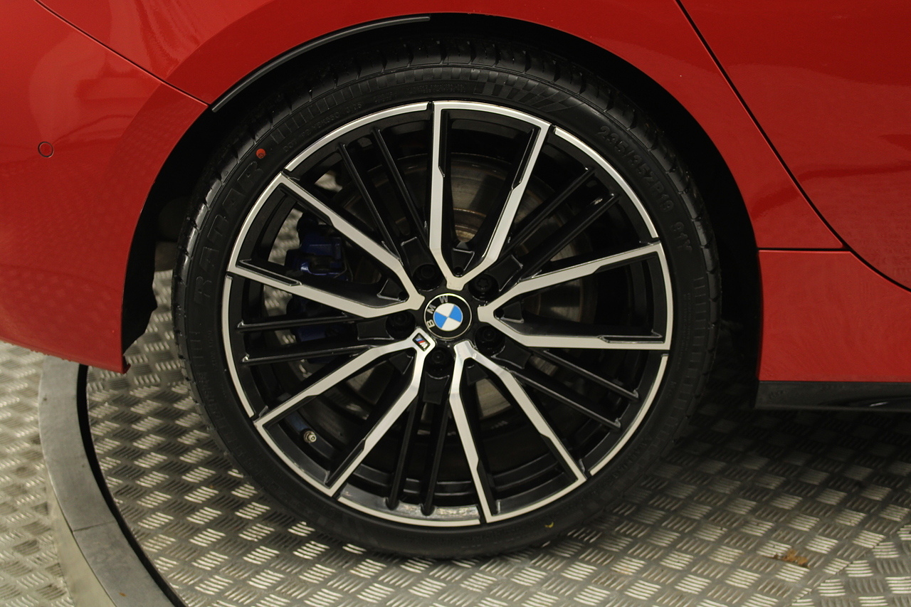Finished in melbourne red with the great looking 19'' diamond cut alloy wheels, gloss black styling kit and gloss grey accents around the car, to the rear, the eye catching twin exhausts which deliver a noticeable yet addictive burble at idle also deliver a fantastic sound as you accelerate in this iconic BMW!