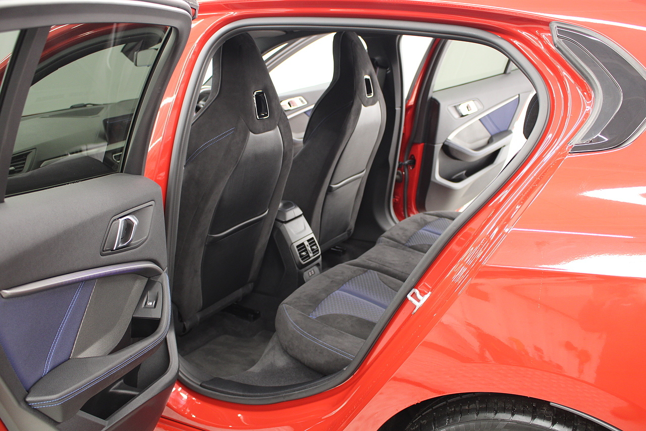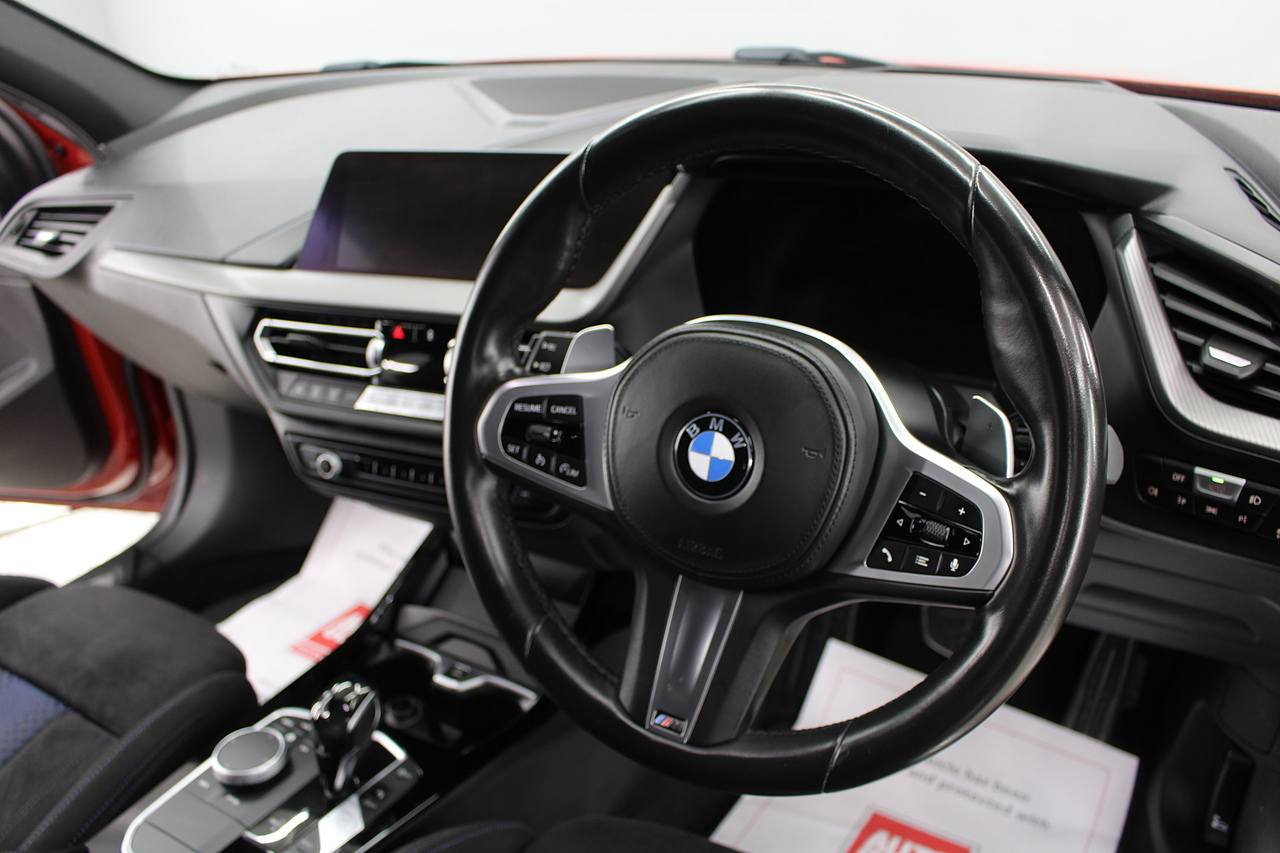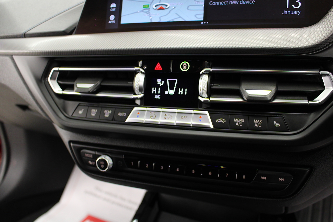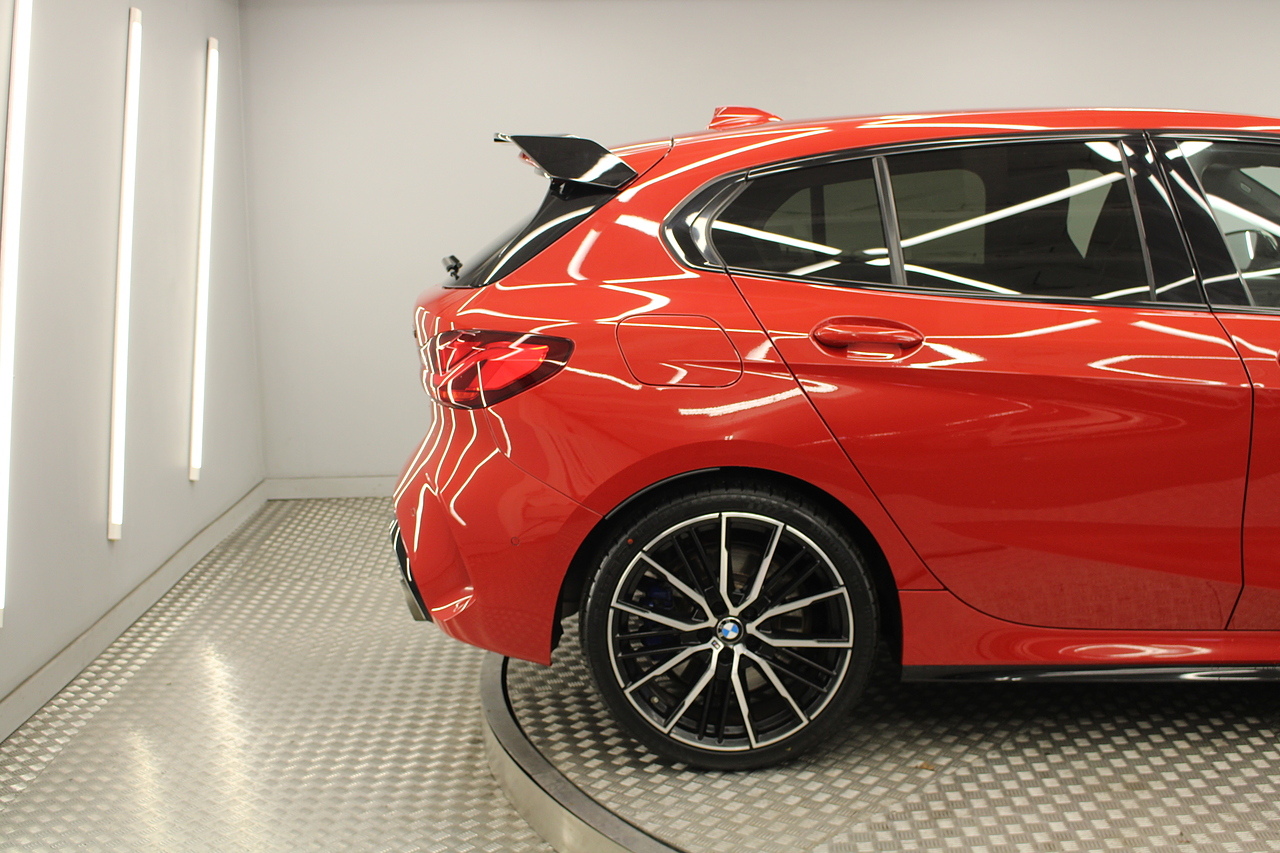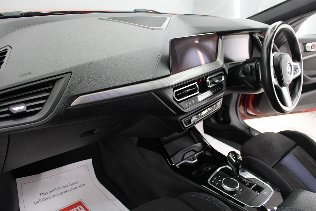 On to the interior, sports seats trimmed in the trigon alcantara with the front seats being heated. In addition, levels of spec aren't neglected here, head up display, rear parking camera, DAB radio with Bluetooth connectivity and professional satellite navigation system, automatic headlights and window wipers, electric powerfold door mirrors, professional multimedia, and driver performance control. The M135i is finished with the 8 speed automatic gearbox, which delivers outstanding performance, even in city driving too! Making the styling less divisive in 2015, the BMW 1 Series Sports Hatch received a mild mid-life facelift, with particularly emphasis on making the nose and tail look more like other models in the range the original triangular headlamps gave way to more horizontal units closer to the look of the 2 Series Coupe and Convertible, while the tail lights switched from being vertically orientated to being wider lenses bisected by the tailgate opening.