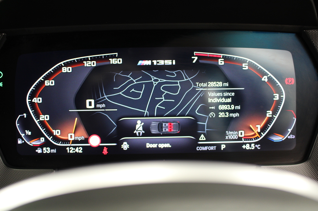 This particular example comes with brilliant specification with £6560 in factory options including the M135i plus pack, tech 1 pack, head up display, harman kardon sound system, enhanced bluetooth, park assistant, adaptive LED headlights, 19'' bi-colour wheels and sun protection glass.