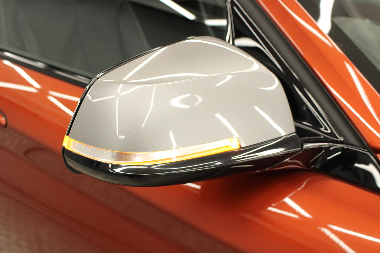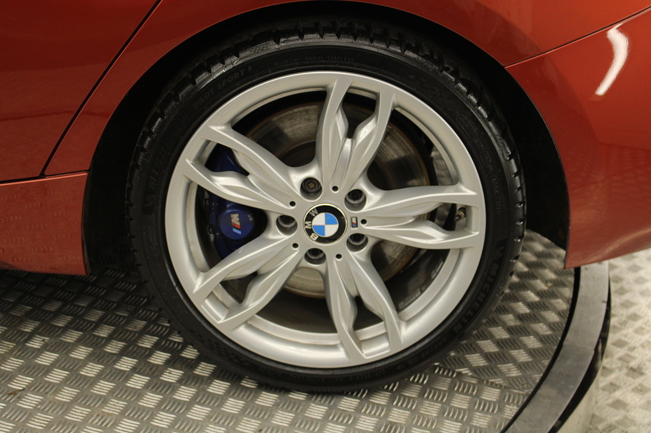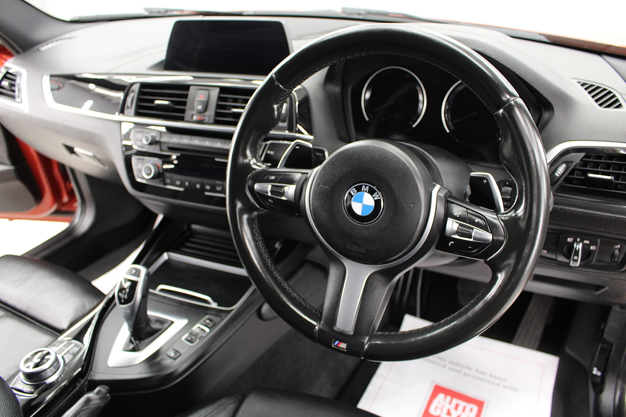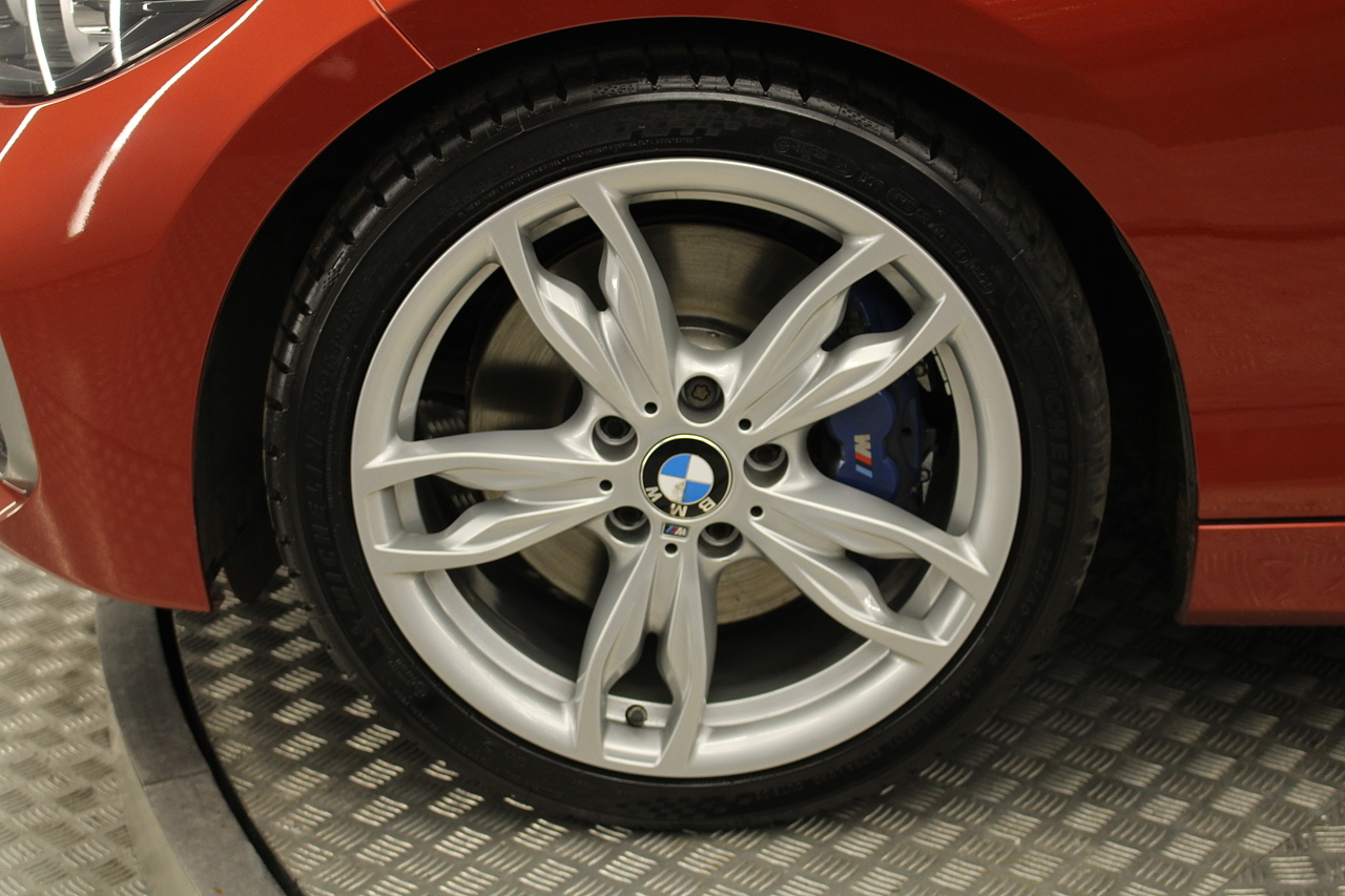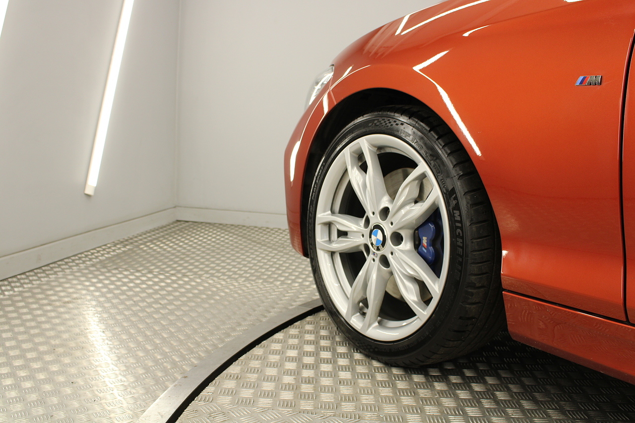Finished in the stunning sunset orange with the 18'' double M spoke alloy wheels which really set the car off. To the rear, the eye catching twin M Performance exhausts which deliver a noticeable yet addictive burble at idle also deliver a fantastic sound as you accelerate in this iconic BMW!