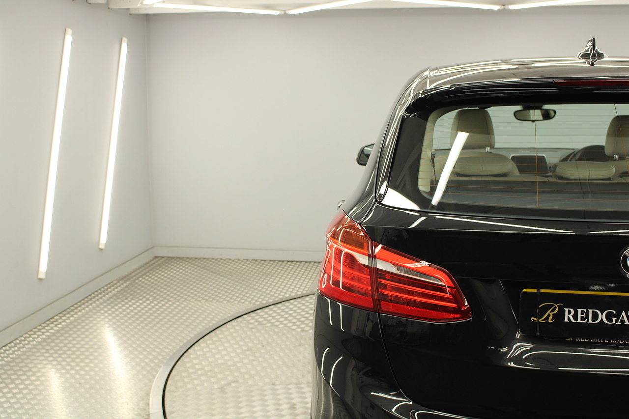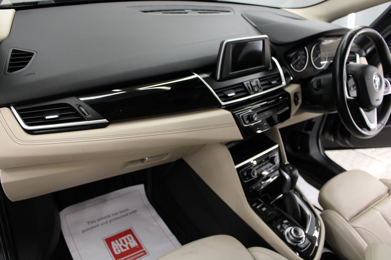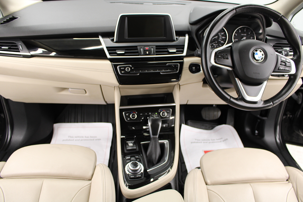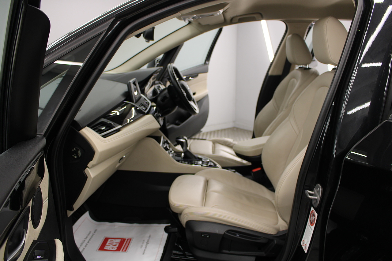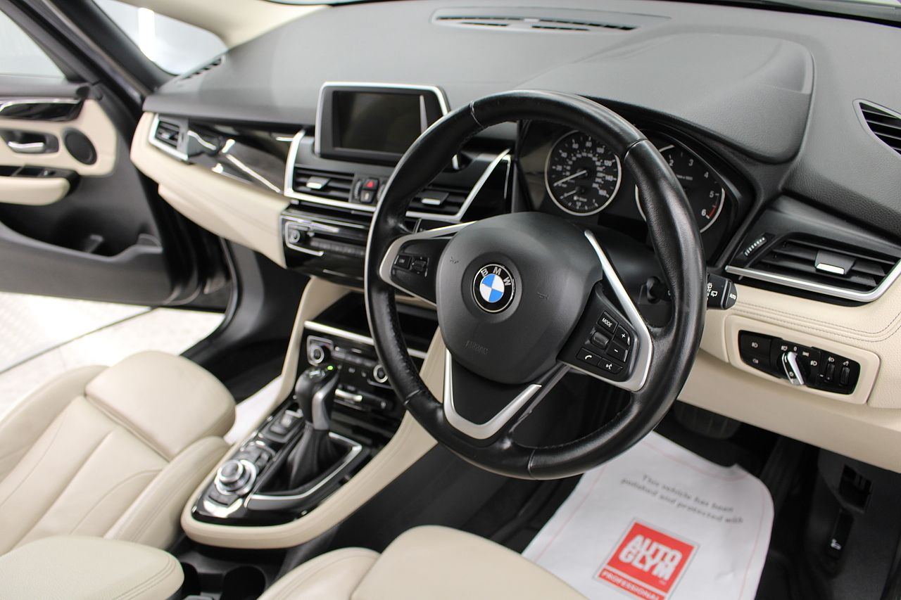 The interior of this 2 Series Active Tourer comes trimmed in oyster leather with dual zone climate control with air conditioning, daytime running lights, headlight and rain sensors, satellite navigation, DAB radio, steering wheel mounted controls, Bluetooth, parking sensors, and ISOFIX anchorage points. The original model suffered from dull handling and awkward looks that tainted its appeal. Now, featuring sharper styling and a massively updated interior, the 2 Series Active Tourer might appeal to those looking for a classier hatchback.