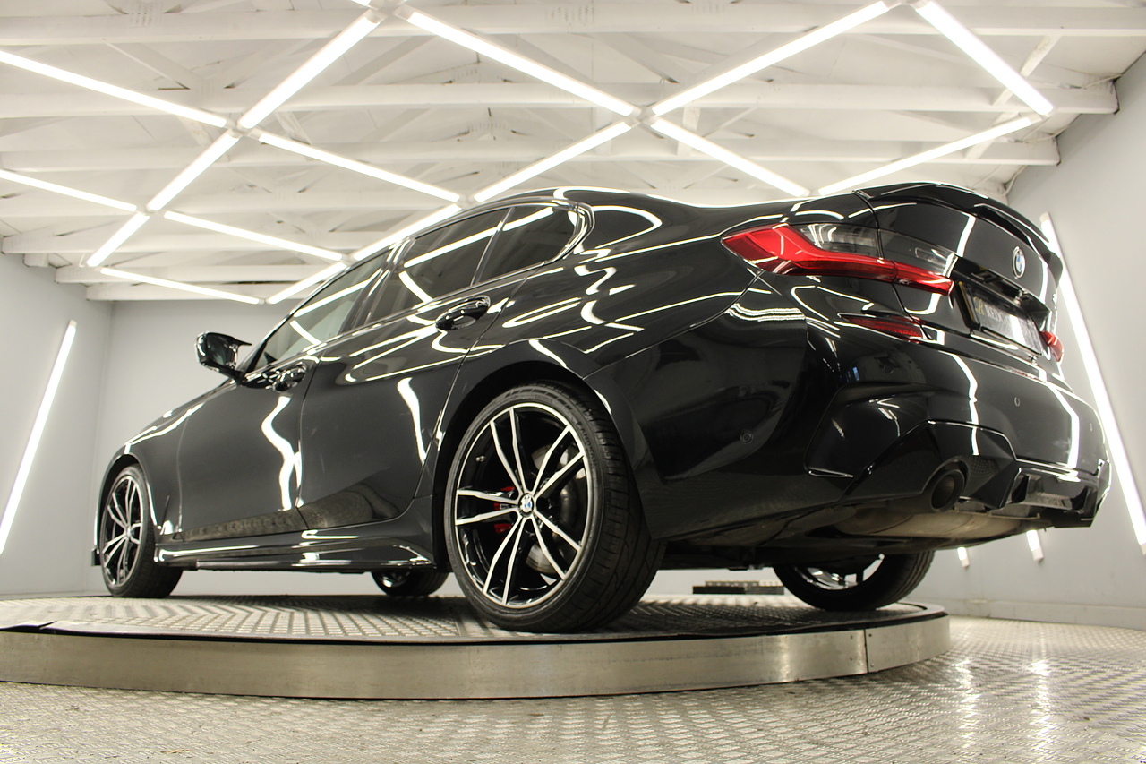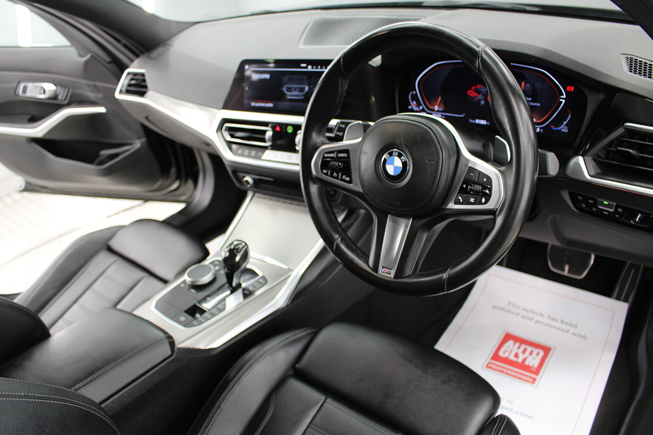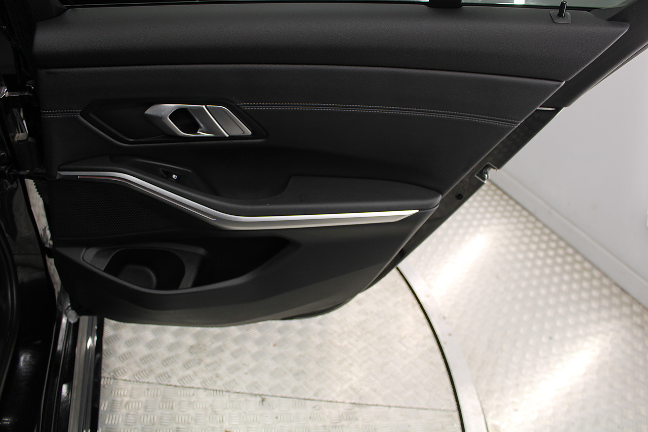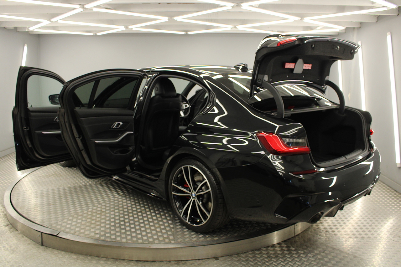 The interior comes trimmed in black vernasca leather, virtual cockpit display, dual zone climate control, cruise control, parking sensors front and rear with rear facing camera, DAB radio with professional satellite navigation, MP3 functionality, heated and electric door mirrors, steering wheel mounted controls, Bluetooth connectivity, tinted windows and ISOFIX anchorage points. This is the seventh generation of the BMW 3 Series. The German four-door has been dominating the premium saloon and estate market for some time now and this latest version, has all the ingredients to do the same. This car has far more to boast about than ever before. It is more spacious than its predecessor with a bigger boot and load space, the interior feel classier than ever with a driver-focused cabin and high-end materials, while the handling is better too which is no mean feat.