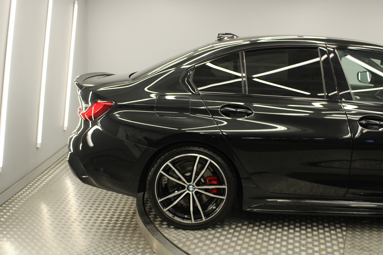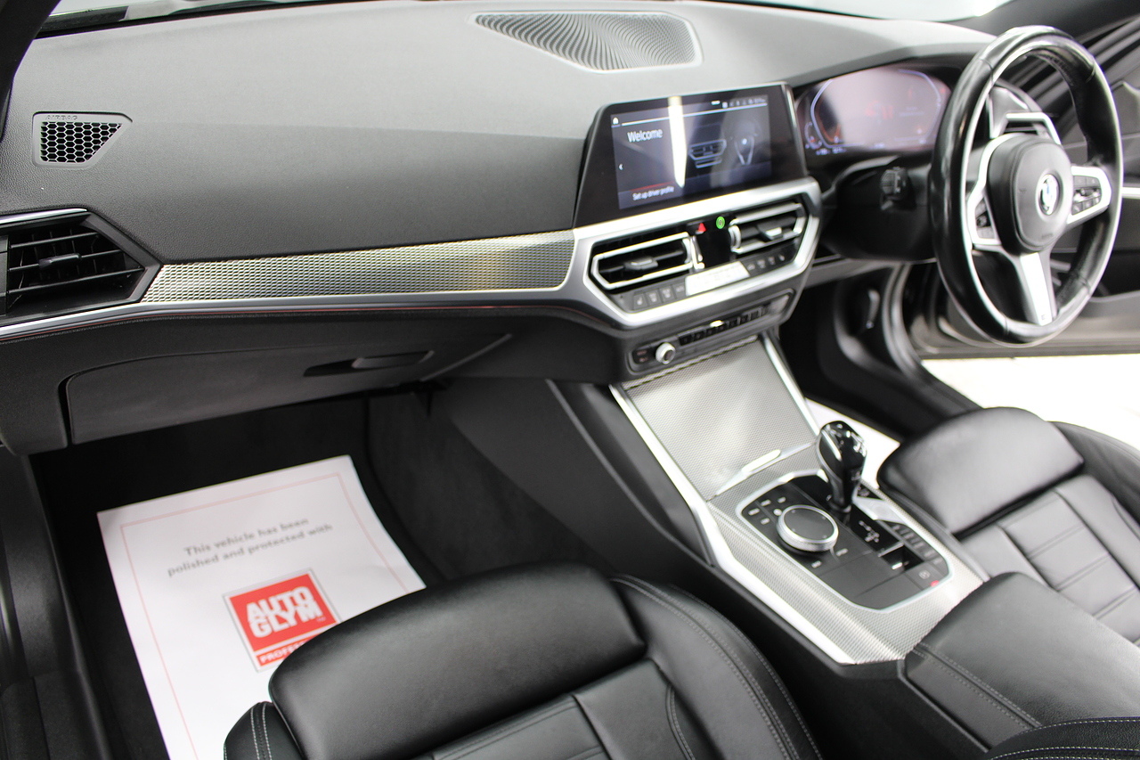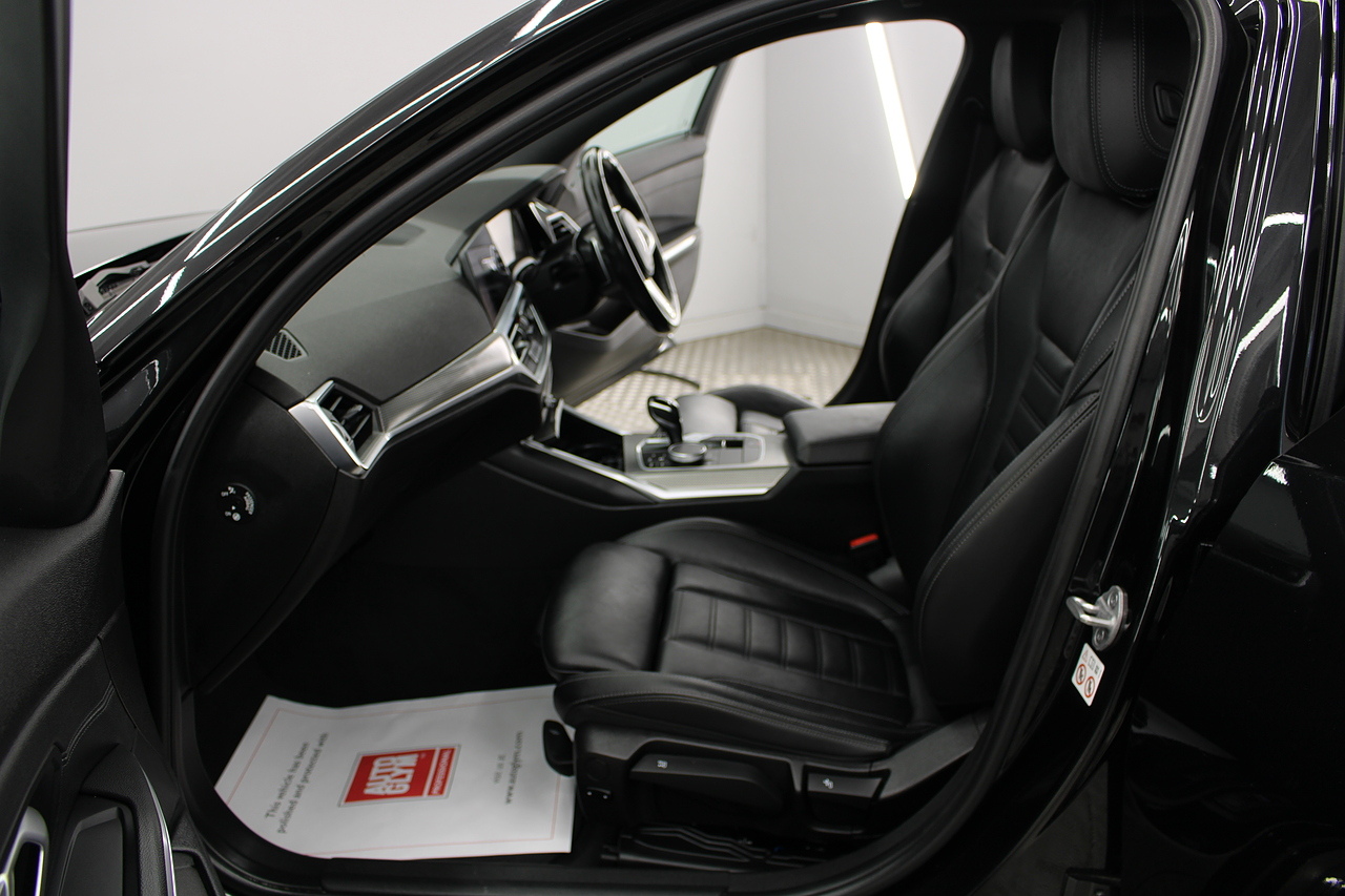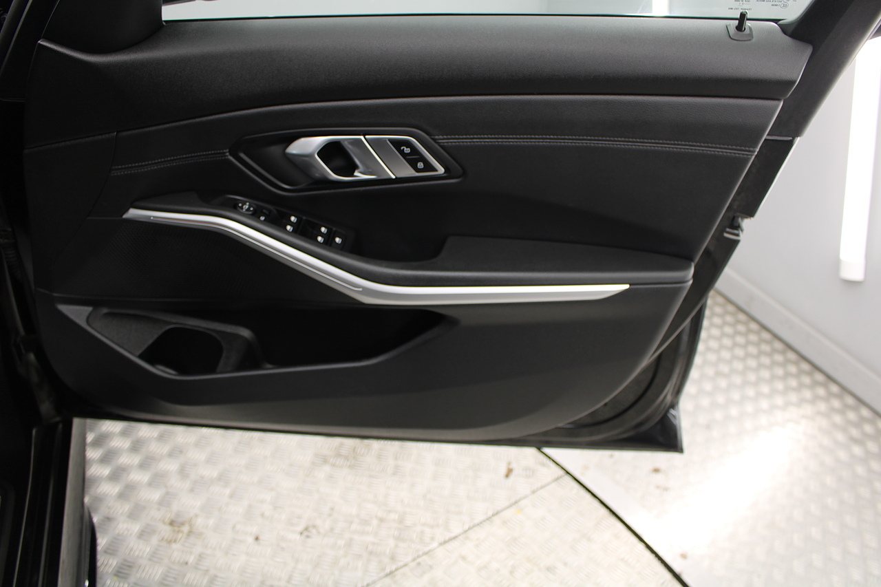 The interior comes trimmed in black vernasca leather, virtual cockpit display, dual zone climate control, cruise control, parking sensors front and rear with rear facing camera, DAB radio with professional satellite navigation, MP3 functionality, heated and electric door mirrors, steering wheel mounted controls, Bluetooth connectivity, tinted windows and ISOFIX anchorage points. This is the seventh generation of the BMW 3 Series. The German four-door has been dominating the premium saloon and estate market for some time now and this latest version, has all the ingredients to do the same. This car has far more to boast about than ever before. It is more spacious than its predecessor with a bigger boot and load space, the interior feel classier than ever with a driver-focused cabin and high-end materials, while the handling is better too which is no mean feat.