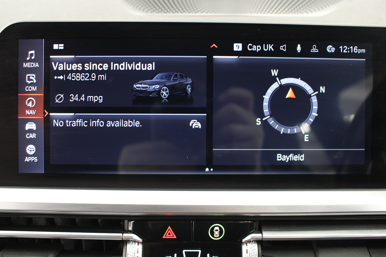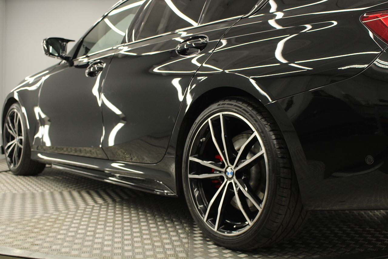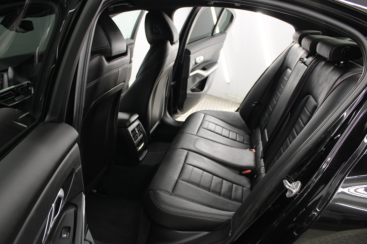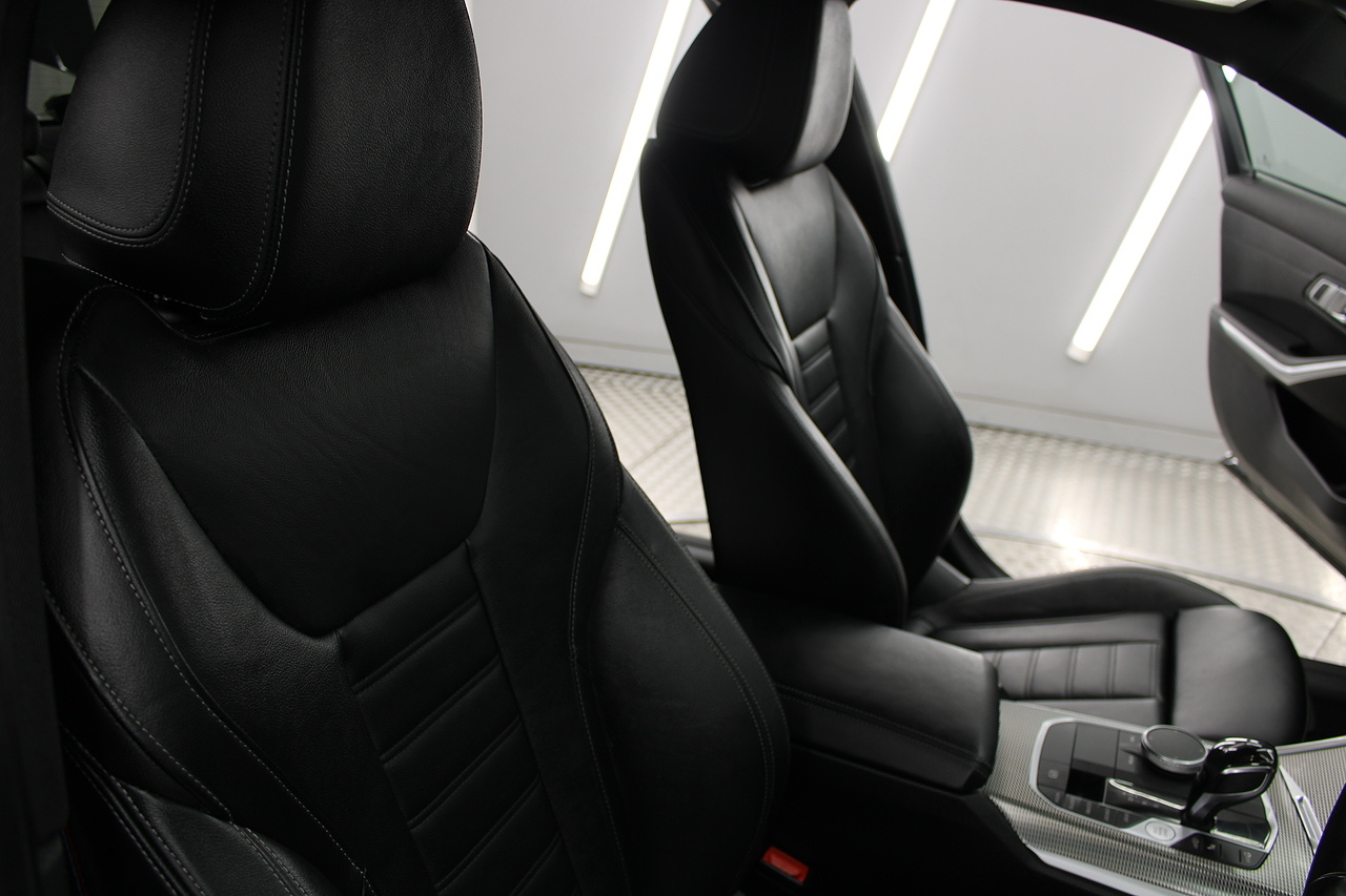 The interior comes trimmed in black vernasca leather, virtual cockpit display, dual zone climate control, cruise control, parking sensors front and rear with rear facing camera, DAB radio with professional satellite navigation, MP3 functionality, heated and electric door mirrors, steering wheel mounted controls, Bluetooth connectivity, tinted windows and ISOFIX anchorage points. This is the seventh generation of the BMW 3 Series. The German four-door has been dominating the premium saloon and estate market for some time now and this latest version, has all the ingredients to do the same. This car has far more to boast about than ever before. It is more spacious than its predecessor with a bigger boot and load space, the interior feel classier than ever with a driver-focused cabin and high-end materials, while the handling is better too which is no mean feat.