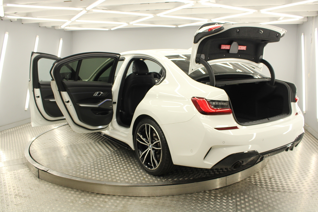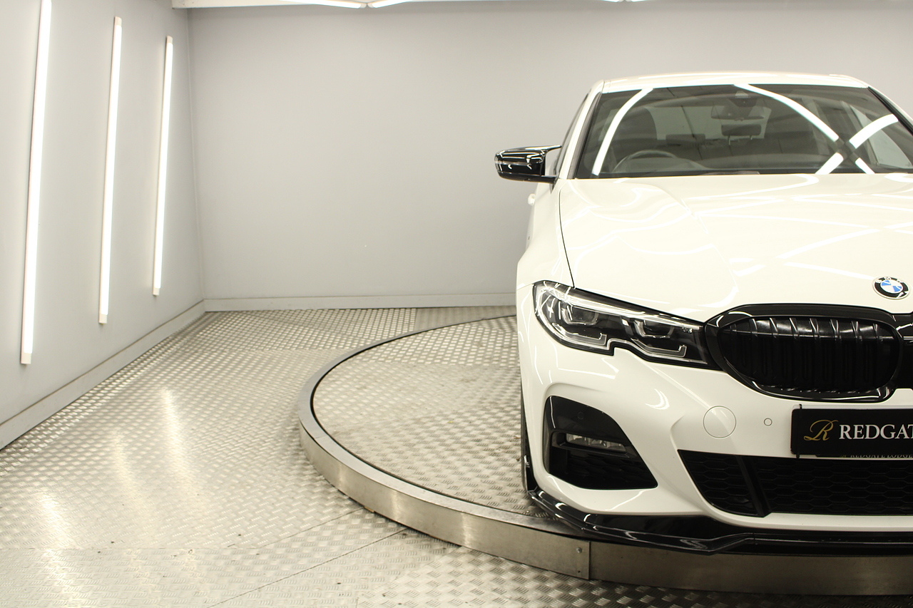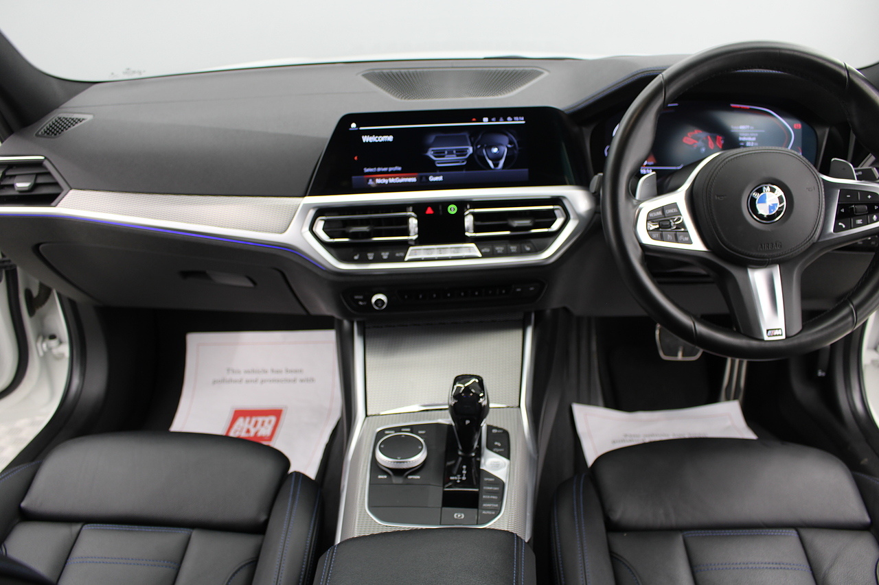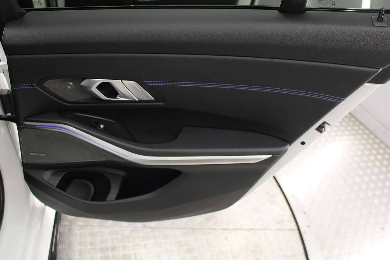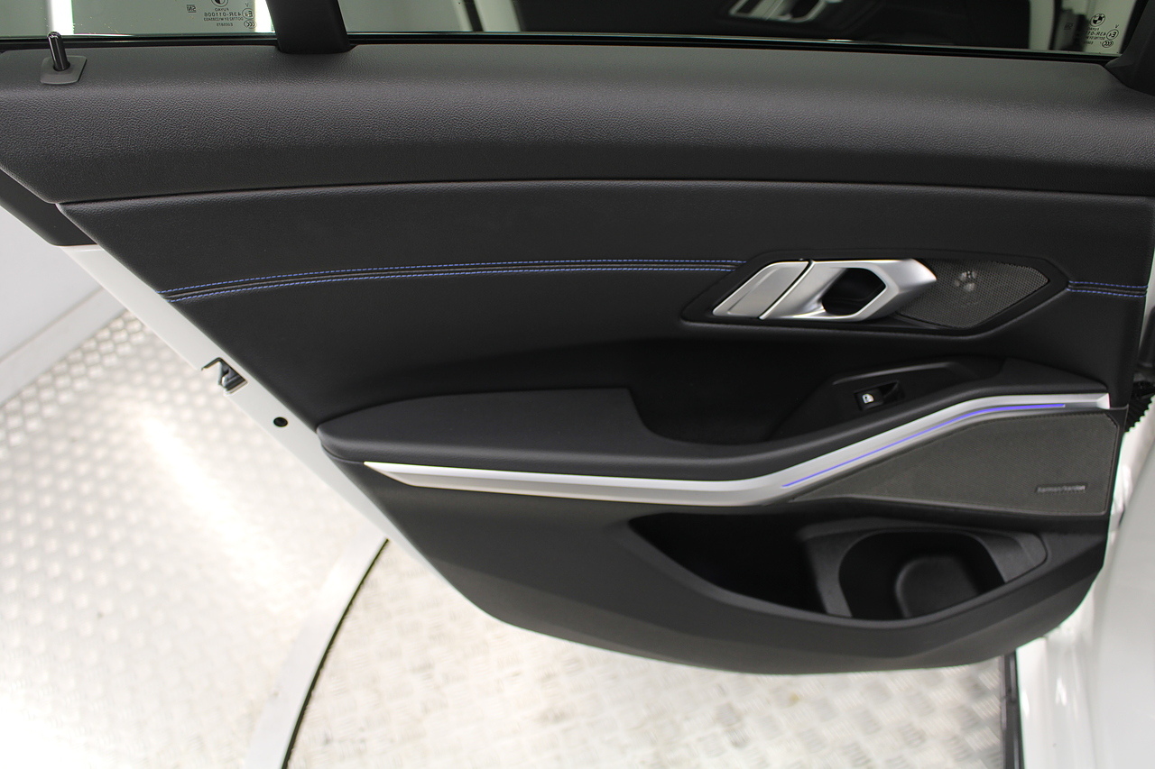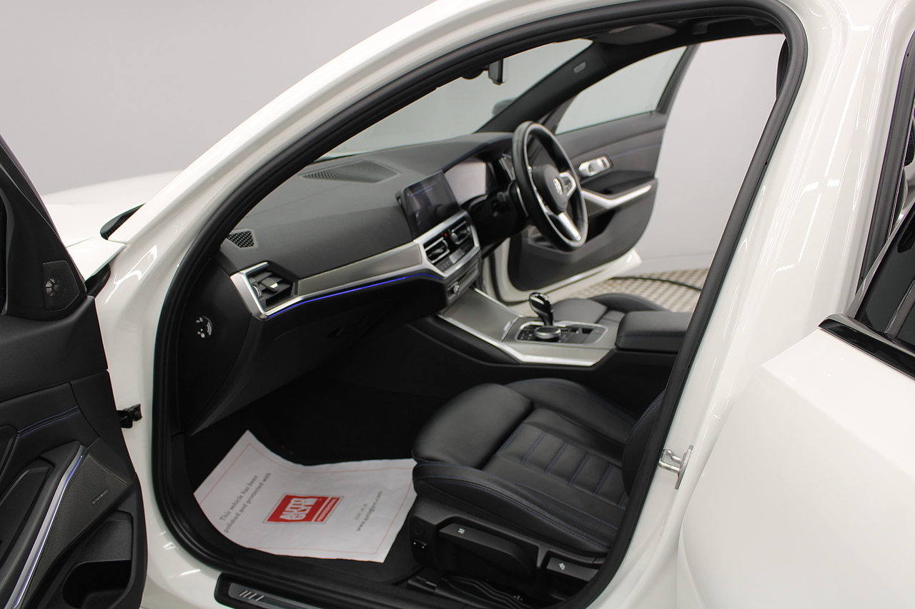 The interior comes trimmed in black vernasca leather, virtual cockpit display, head up display, dual zone climate control, cruise control, parking sensors front and rear with rear facing camera, DAB radio with professional satellite navigation, MP3 functionality, heated and electric door mirrors, steering wheel mounted controls, Bluetooth connectivity, tinted windows and ISOFIX anchorage points. This is the seventh generation of the BMW 3 Series. The German four-door has been dominating the premium saloon and estate market for some time now and this latest version, has all the ingredients to do the same. This car has far more to boast about than ever before. It is more spacious than its predecessor with a bigger boot and load space, the interior feel classier than ever with a driver-focused cabin and high-end materials, while the handling is better too which is no mean feat.