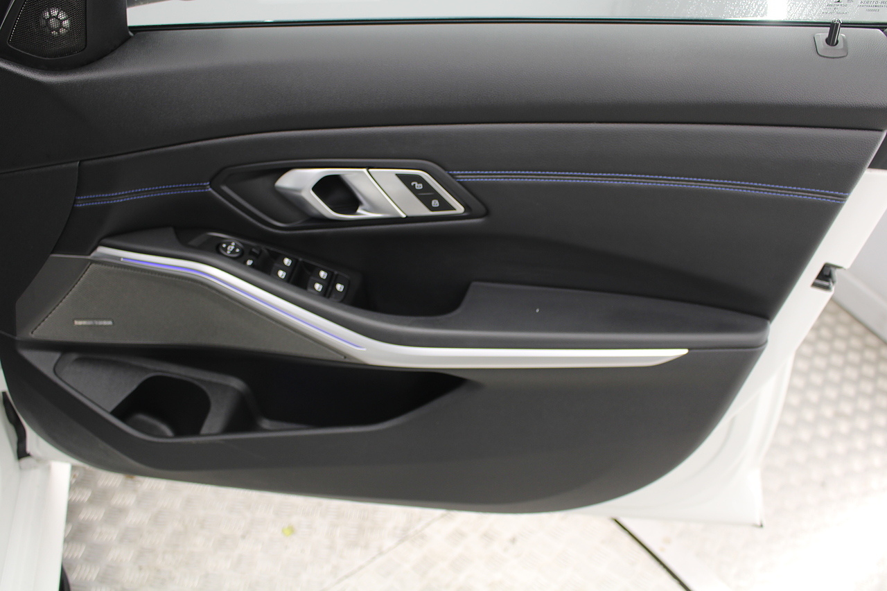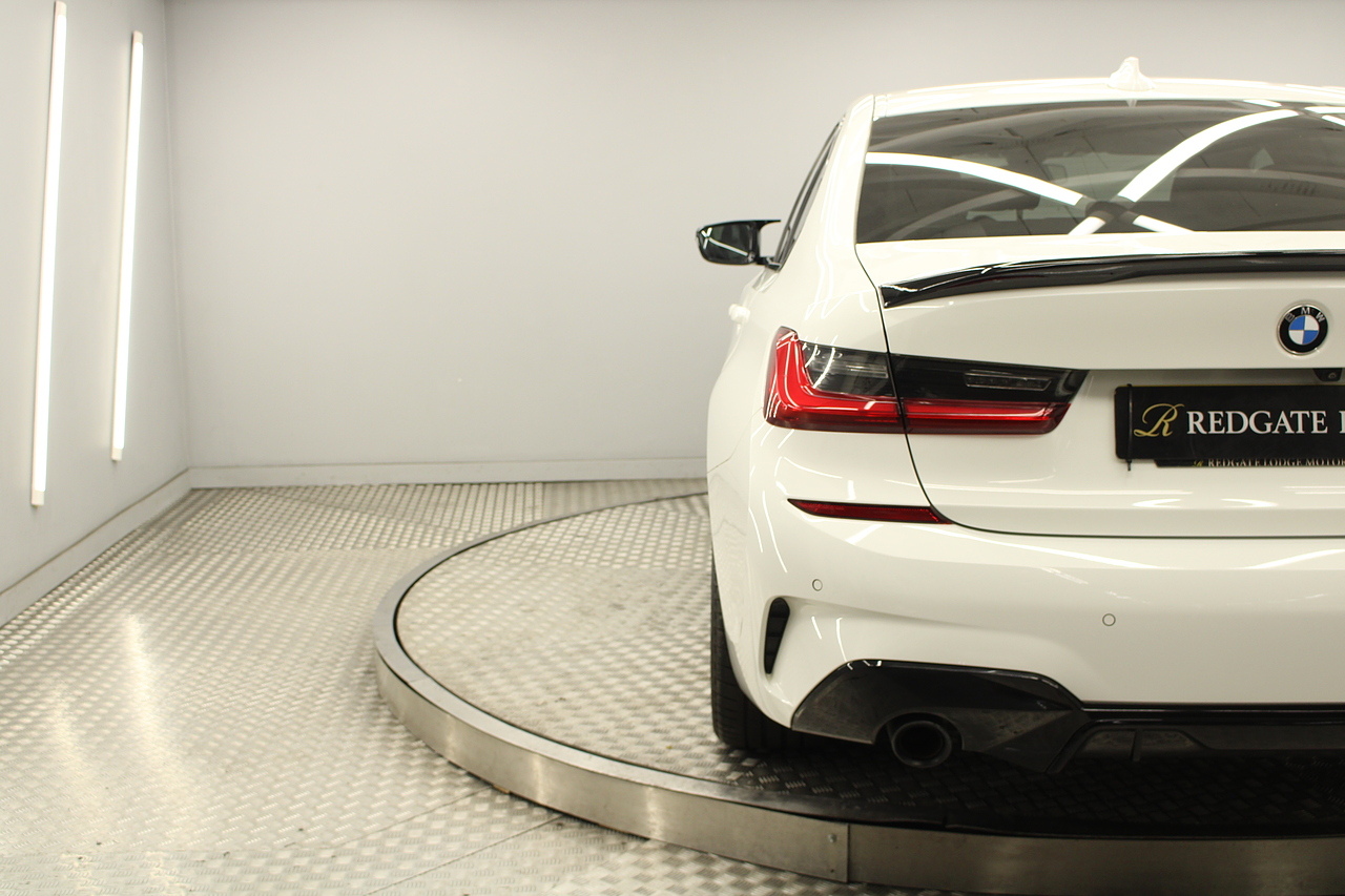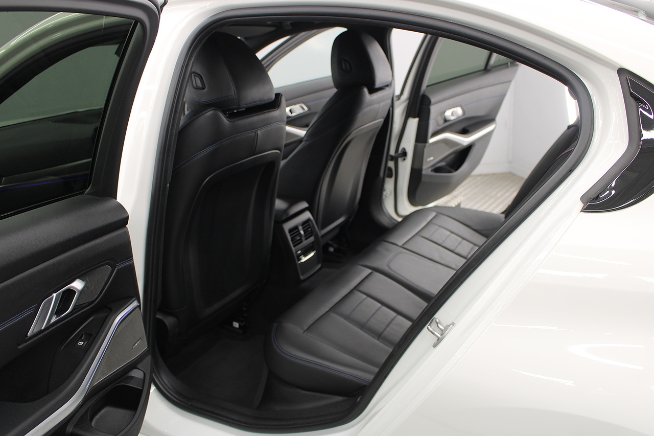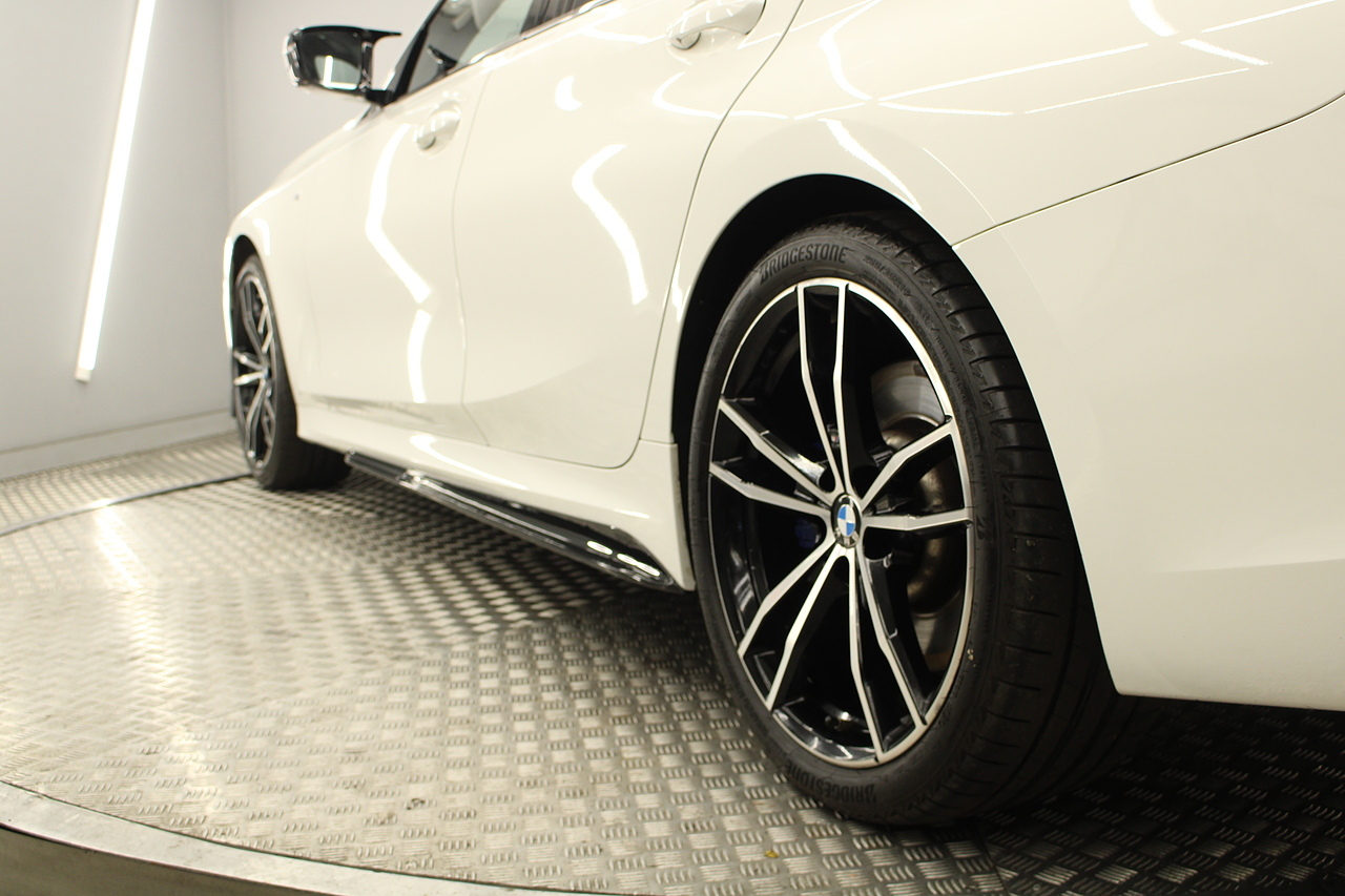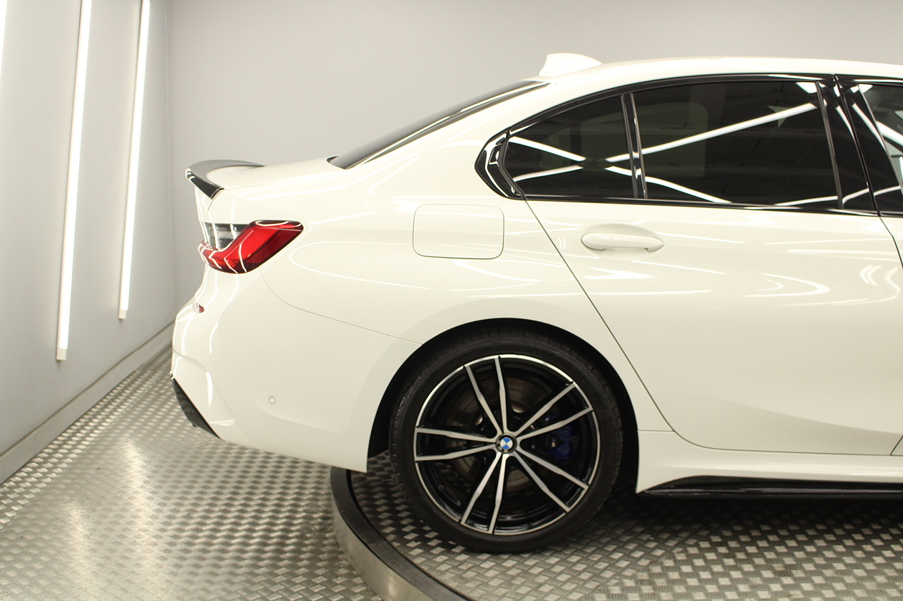 The interior comes trimmed in black vernasca leather, virtual cockpit display, head up display, dual zone climate control, cruise control, parking sensors front and rear with rear facing camera, DAB radio with professional satellite navigation, MP3 functionality, heated and electric door mirrors, steering wheel mounted controls, Bluetooth connectivity, tinted windows and ISOFIX anchorage points. This is the seventh generation of the BMW 3 Series. The German four-door has been dominating the premium saloon and estate market for some time now and this latest version, has all the ingredients to do the same. This car has far more to boast about than ever before. It is more spacious than its predecessor with a bigger boot and load space, the interior feel classier than ever with a driver-focused cabin and high-end materials, while the handling is better too which is no mean feat.