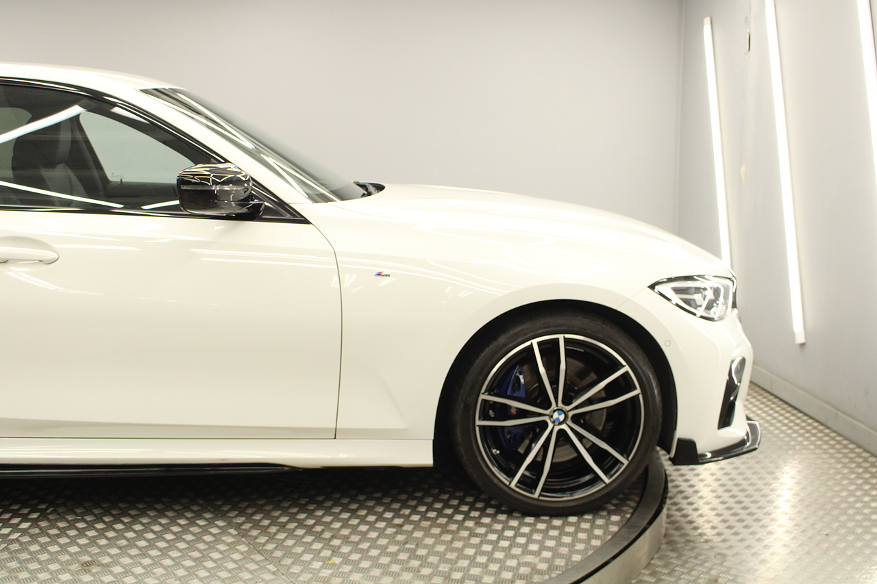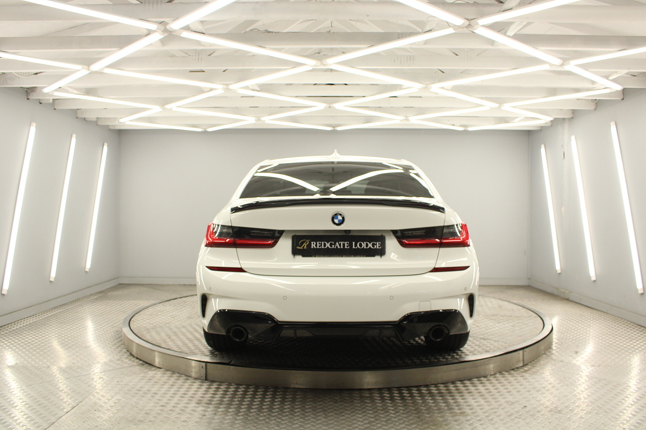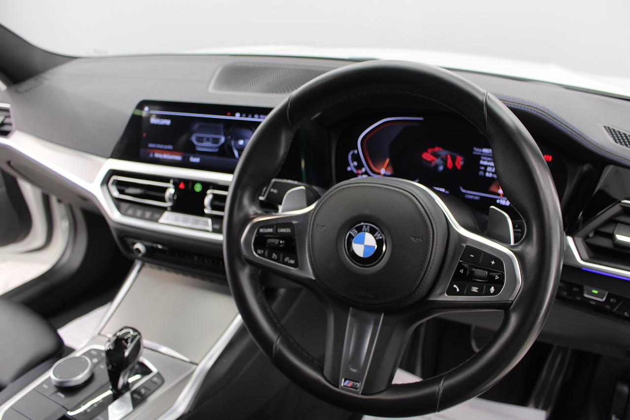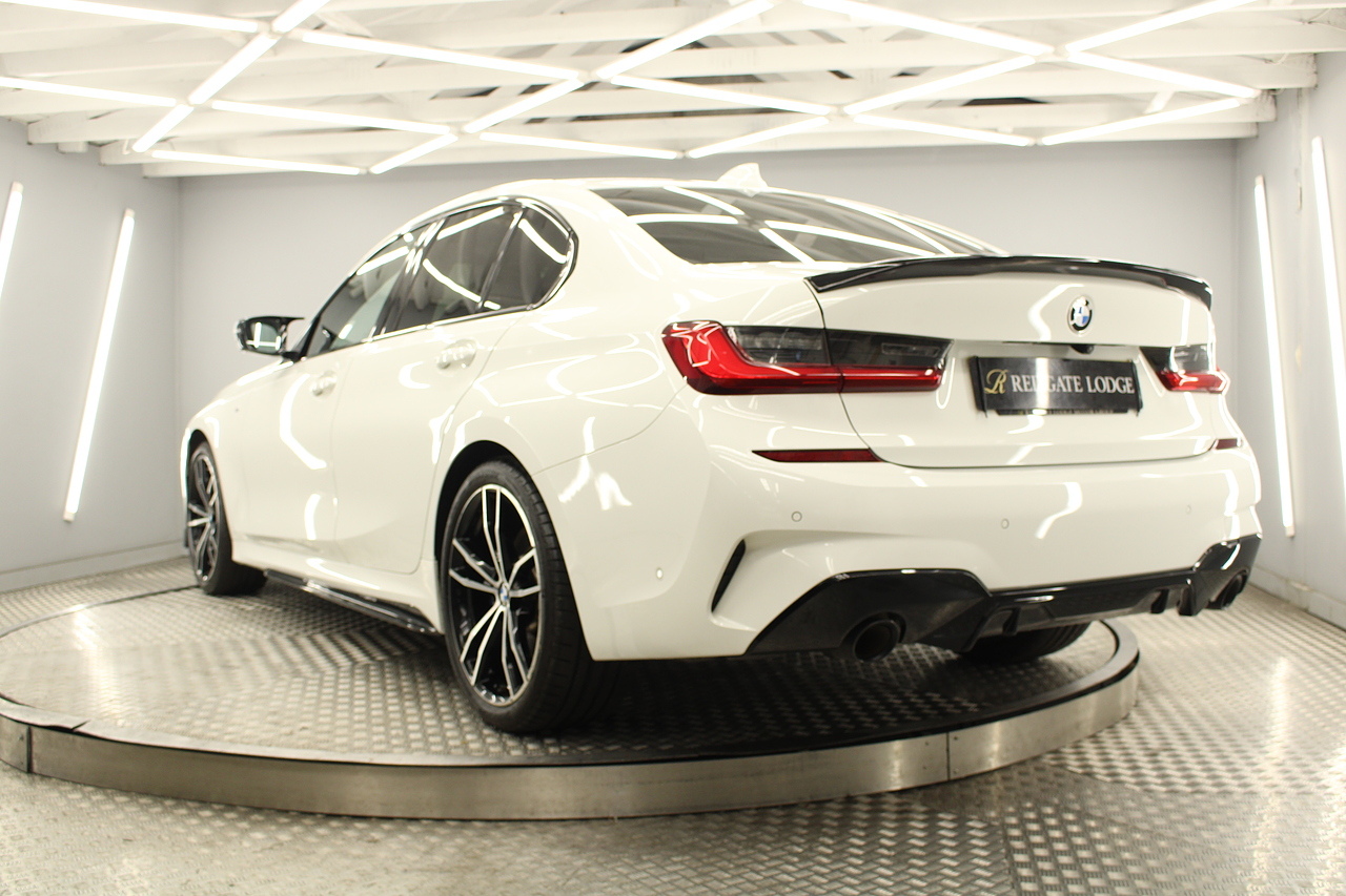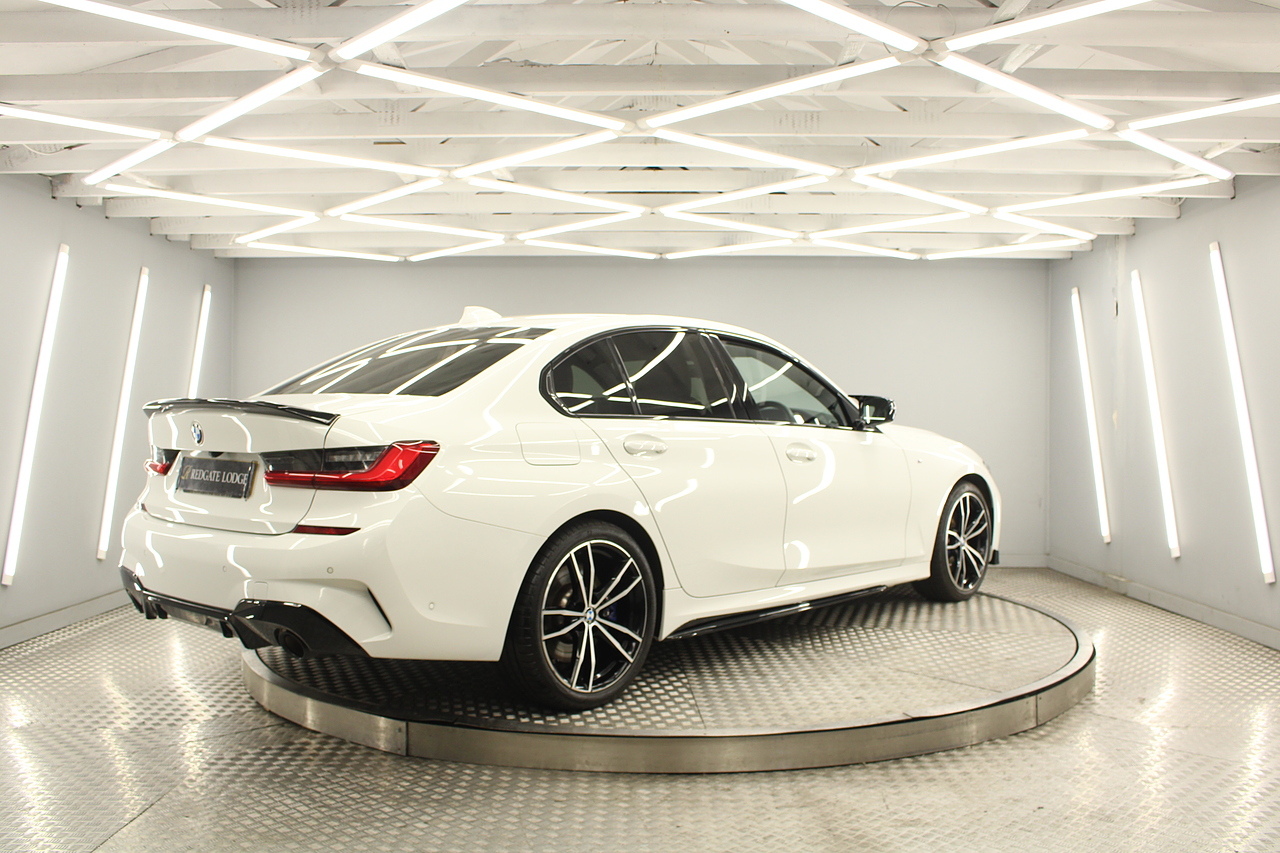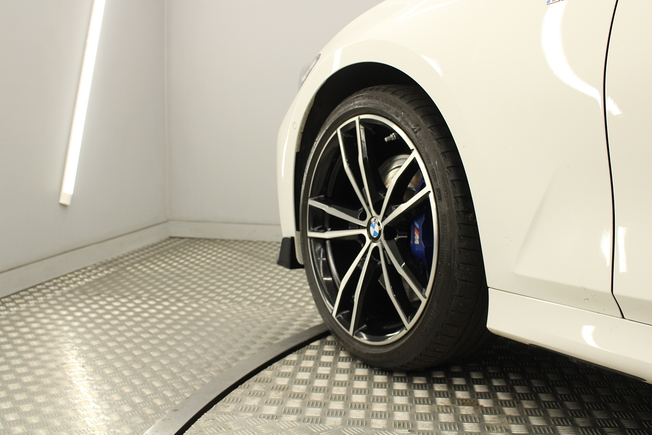 The interior comes trimmed in black vernasca leather, virtual cockpit display, head up display, dual zone climate control, cruise control, parking sensors front and rear with rear facing camera, DAB radio with professional satellite navigation, MP3 functionality, heated and electric door mirrors, steering wheel mounted controls, Bluetooth connectivity, tinted windows and ISOFIX anchorage points. This is the seventh generation of the BMW 3 Series. The German four-door has been dominating the premium saloon and estate market for some time now and this latest version, has all the ingredients to do the same. This car has far more to boast about than ever before. It is more spacious than its predecessor with a bigger boot and load space, the interior feel classier than ever with a driver-focused cabin and high-end materials, while the handling is better too which is no mean feat.
