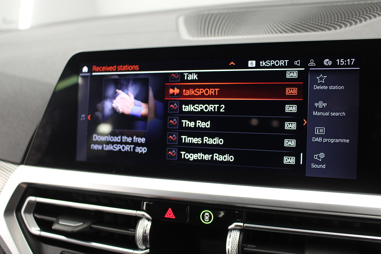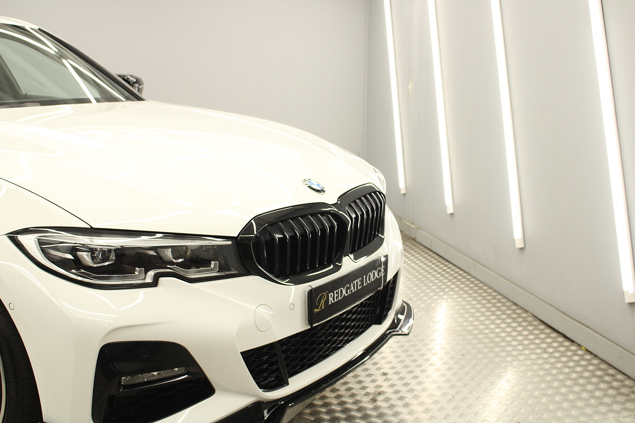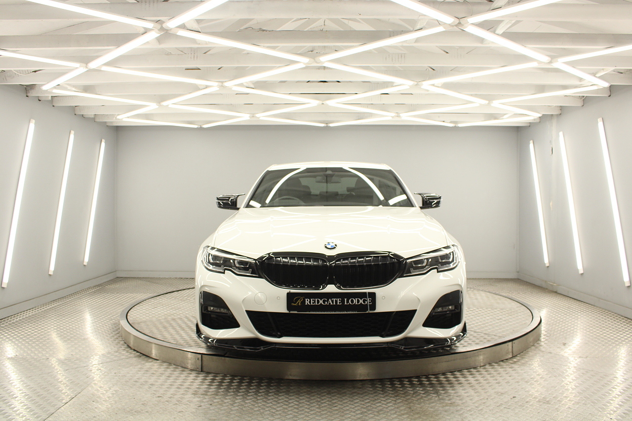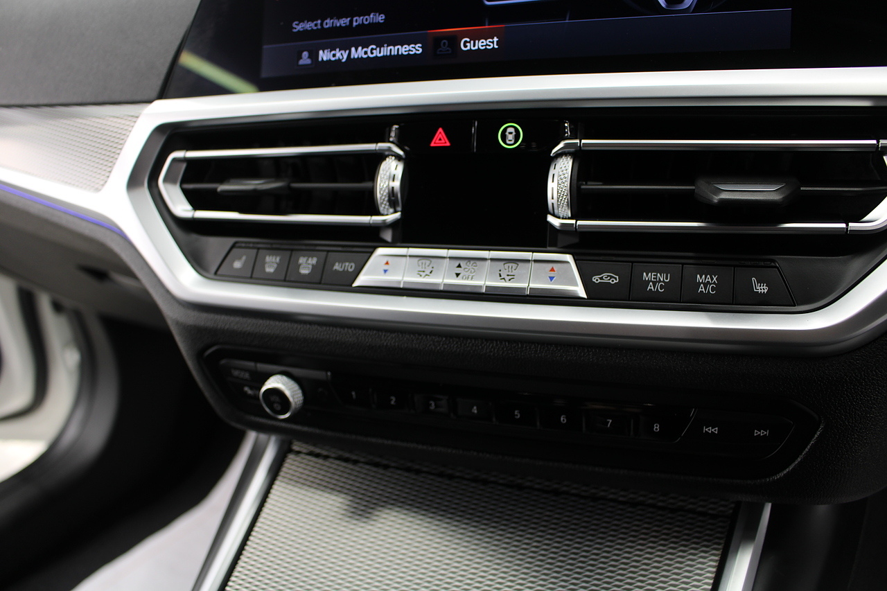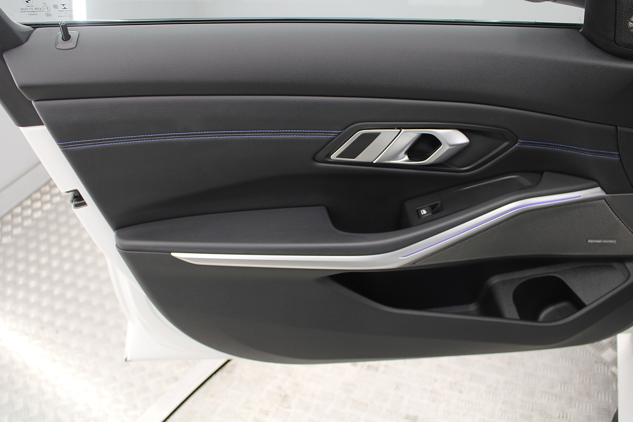 The interior comes trimmed in black vernasca leather, virtual cockpit display, head up display, dual zone climate control, cruise control, parking sensors front and rear with rear facing camera, DAB radio with professional satellite navigation, MP3 functionality, heated and electric door mirrors, steering wheel mounted controls, Bluetooth connectivity, tinted windows and ISOFIX anchorage points. This is the seventh generation of the BMW 3 Series. The German four-door has been dominating the premium saloon and estate market for some time now and this latest version, has all the ingredients to do the same. This car has far more to boast about than ever before. It is more spacious than its predecessor with a bigger boot and load space, the interior feel classier than ever with a driver-focused cabin and high-end materials, while the handling is better too which is no mean feat.